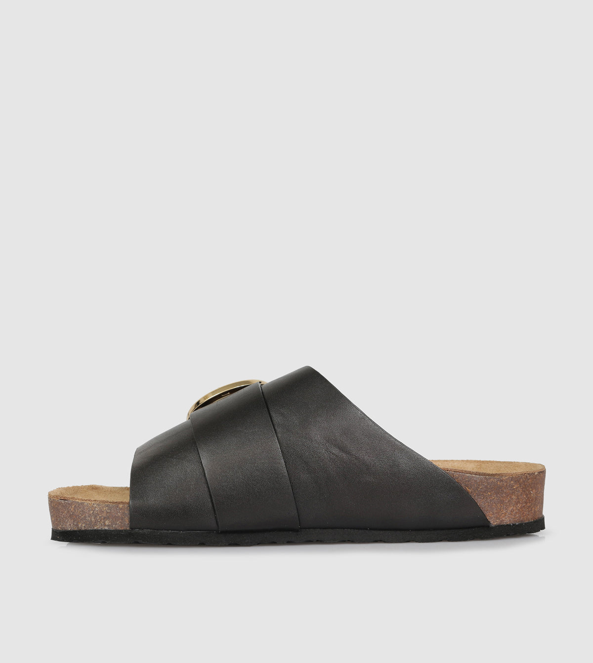 Jolana Slides by Sempre Di, offer perfect summertime style and comfort. Its foot bedded design and molded sole provide superior cushioning, while its Vegan leather upper and oversized gold buckle give a luxurious touch. Enjoy all-day wear in the Jolana Slides.