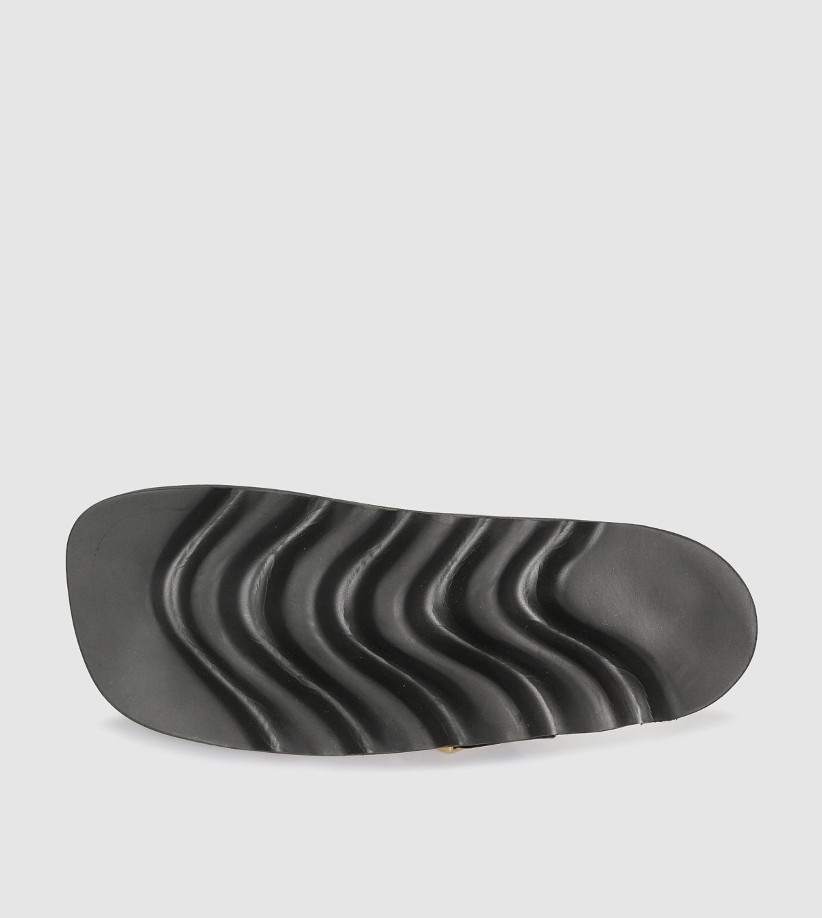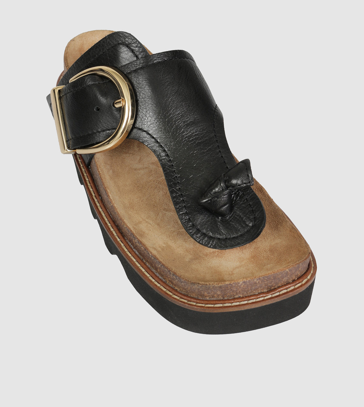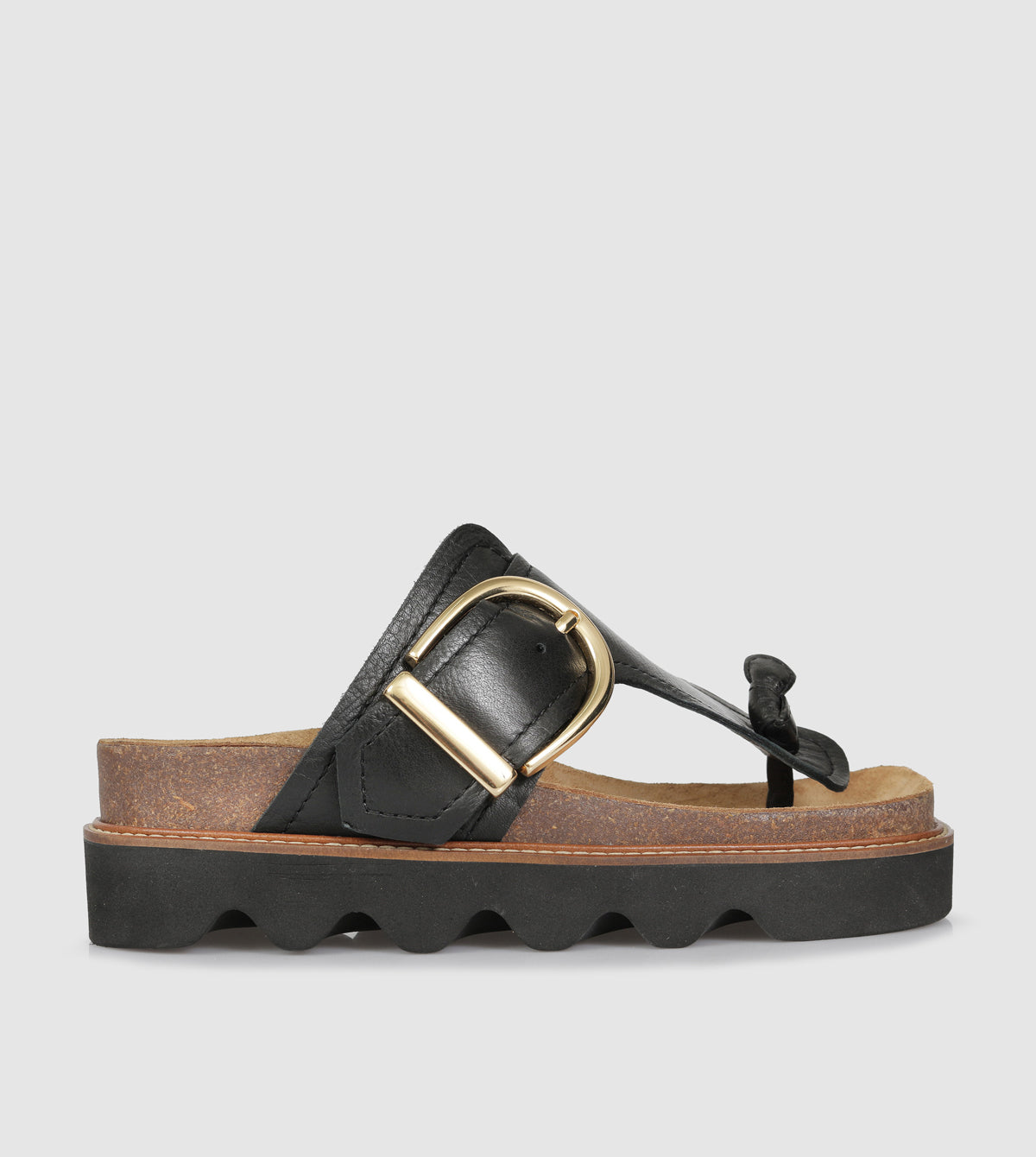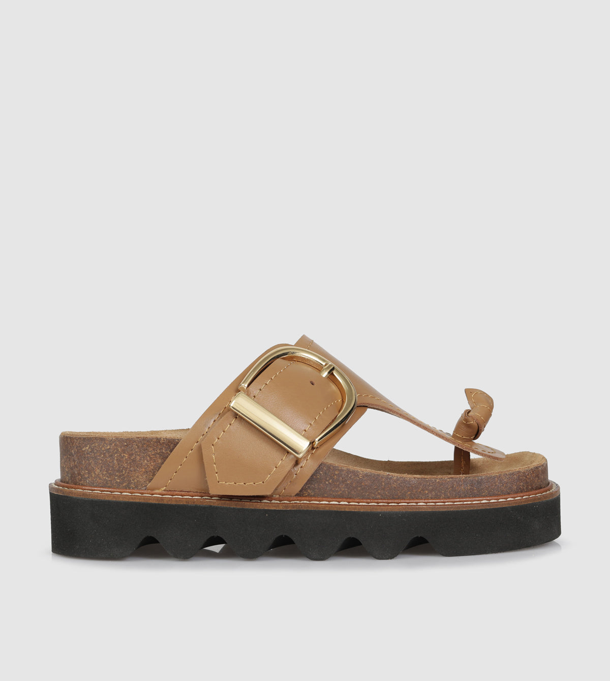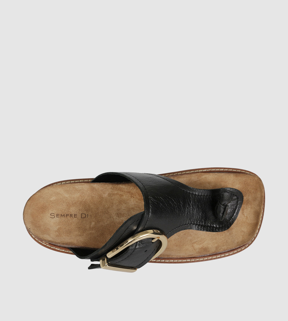 Jenell Thongs by Sempre di, are designed for ultimate luxury and comfort. Featuring a chunky rubber sole and suede covered footbed, these sandals provide superior cushioning and stability in every step. The vegtan leather and oversized gold buckle add a touch of sophistication and style, creating an ideal look for any summer ensemble. With Jenell you can experience the best of both fashion and function.