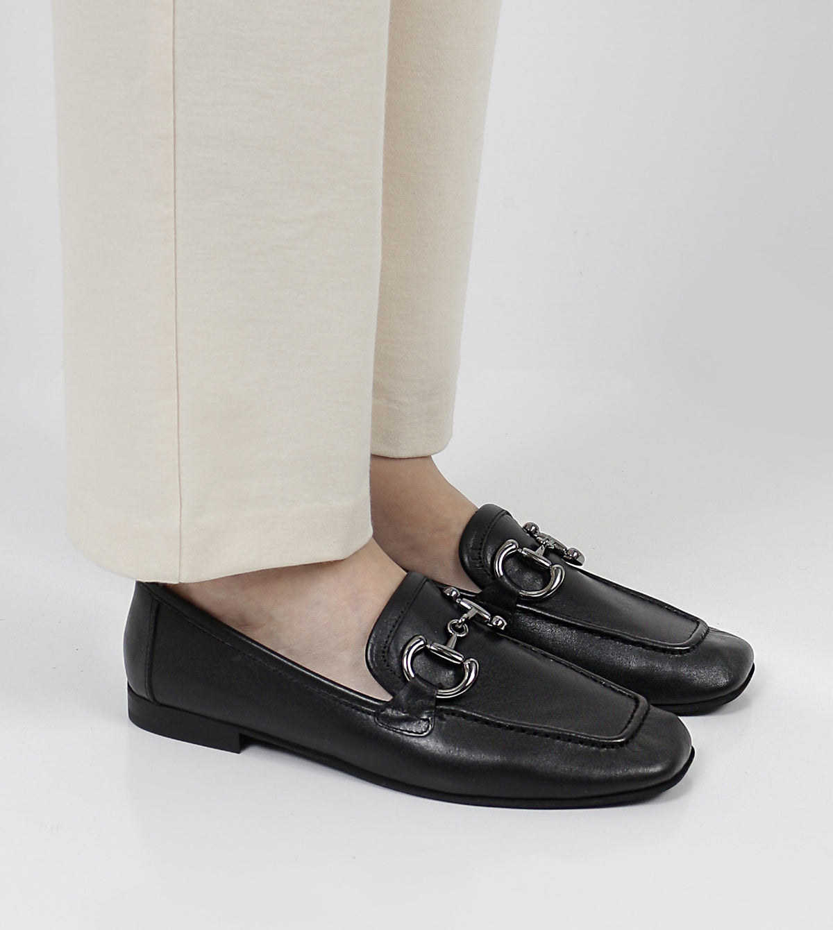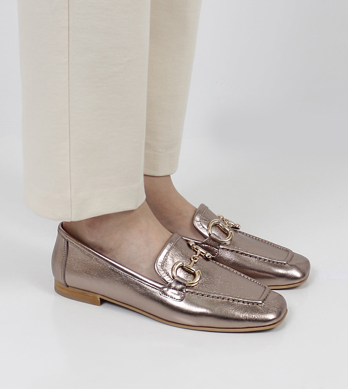- Metal horsebit detail for a sophisticated look