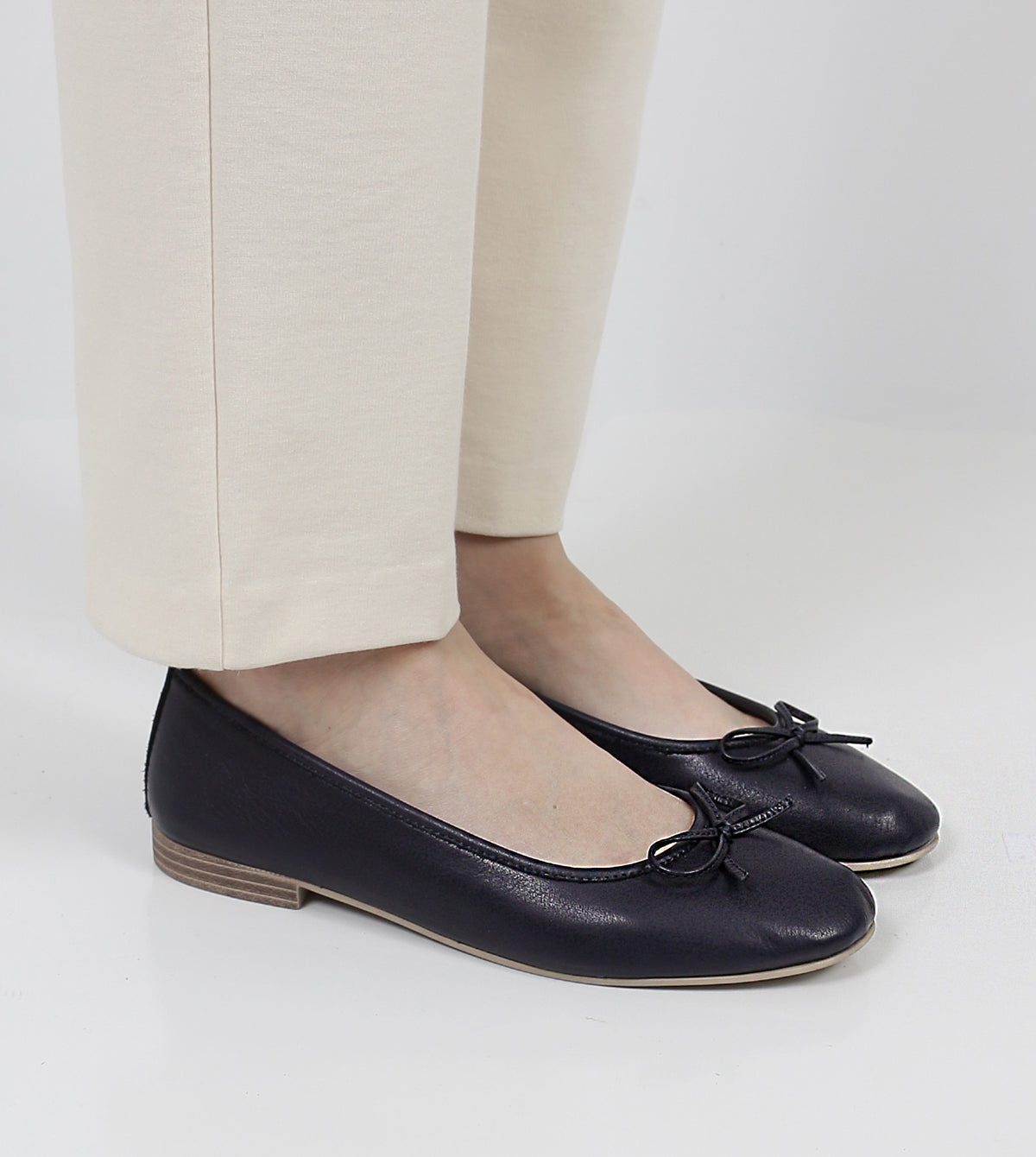 The Hadlee Ballerinas by Sempre Di are a timeless addition to any wardrobe. Featuring a sleek silhouette with a classic bow detail, these flats are crafted from smooth leather for a refined finish. The minimalist design is perfect for elevating everyday looks with effortless charm and comfort.