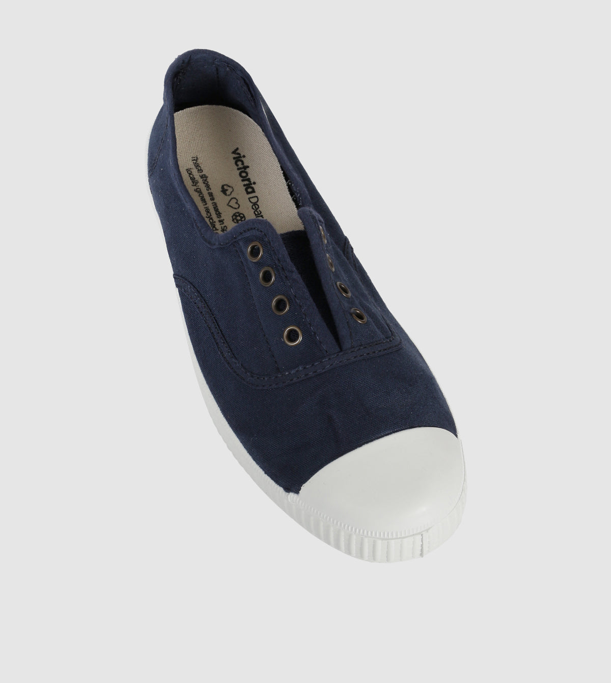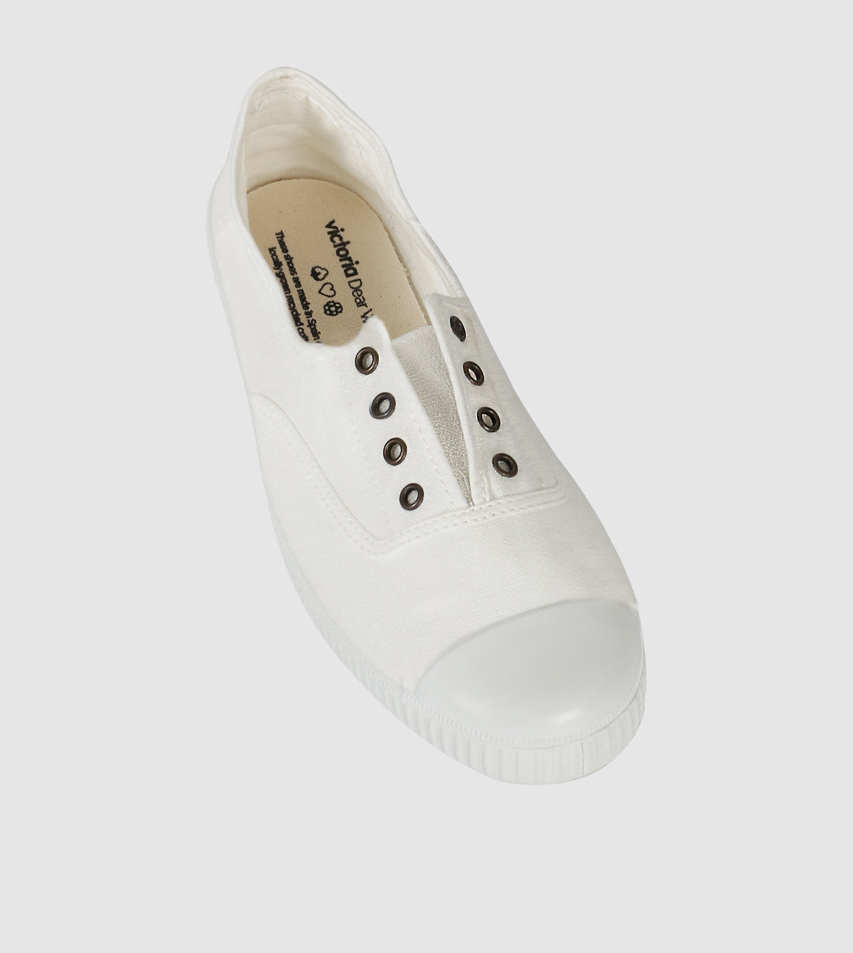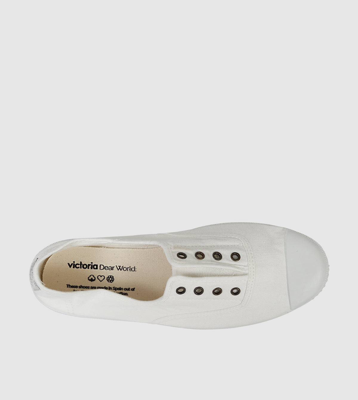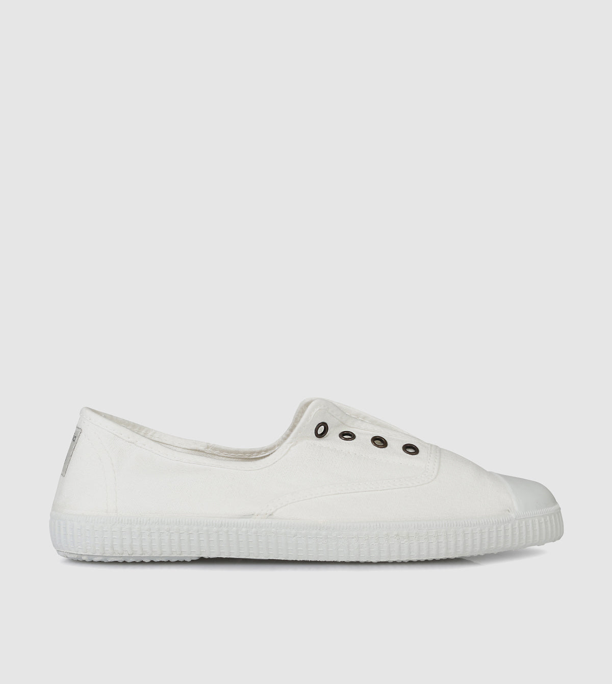Introducing the Lallie low-top sneakers by Victoria Dear World—where sustainability meets effortless style. Available in white, blue, and taupe. Made from eco-friendly materials, it features a clean, timeless design with a canvas upper and metallic eyelets for subtle contrast. The rubber toe cap and sole add durability, while the laceless design ensures easy wear.
