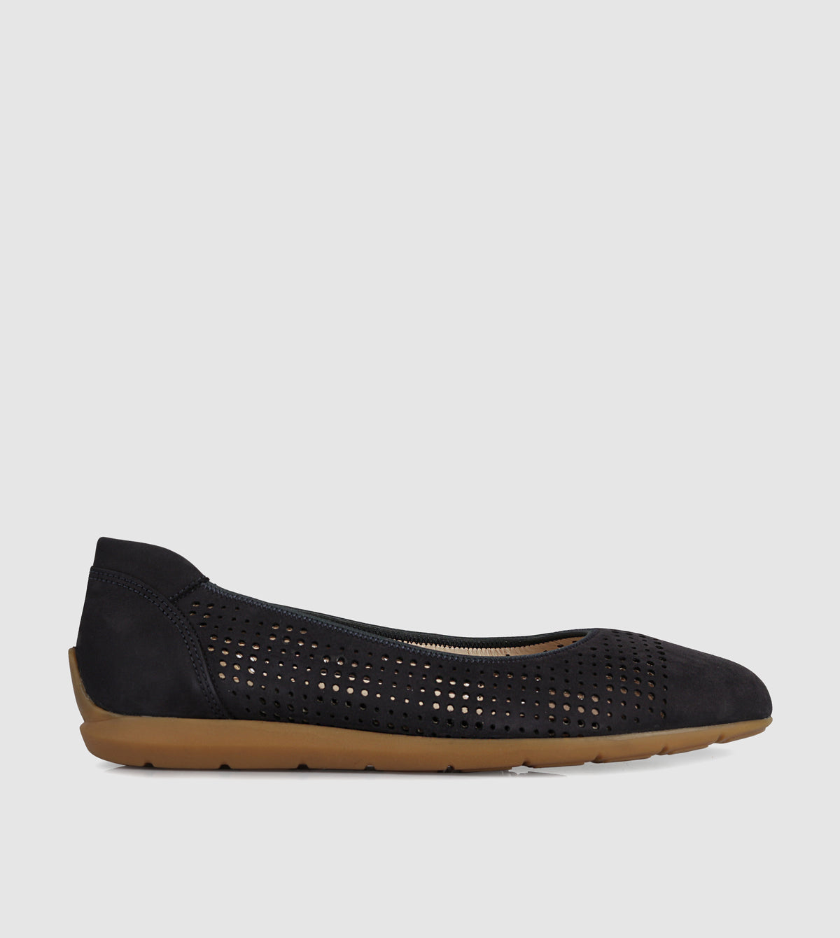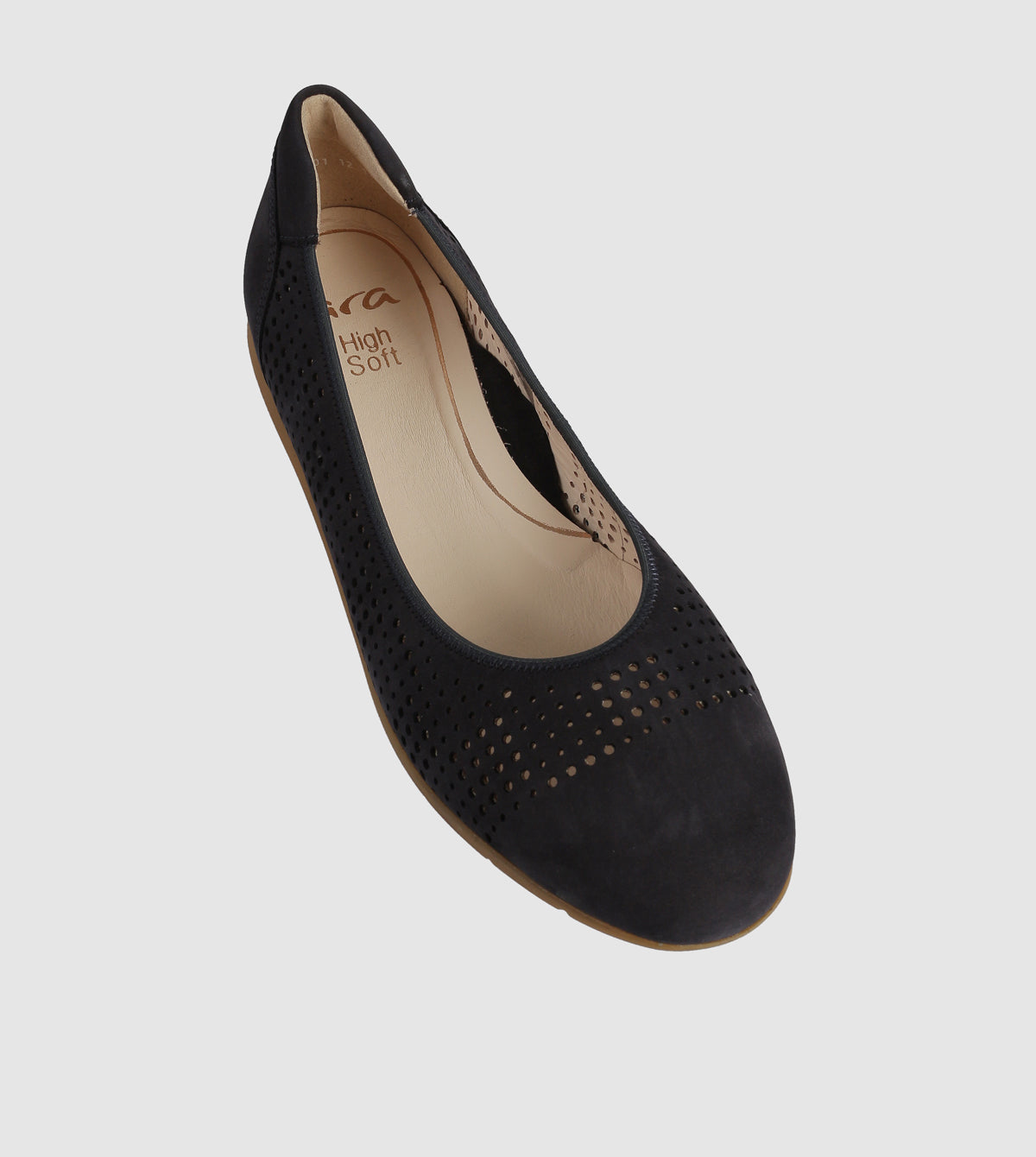 Introducing the Kumi ballet flat by Ara, where modern design meets ultimate comfort. Crafted in a sleek dark blue shade with perforated detailing, this flat is a perfect choice for those seeking a blend of style and breathability. Whether paired with jeans or a summer dress, the Kumi flat is versatile enough for any occasion.