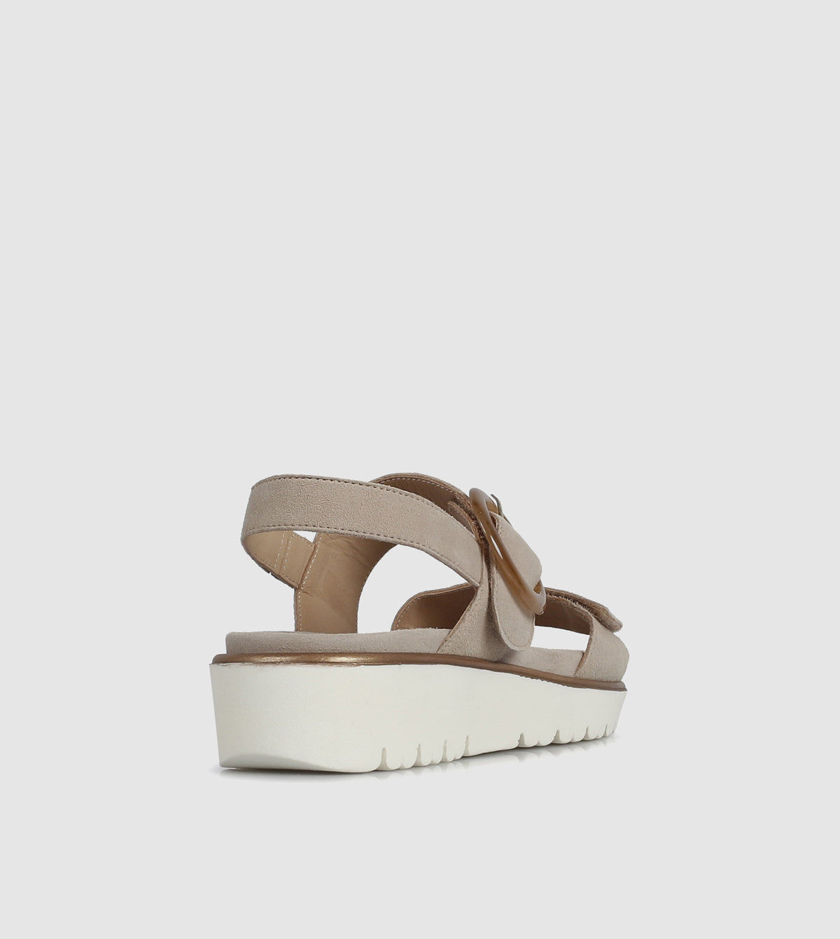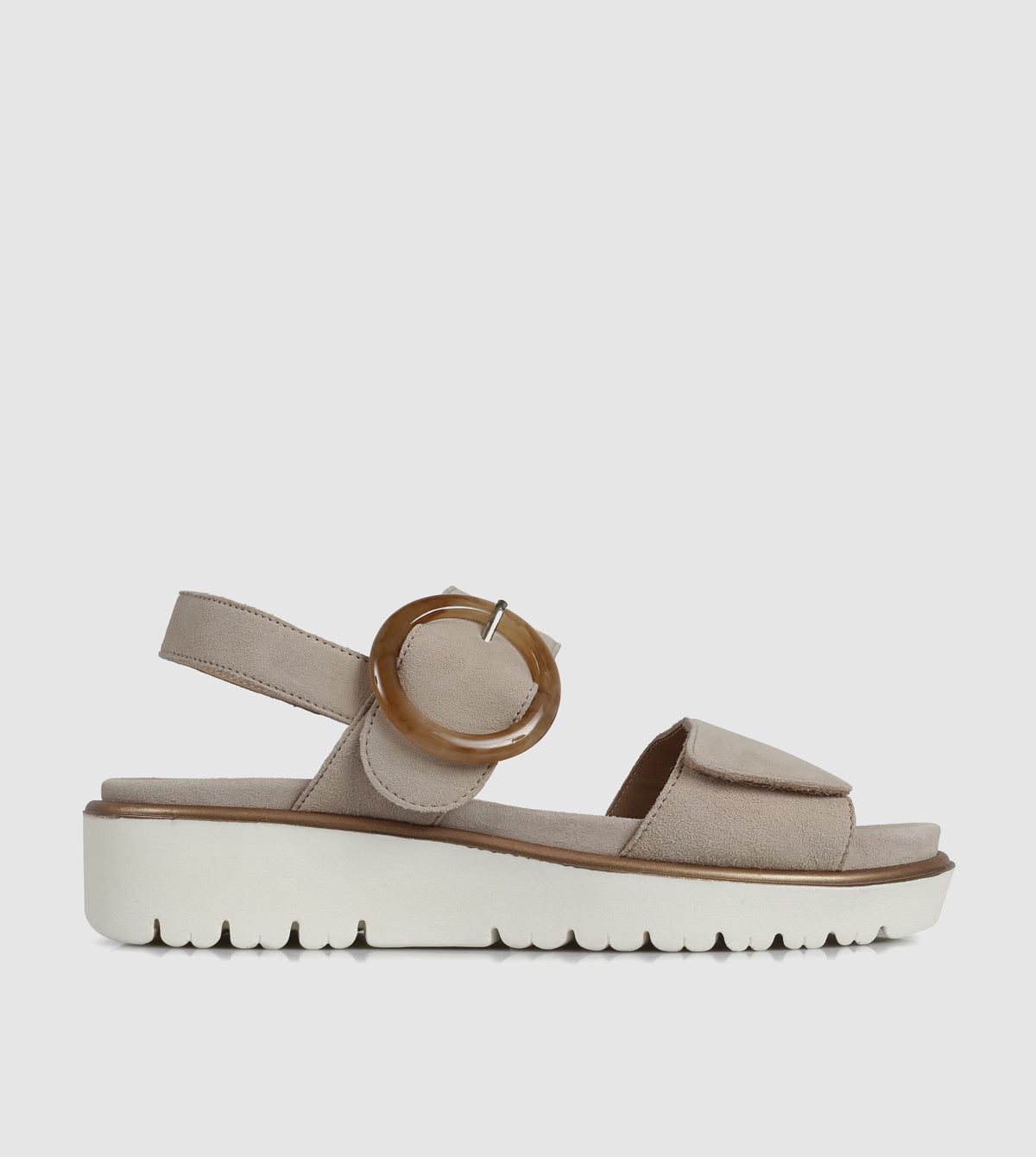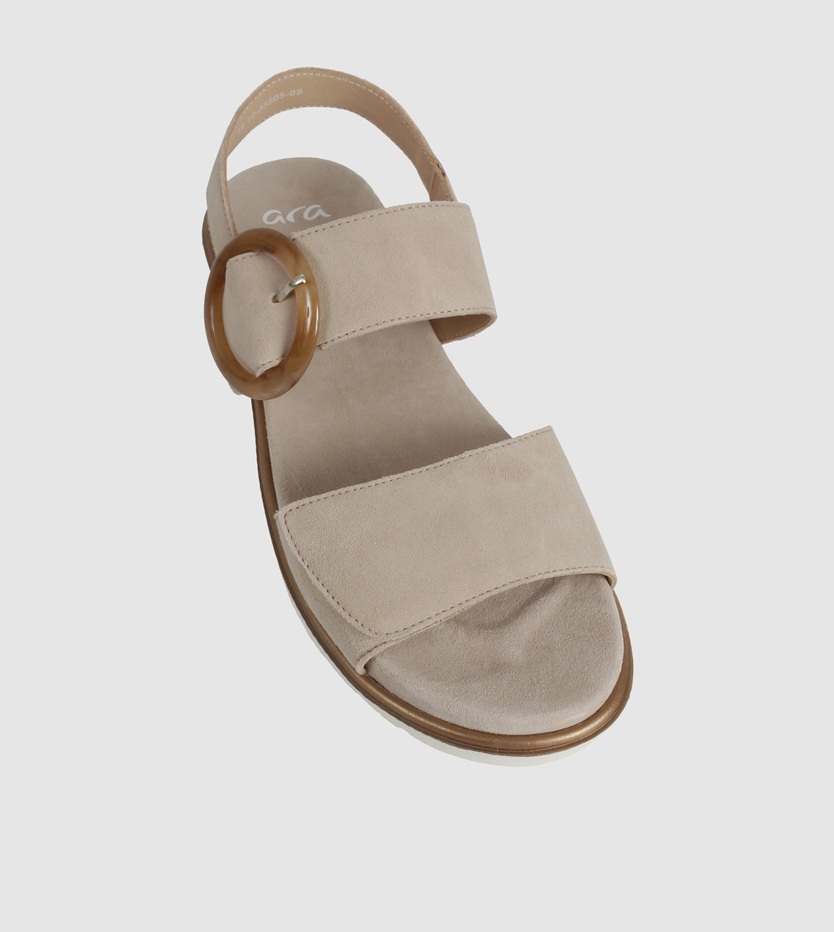 Step into effortless style with the Vinales sandals by Ara, available in classic black and taupe. Featuring a wide strap and an oversized tortoiseshell buckle, this sandal combines comfort with a touch of flair. Whether paired with casual outfits or dressed up, the Vinales sandal is designed for comfort and style that lasts.