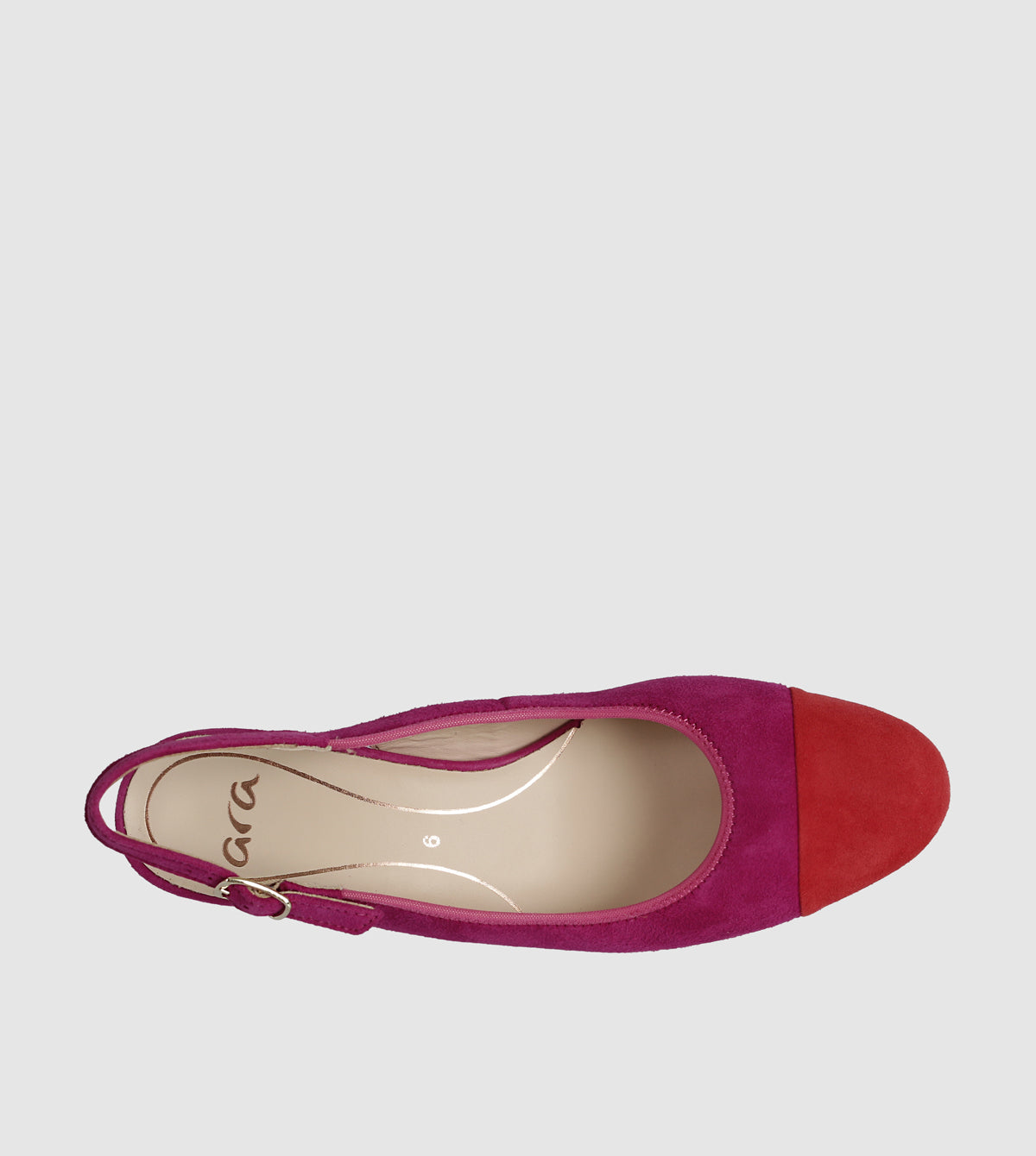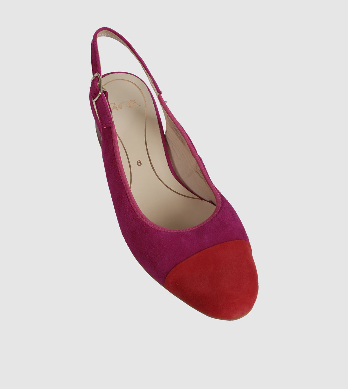 Introducing the Marbelier slingback by Ara, a stylish blend of comfort and flair with a sleek suede upper and contrasting cap toe. Perfect for both work and leisure, the Marbelier slingback brings a polished finish to any outfit.
