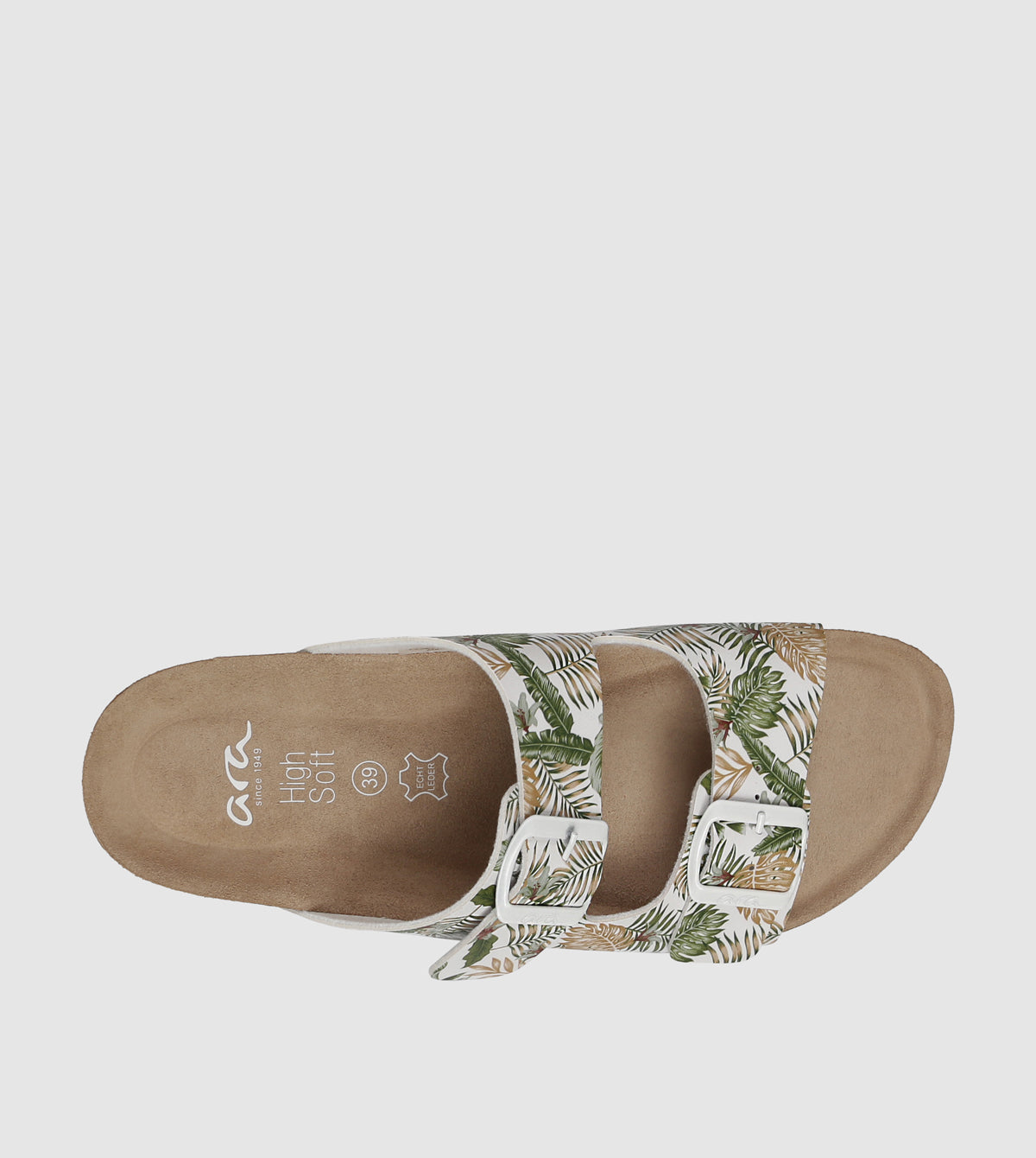 Embrace a tropical vibe with the Elsie sandal by Ara. This slide sandal features a lively botanical print on the upper, adding a playful touch to your summer wardrobe. Perfect for warm-weather outings, the Elsie sandal combines style and ease, making it an ideal choice for relaxed days in the sun.