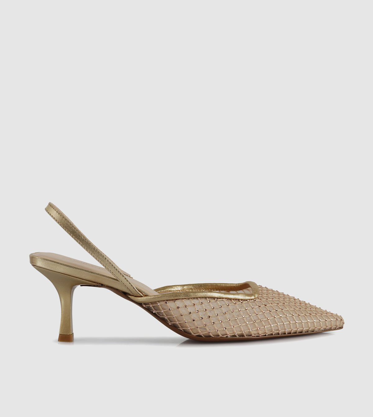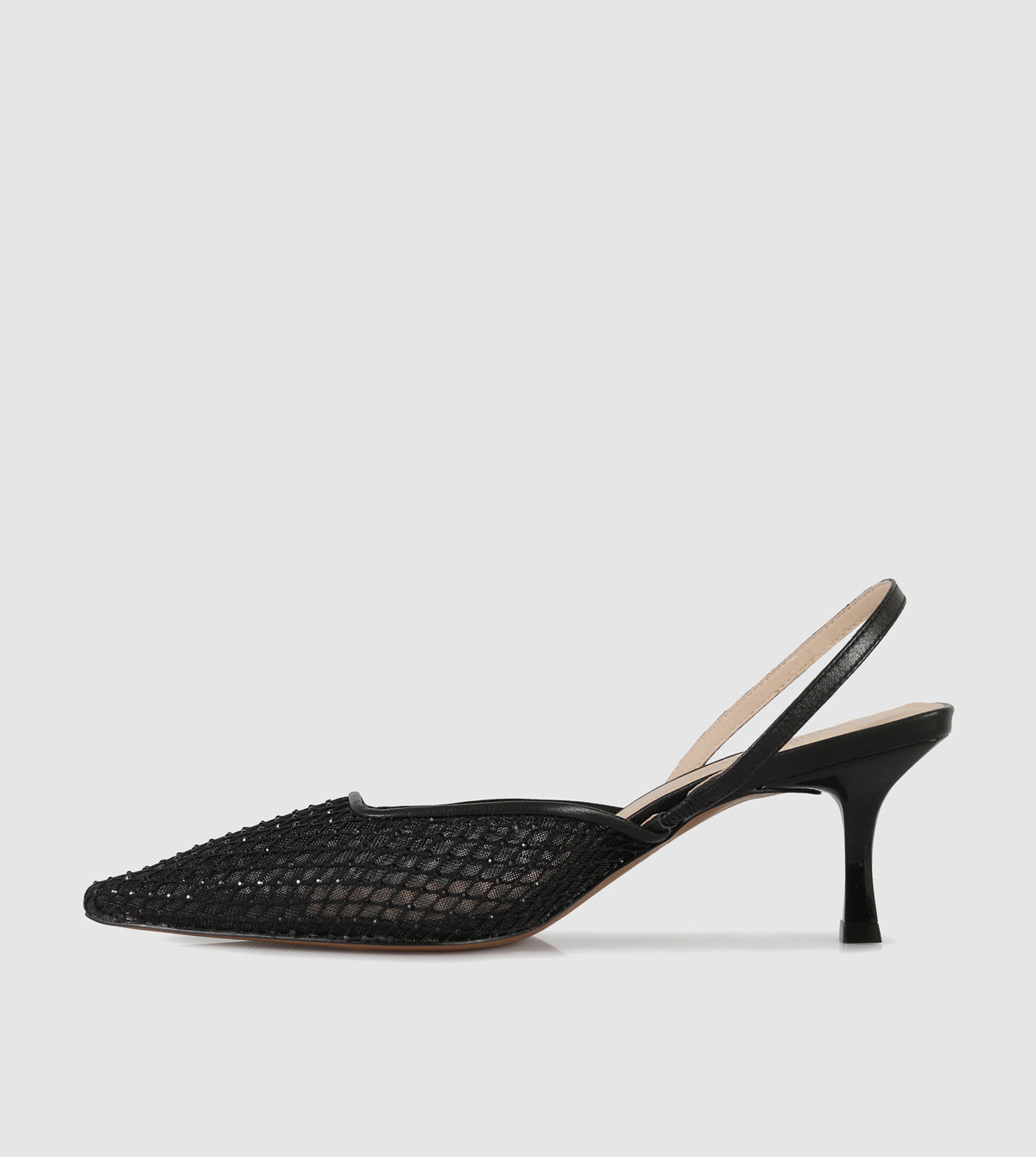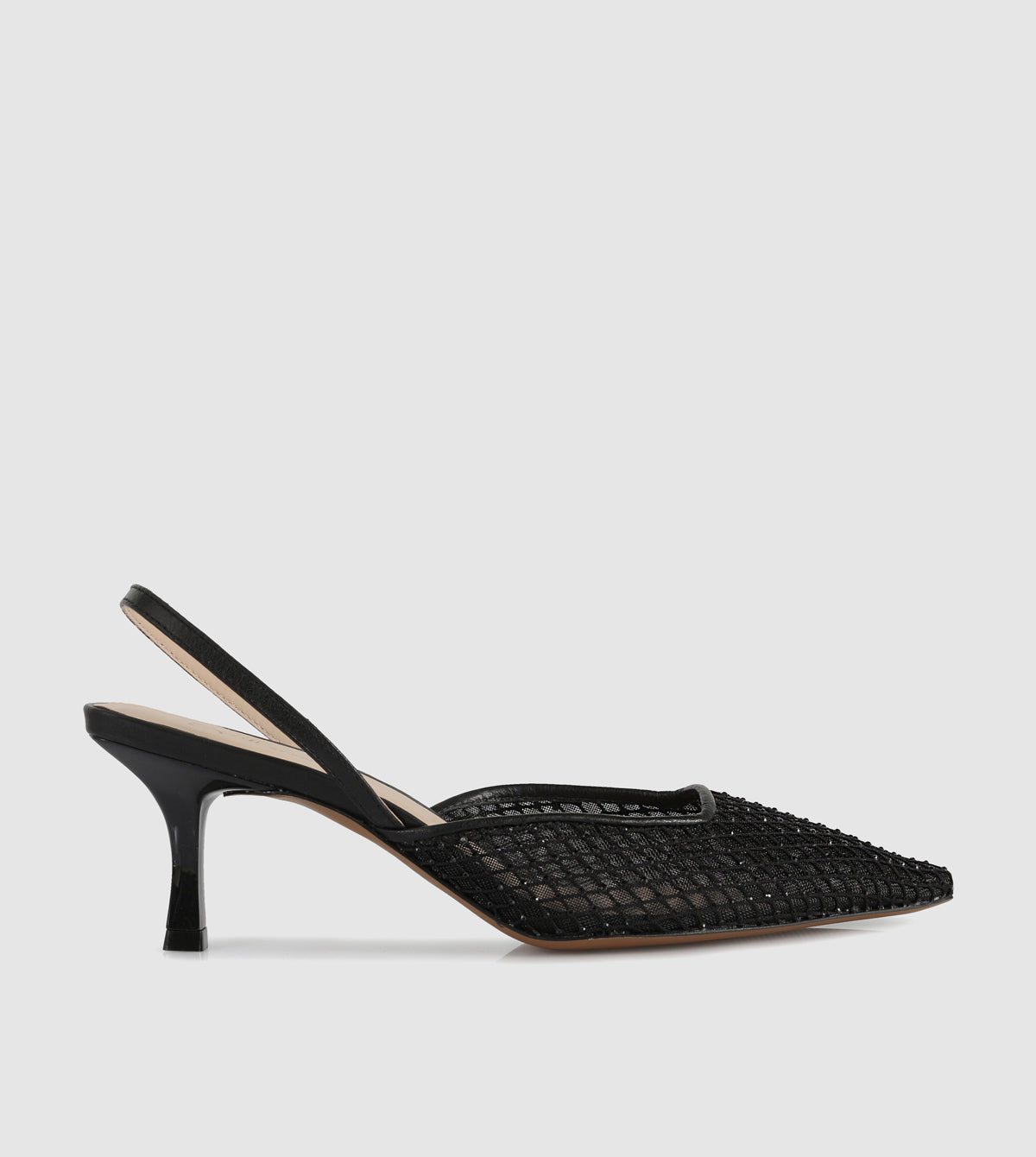 - Sculpted kitten heel for subtle lift and all-day wear