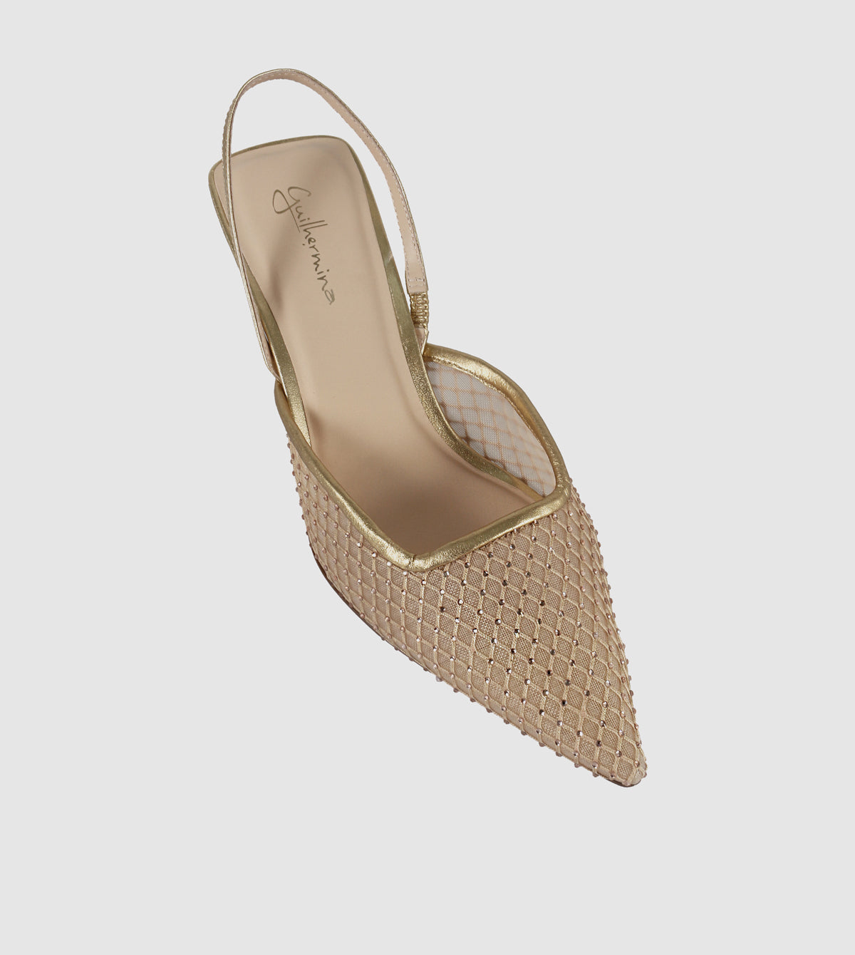 The Aurora Slingbacks by Guilhermina are the perfect blend of elegance and modern design. Crafted with a woven mesh upper framed by metallic gold leather trim, this slingback heel delivers a lightweight feel with standout detail. A pointed toe elongates the silhouette, while the low sculpted kitten heel adds just the right amount of lift for all-day comfort. Finished with an adjustable slingback strap and breathable leather insole, Aurora is a versatile choice for weddings, cocktail parties, formals, and special dinners.