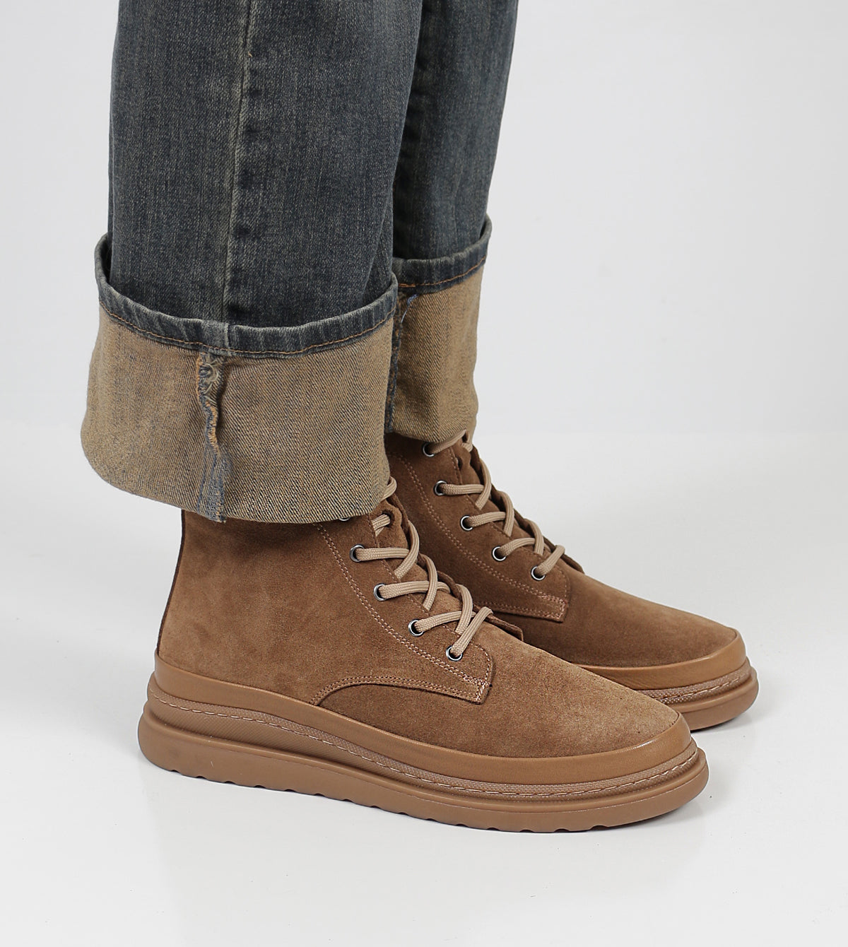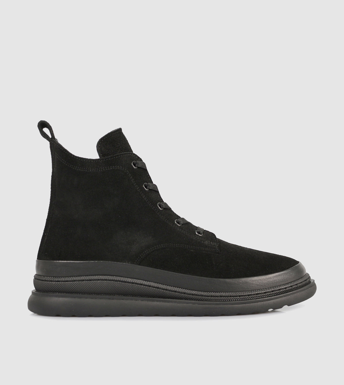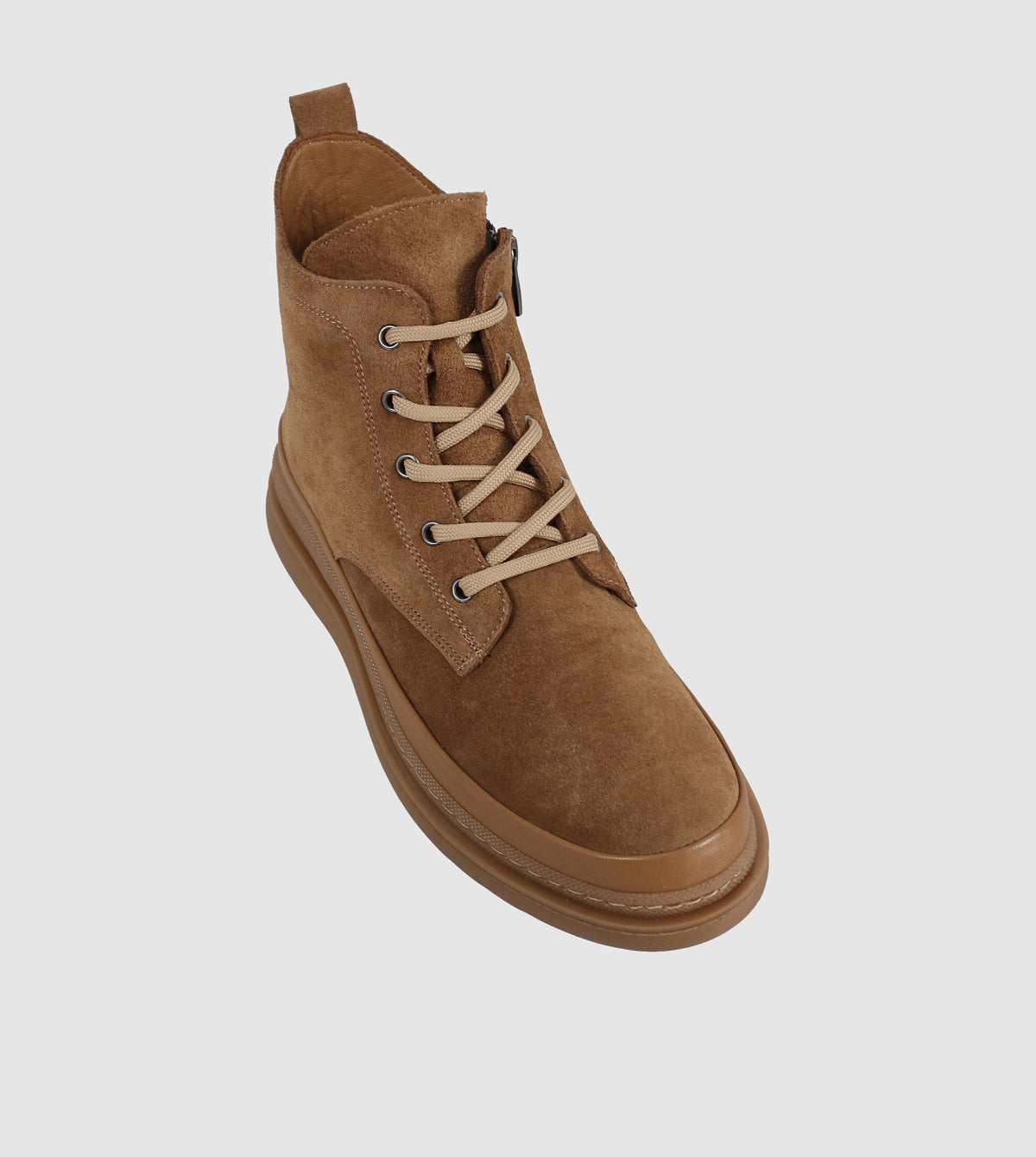 The Oren Lace-up Boots by Sempre Di deliver rugged charm with a modern twist. Crafted from supple suede, these high-top boots feature tonal stitching, a supportive padded collar, and a chunky rubber sole for enhanced comfort and grip. Designed for everyday wear, they combine utilitarian edge with versatile street style.