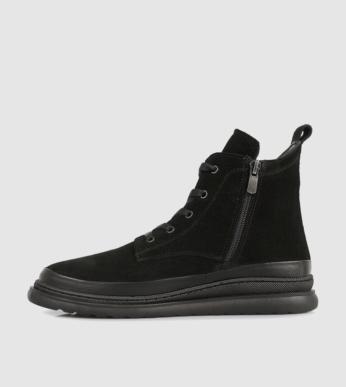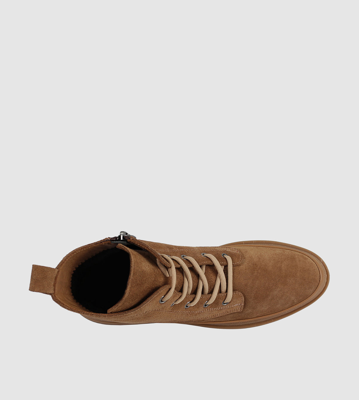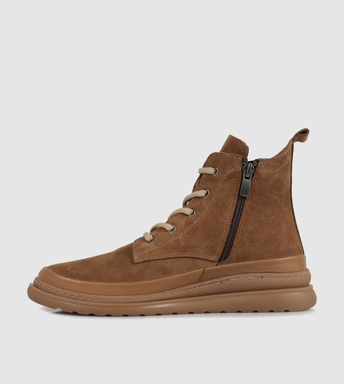 The Oren Lace-up Boots by Sempre Di deliver rugged charm with a modern twist. Crafted from supple suede, these high-top boots feature tonal stitching, a supportive padded collar, and a chunky rubber sole for enhanced comfort and grip. Designed for everyday wear, they combine utilitarian edge with versatile street style.