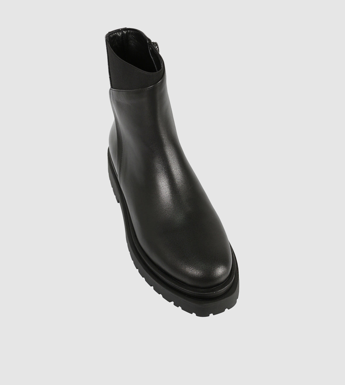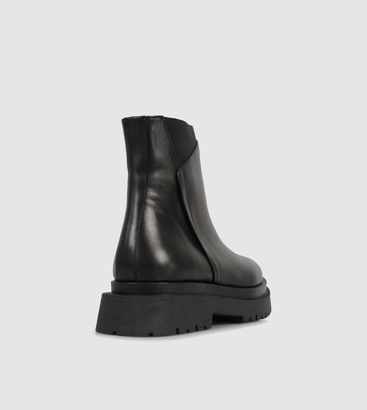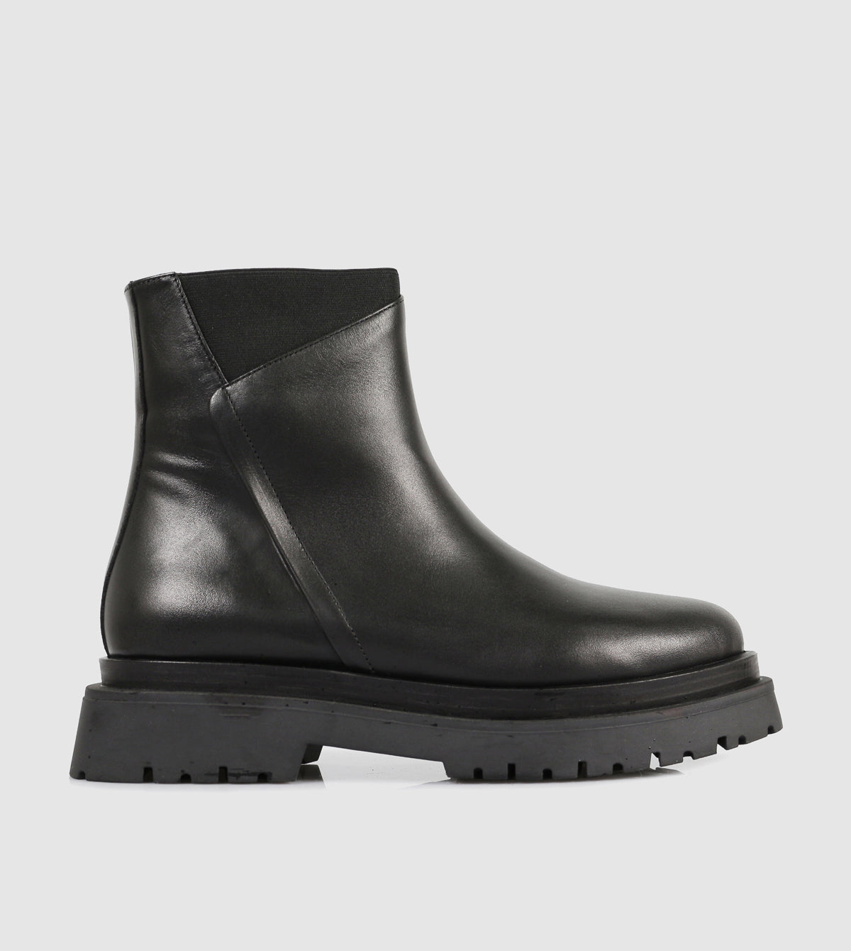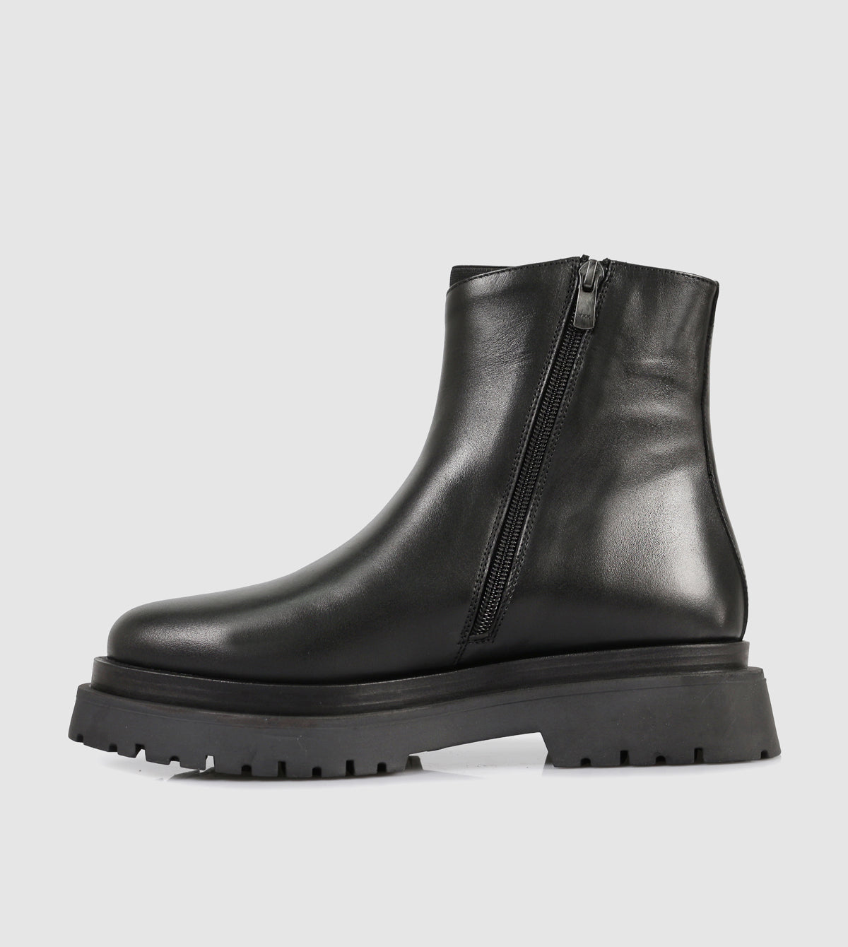 The Teagan Ankle Boots by S Sempre Di offer a bold and modern silhouette designed for both style and practicality. Crafted from smooth premium leather, these boots feature a round toe, sleek panel detailing, and a chunky lug sole for a grounded yet contemporary look. With a convenient side zip closure and pull tab, they’re as easy to wear as they are statement-making.