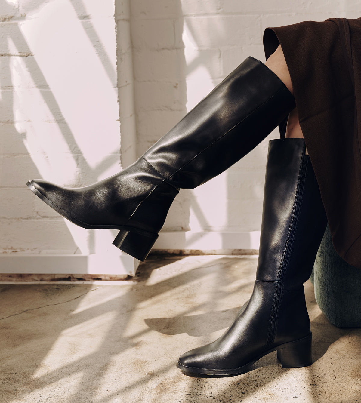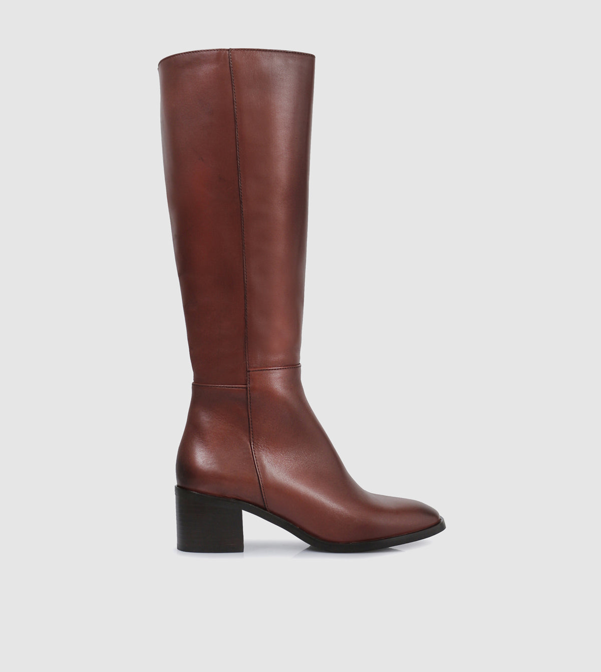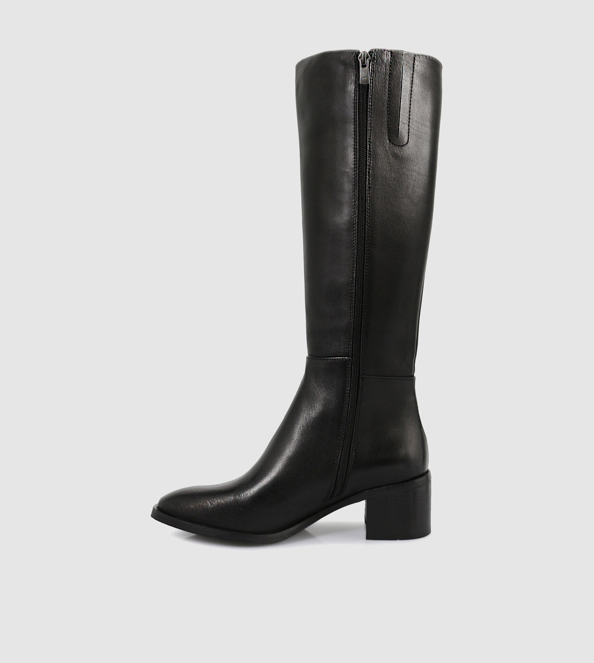 The Armonia Knee-high Boots by Sempre Di embody timeless elegance with a sleek, streamlined silhouette. Crafted from premium leather, these boots feature a softly rounded toe, smooth finish, and a mid-height block heel that offers both style and comfort. Designed to hug the calf for a flattering fit, they make a versatile addition to both day and evening ensembles.