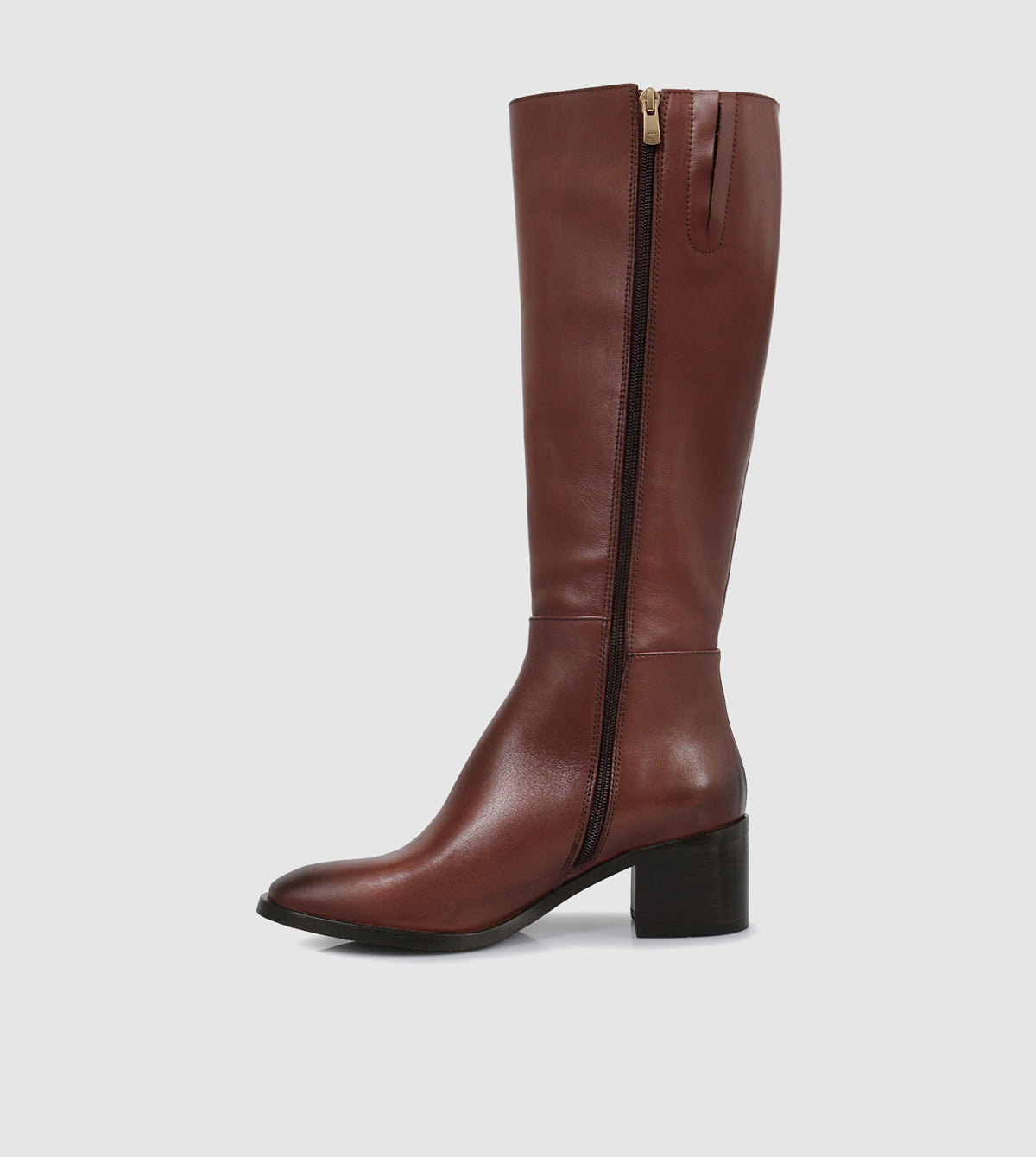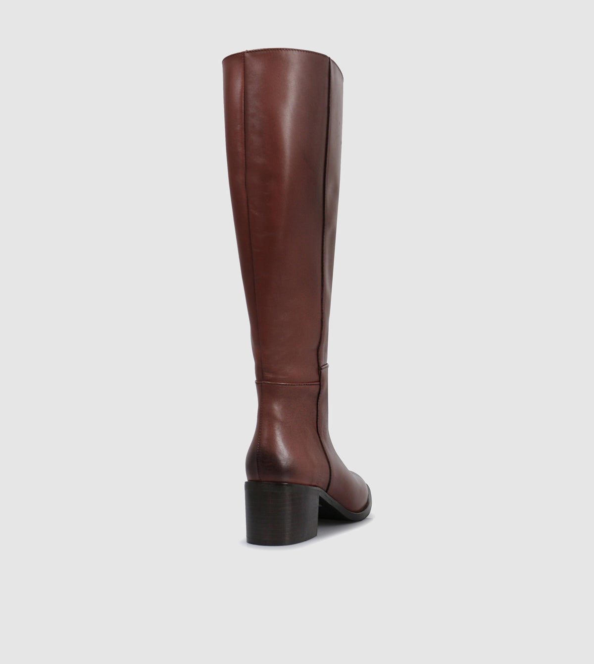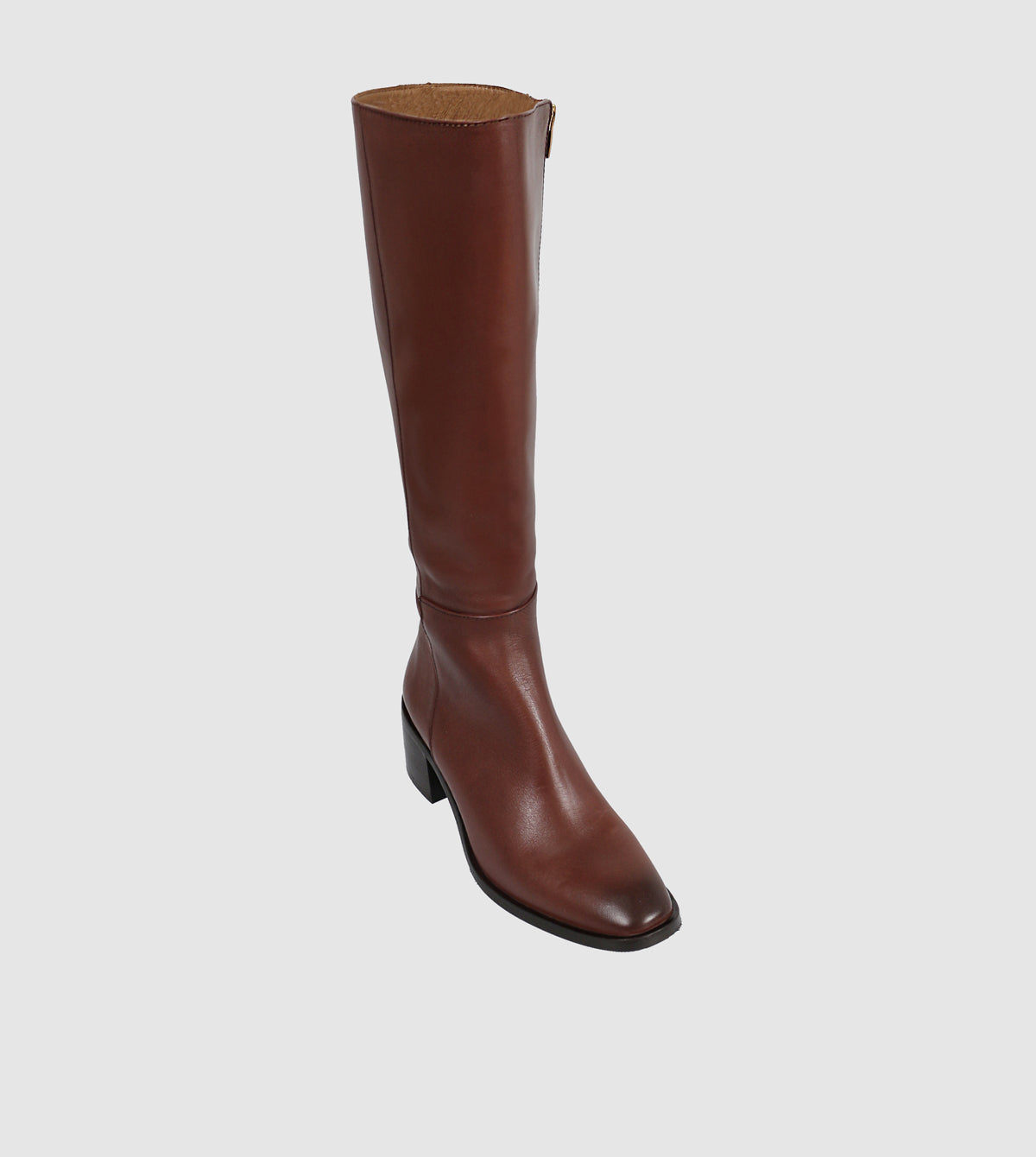 The Armonia Knee-high Boots by Sempre Di embody timeless elegance with a sleek, streamlined silhouette. Crafted from premium leather, these boots feature a softly rounded toe, smooth finish, and a mid-height block heel that offers both style and comfort. Designed to hug the calf for a flattering fit, they make a versatile addition to both day and evening ensembles.