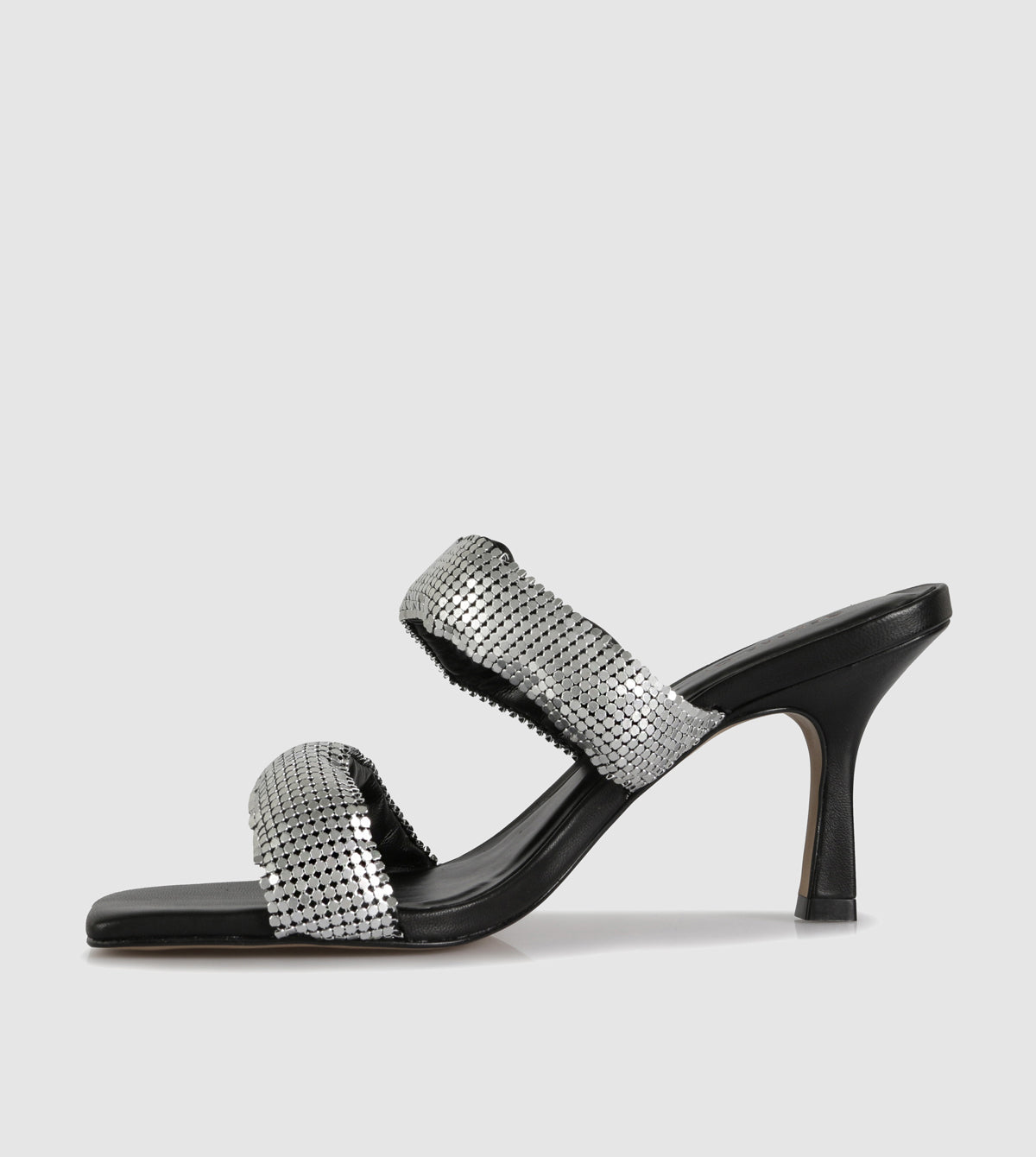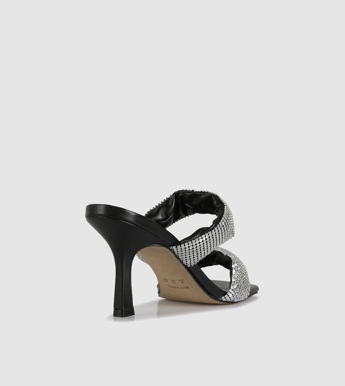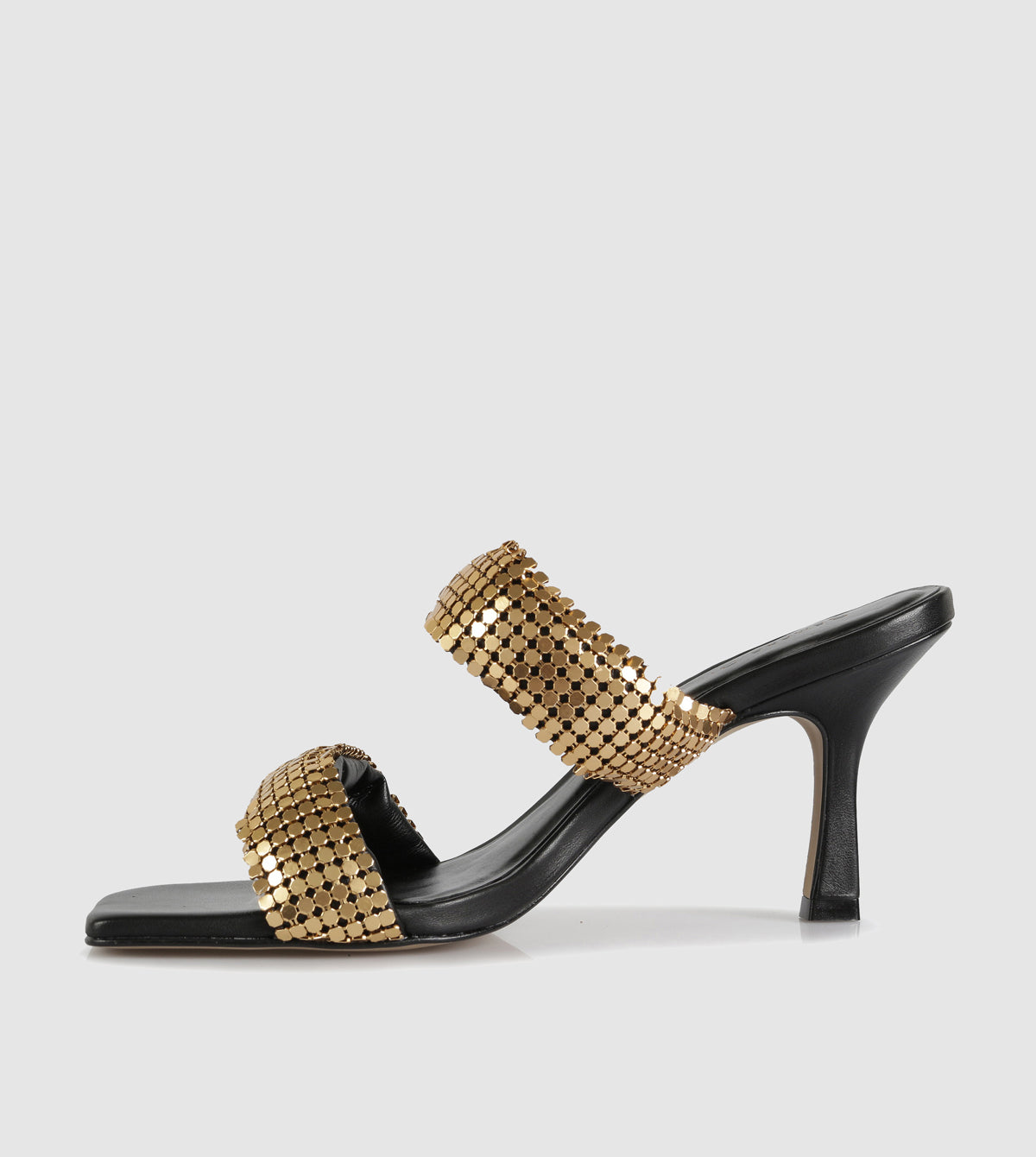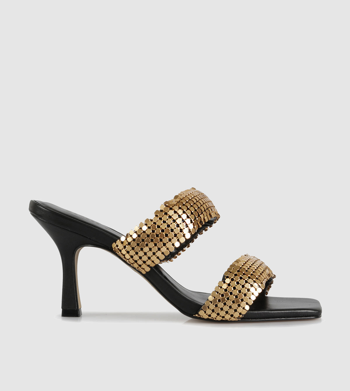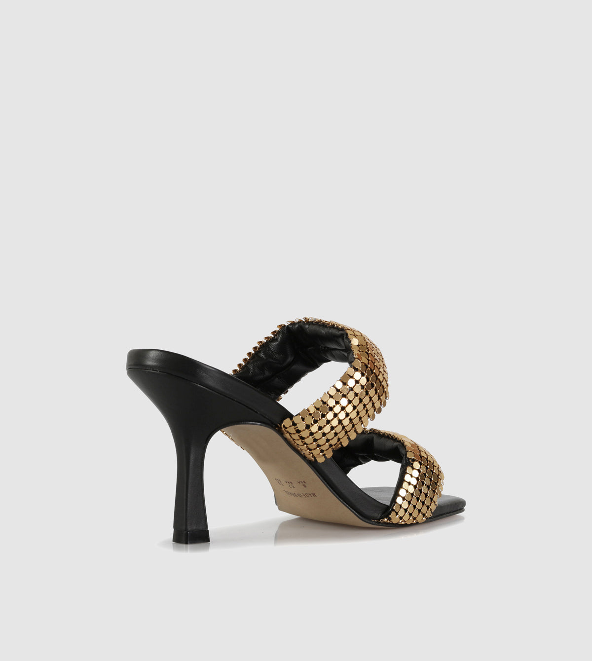 The Lizzy Heeled Sandals by Sempre Di brings you all the glamour needed! The open two strap design sits elegantly on the feet and are easy to pair to any outfit being it a gown or a ripped pair of jeans. It all works. The leather wide straps are covered in sequins and they come in the classic gold or silver version. Easy to slip on with the perfect medium height heel.