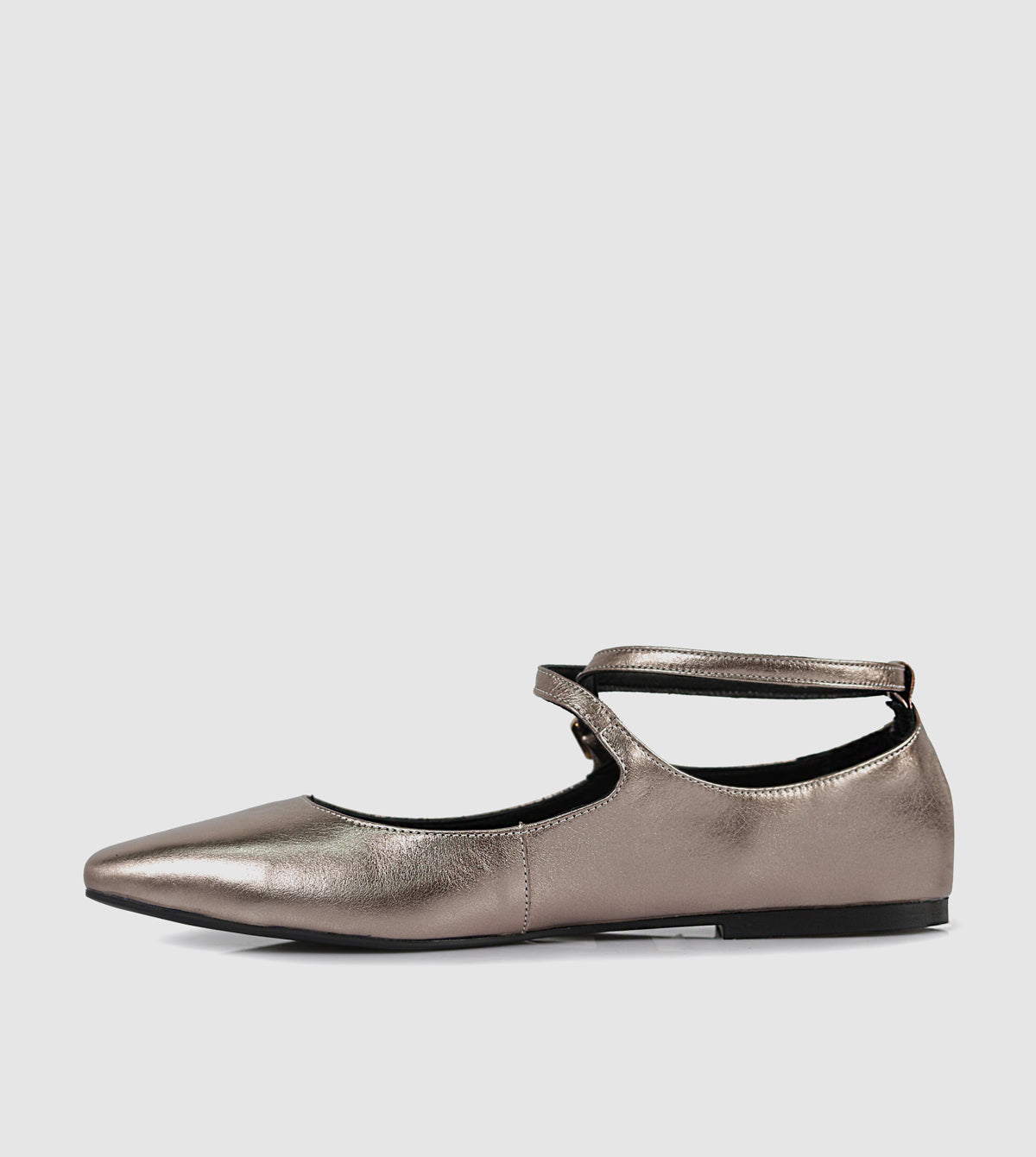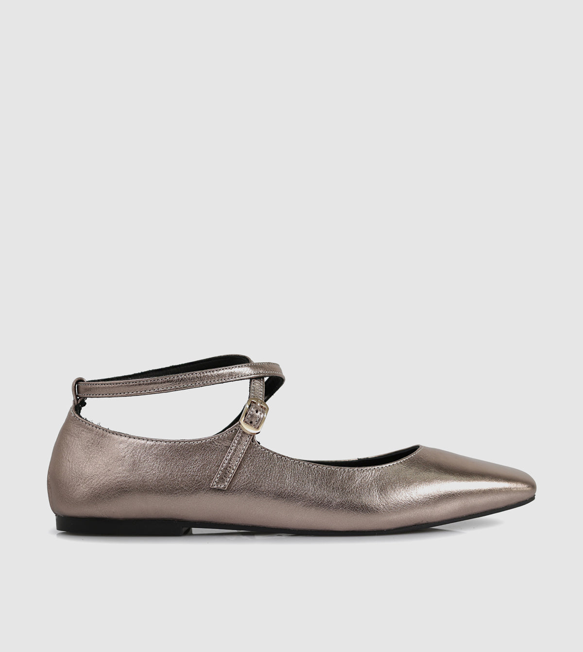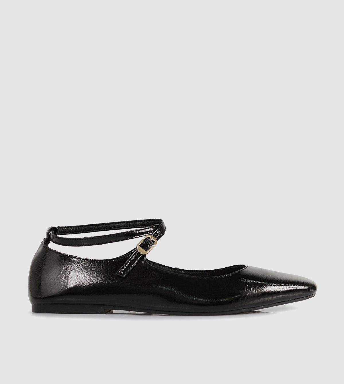 Fusing luxury and style, these Indy Flats by S Sempre Di are a must-have addition to your wardrobe. Crafted in Italy with high-shine leather, these flats feature a sleek pointed toe and delicate ankle strap for a refined yet modern silhouette. The dual buckle closure adds a subtle statement, while the flexible rubber sole ensures all-day comfort and grip.