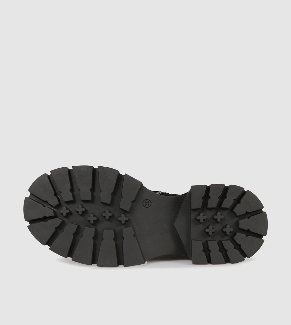 - Chunky rubber lug sole for traction