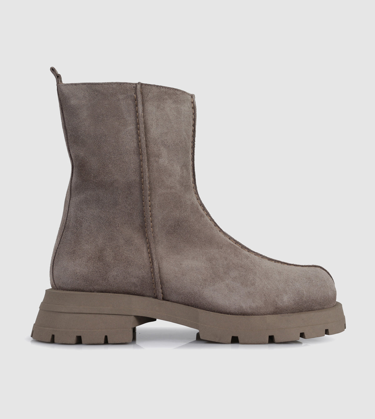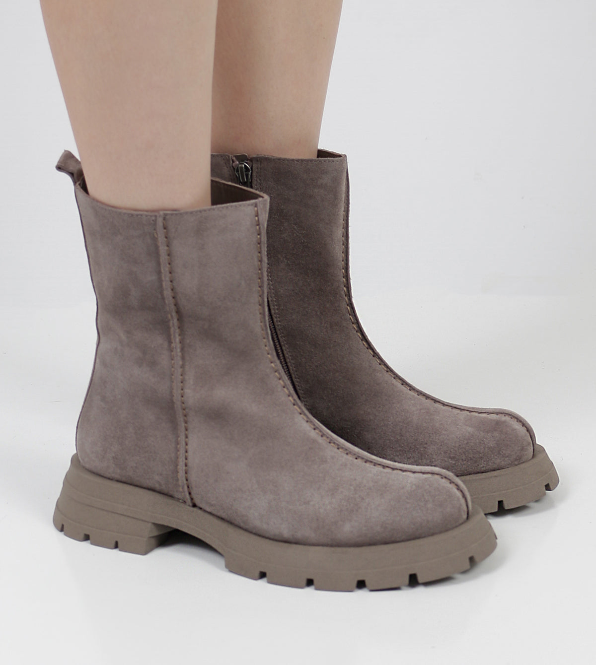 The Greer Short Boots by Sempre Di deliver rugged elegance with a contemporary twist. Crafted from smooth suede, these ankle boots feature a chunky lug sole for added grip and a bold silhouette. The pull-on design with rear tabs ensures ease of wear, while the rounded toe adds a casual yet refined touch.
