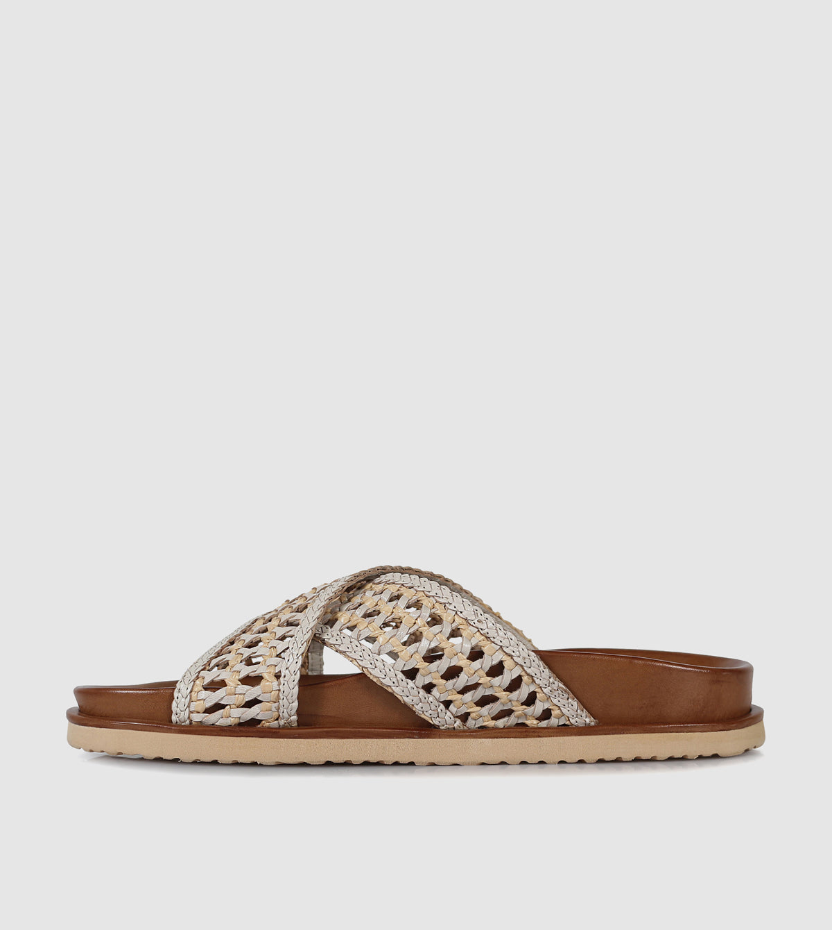 The Rawdan Slides by S Sempre Di combine artisanal texture with relaxed ease. Featuring wide woven crossover straps and a cushioned footbed, these slides elevate a casual silhouette with a touch of refined craftsmanship. Lightweight and versatile, they’re an effortless choice for warm-weather style.