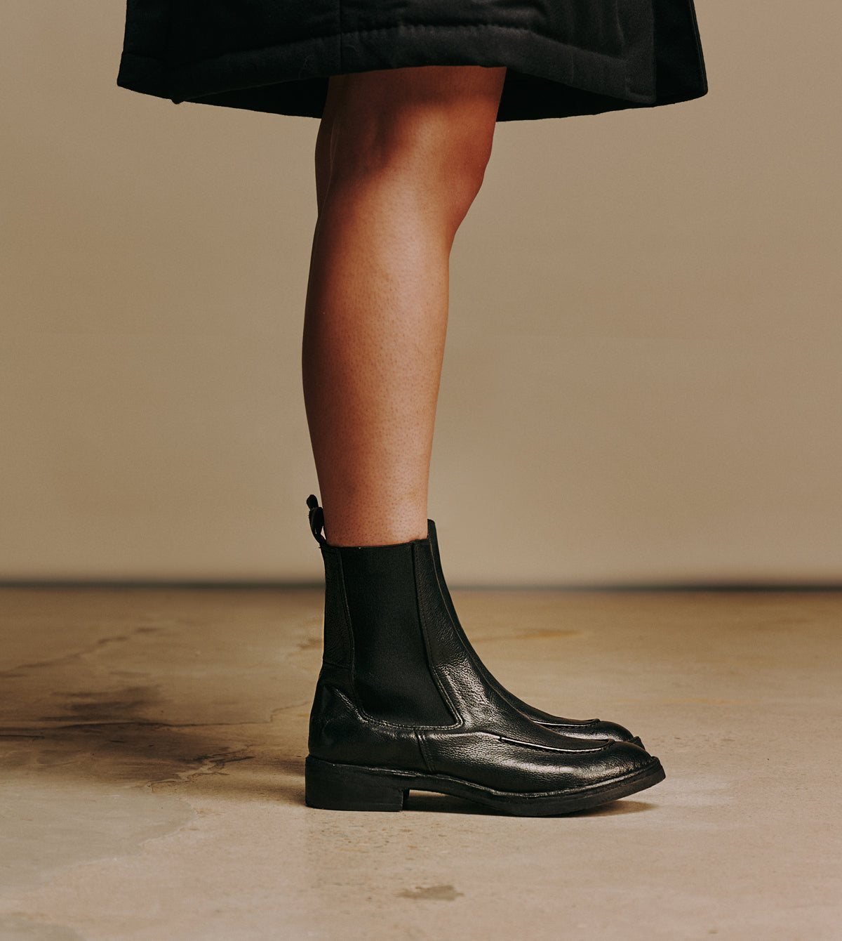The Jadie Chelsea Boots by Beau Coops combine timeless design with everyday function. Crafted with a smooth leather finish and elasticated side panels, they offer easy slip-on access and a classic silhouette—perfect for versatile styling from day to night.