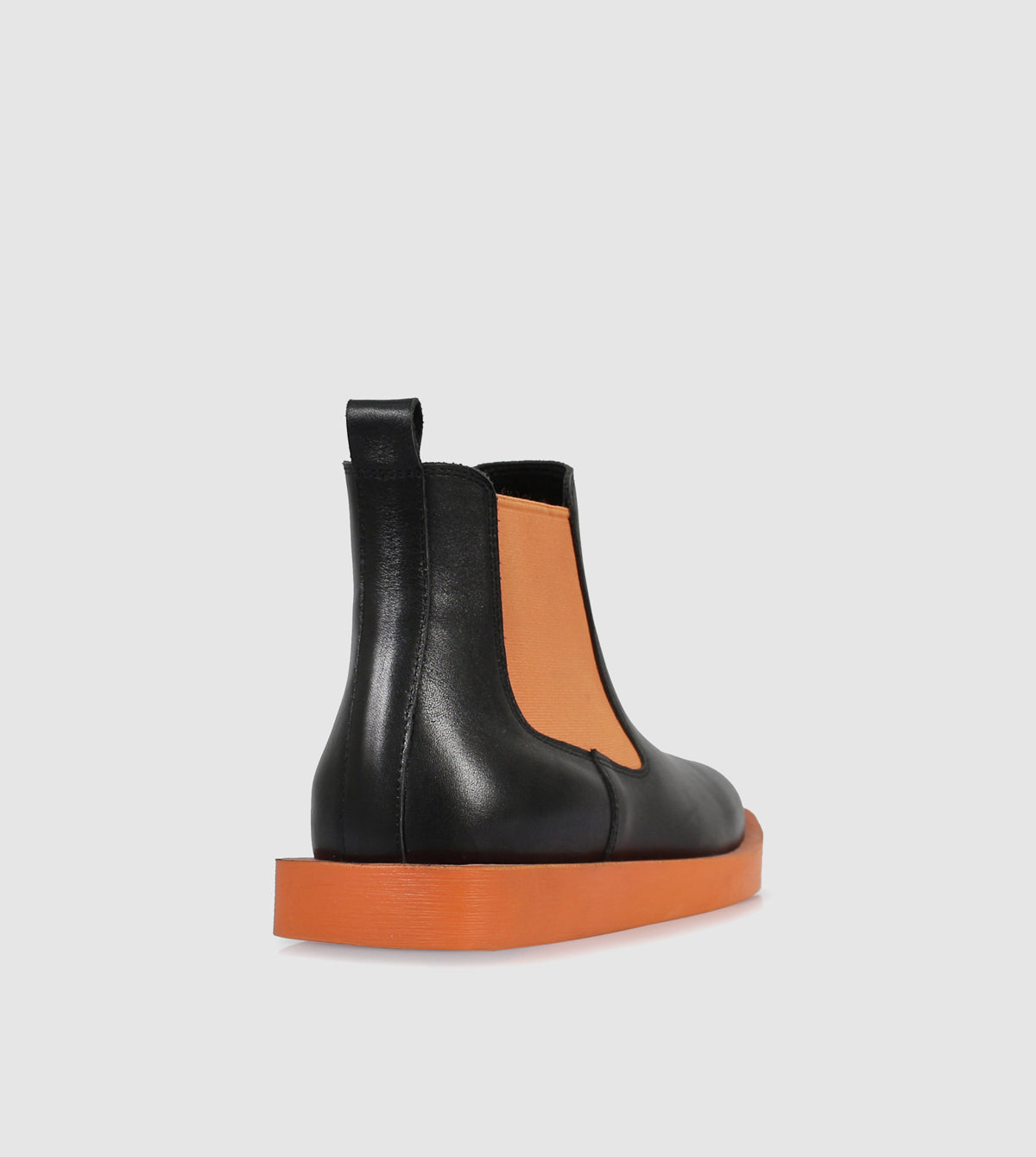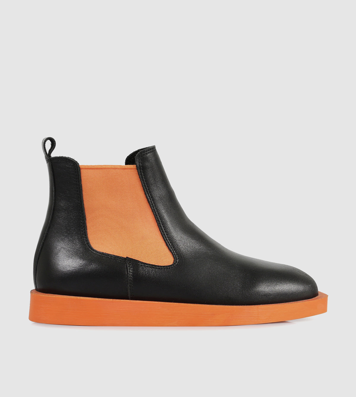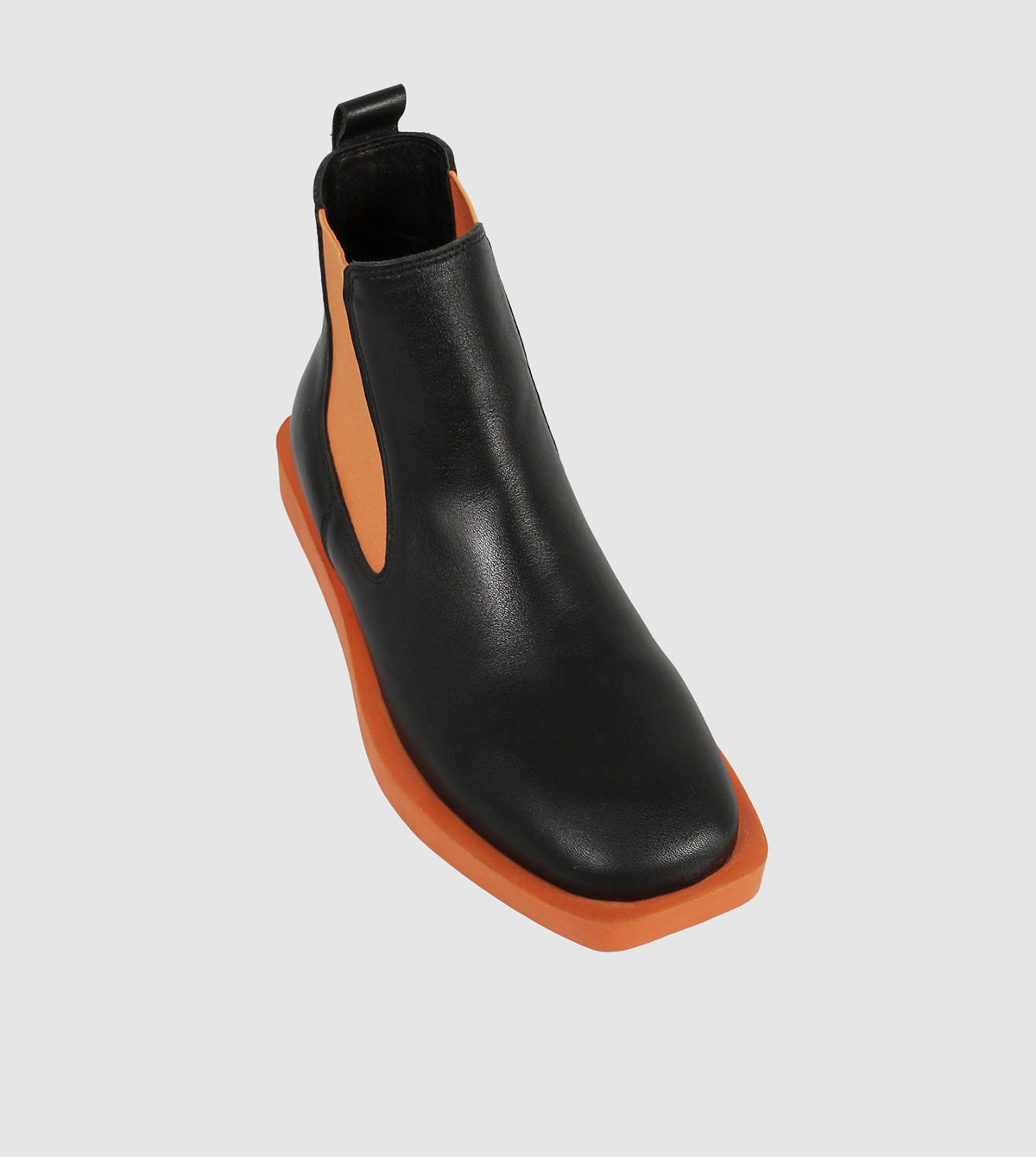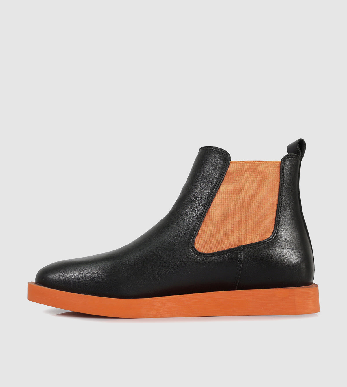 The Brielle Chelsea Boots by S Sempre Di offer a bold, contemporary twist on a classic silhouette. Crafted from smooth premium leather, these boots feature vibrant contrast elastic side panels and a matching rubber sole for a striking pop of color. With a round toe and pull tab for easy wear, they bring personality and practicality to any wardrobe.