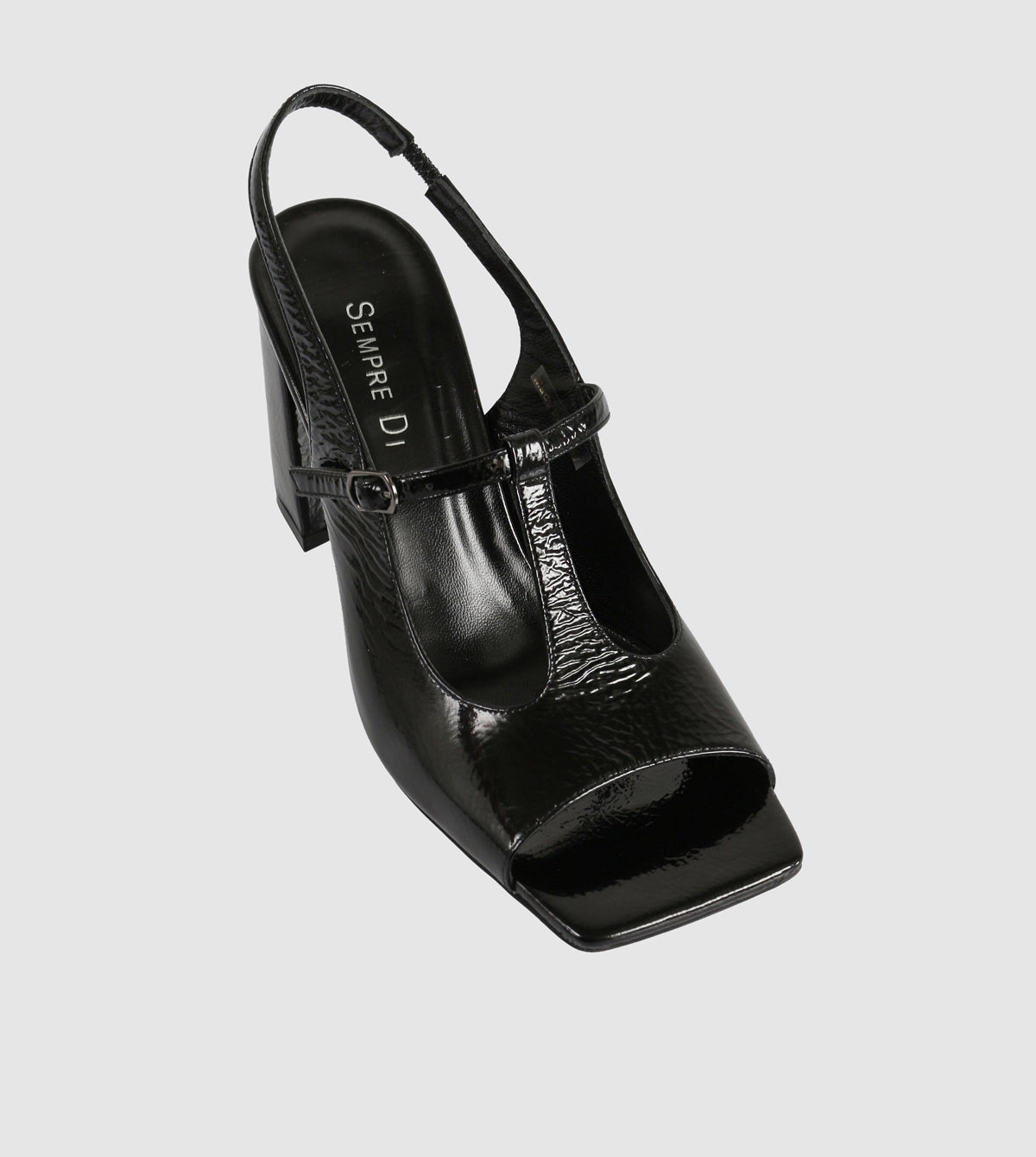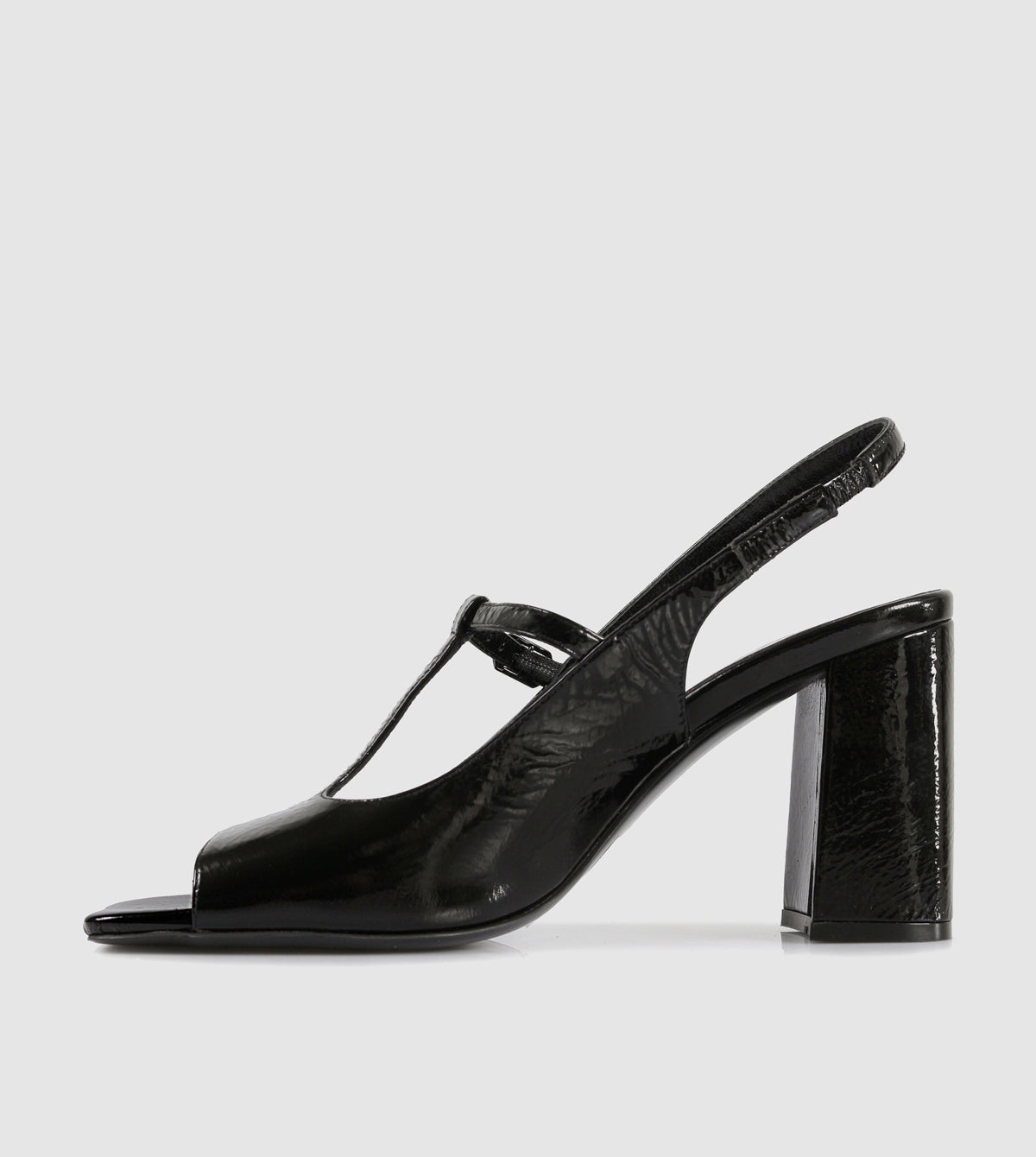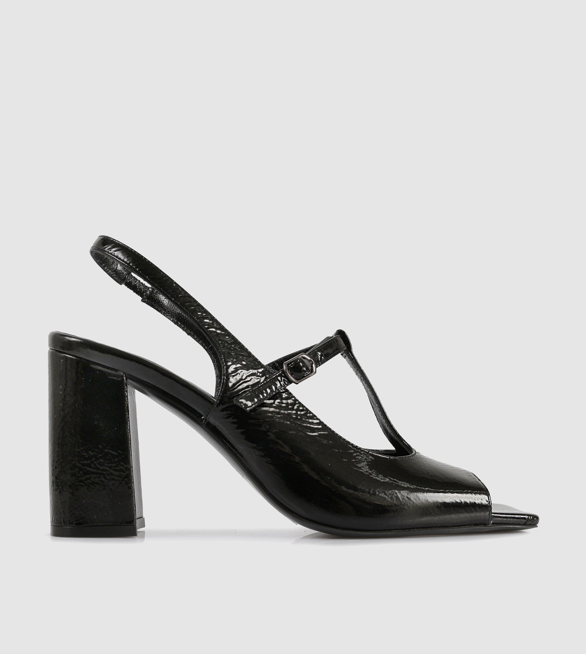 The Gitel Heels by Sempre Di bring a fresh perspective to classic sophistication. Crafted from high-shine textured leather, these open-toe heels feature a retro-inspired T-bar design and a flattering slingback strap. Set on a bold block heel, they blend comfort with statement styling—perfect for day-to-night wear.