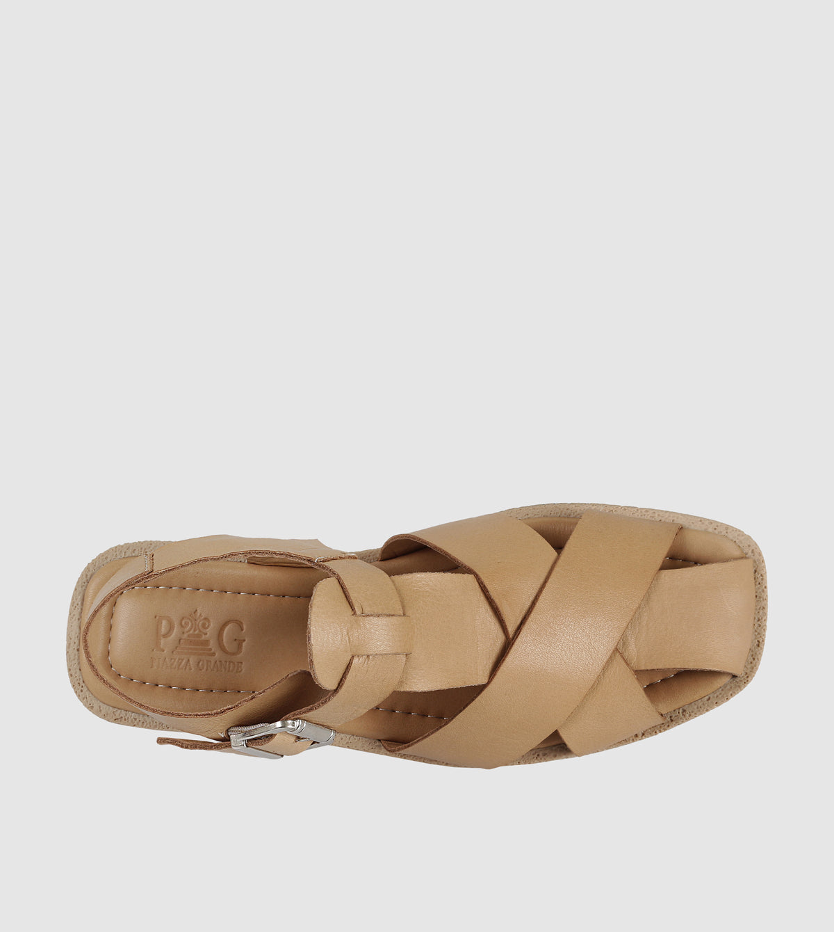 Introducing the Subin Sandals by Piazza Grande. These versatile tan leather sandals combine timeless design with practical comfort. Featuring soft, wide cross-over straps for a secure fit and an adjustable ankle buckle, they provide support and style for all-day wear. Perfect for casual outings, vacations, or warm-weather days, these sandals are a must-have for an effortless, everyday style.