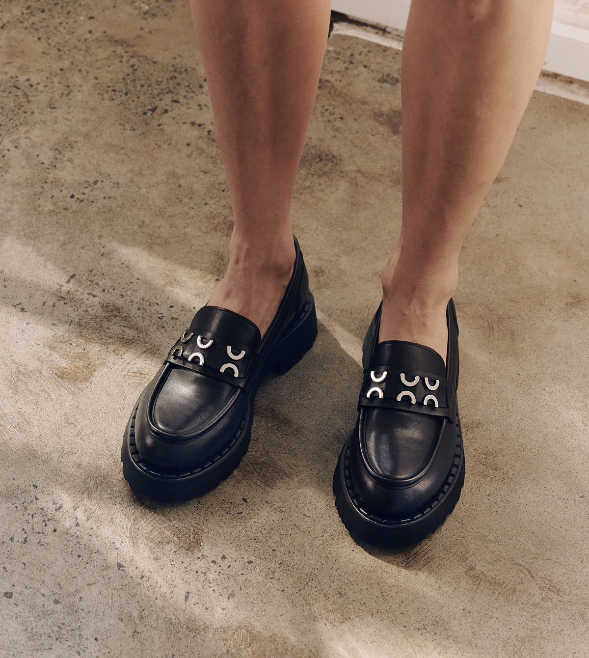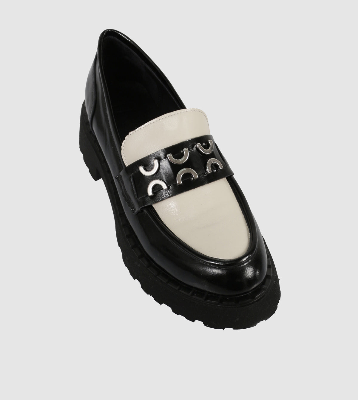The Delaney Casual Loafers by S Sempre Di are a bold reimagination of a timeless classic. Crafted from premium leather, these loafers feature a chunky lug sole for added edge and a modern profile. A metallic chain detail across the vamp adds a touch of polish, while the cushioned insole ensures all-day comfort.