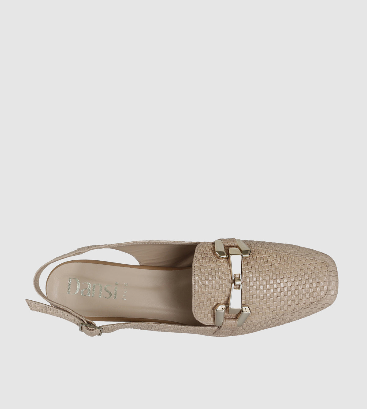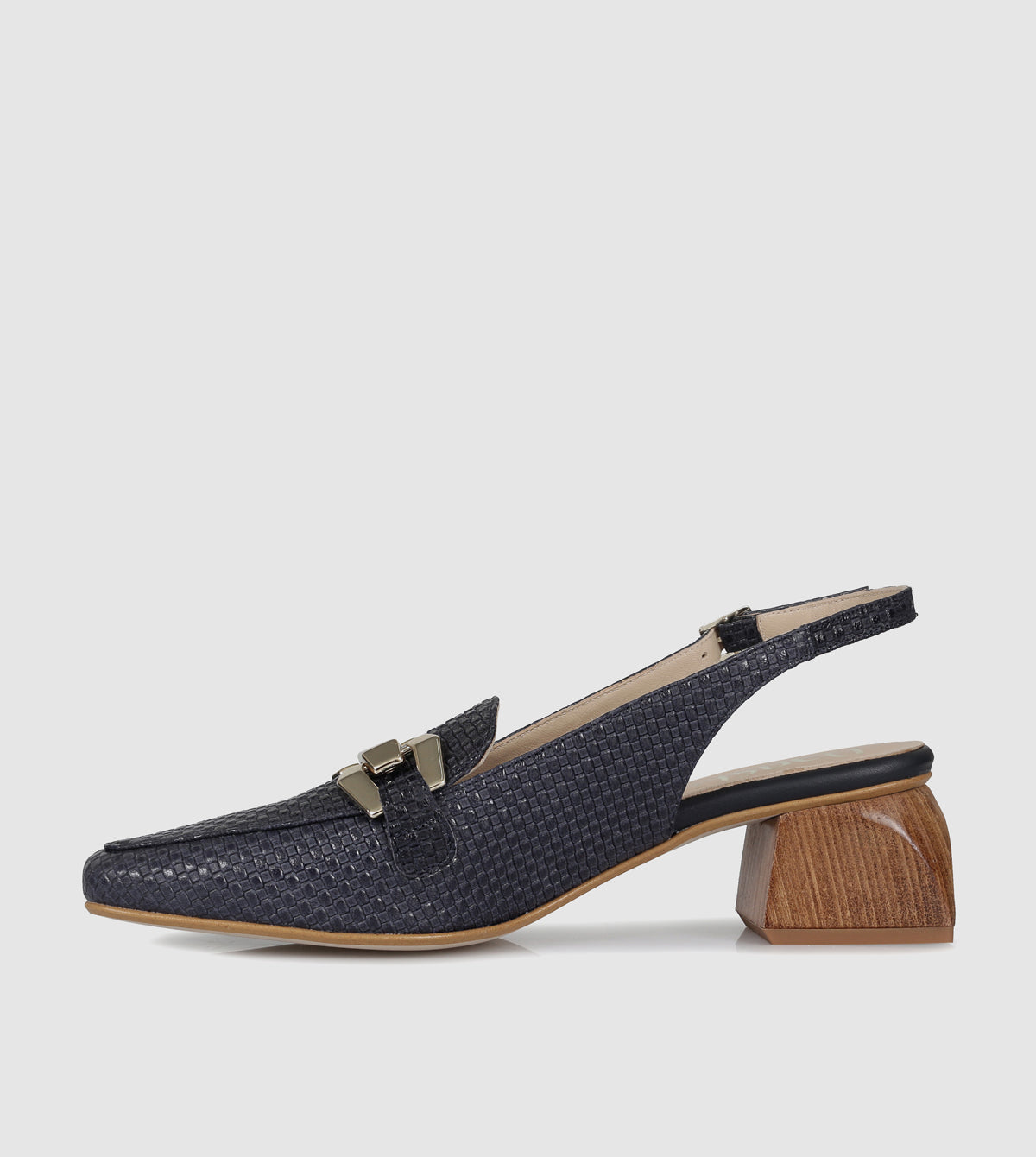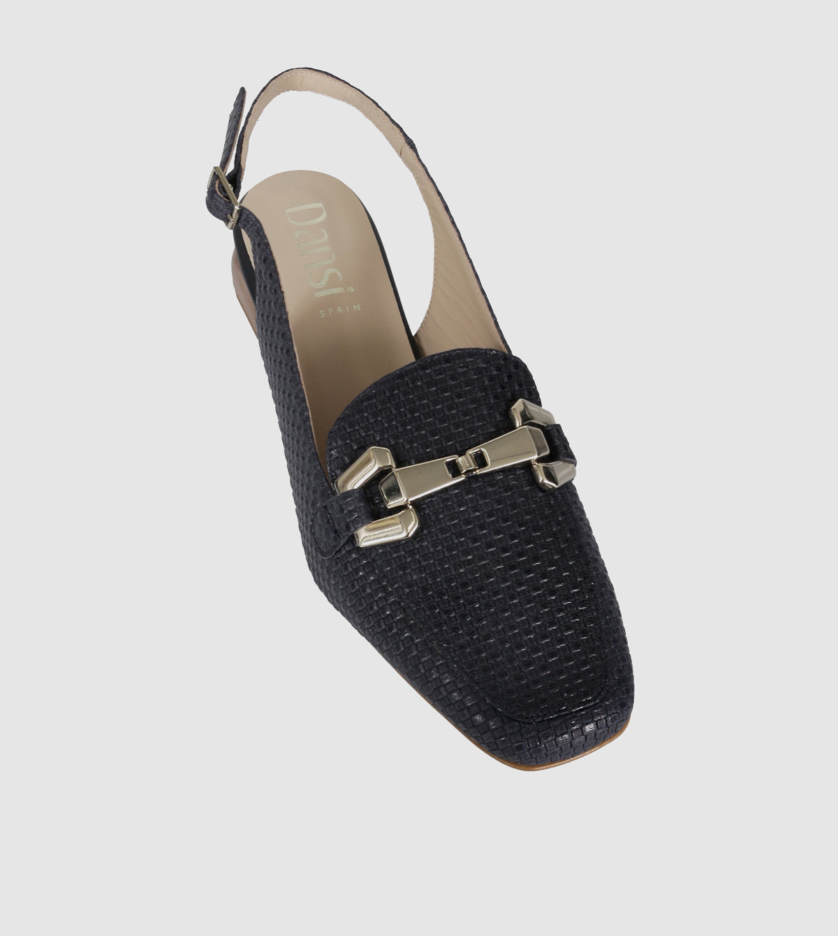 The Karyn Slingbacks by Dansi are crafted for the modern woman who values both style and comfort. Made in Spain, this shoe combines a woven texture with a sophisticated buckle detail, perfect for an elevated, everyday look. The 3cm wooden block heel provides subtle height, balancing elegance with stability. Available in taupe and dark blue, this versatile loafer complements a variety of outfits, adding a refined yet laid-back touch to your wardrobe.