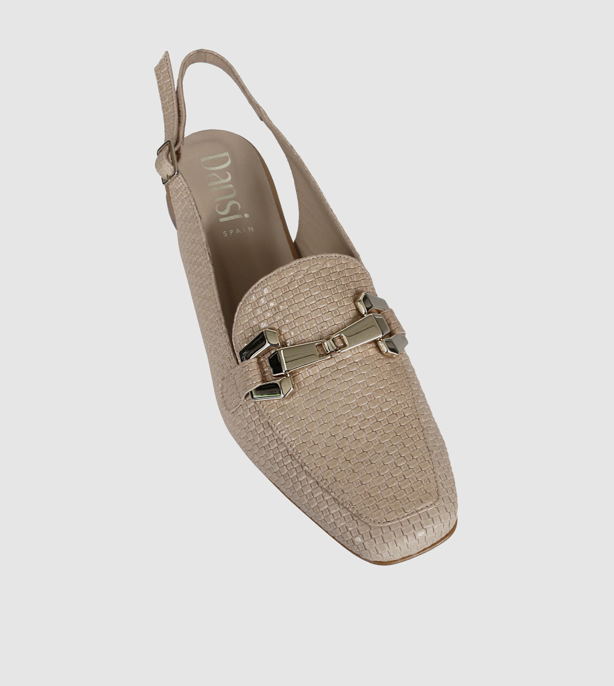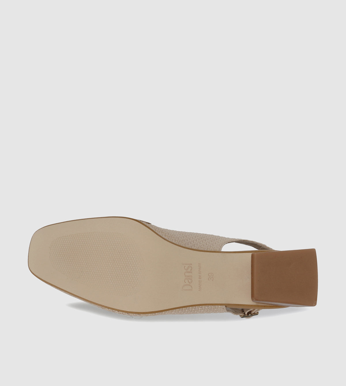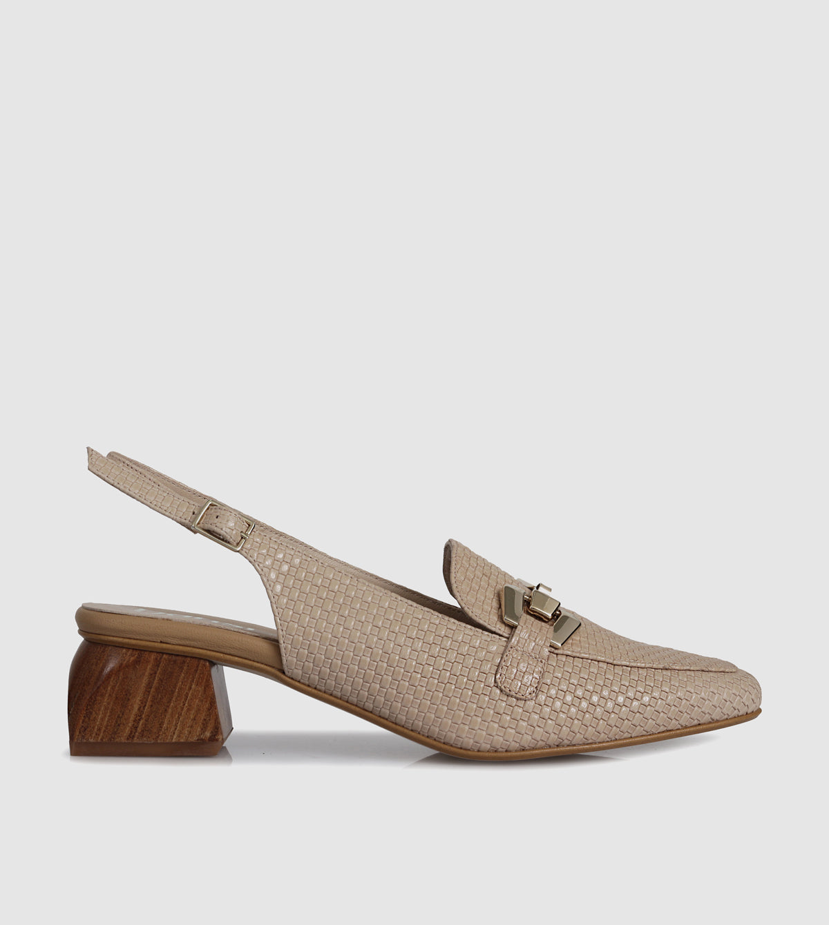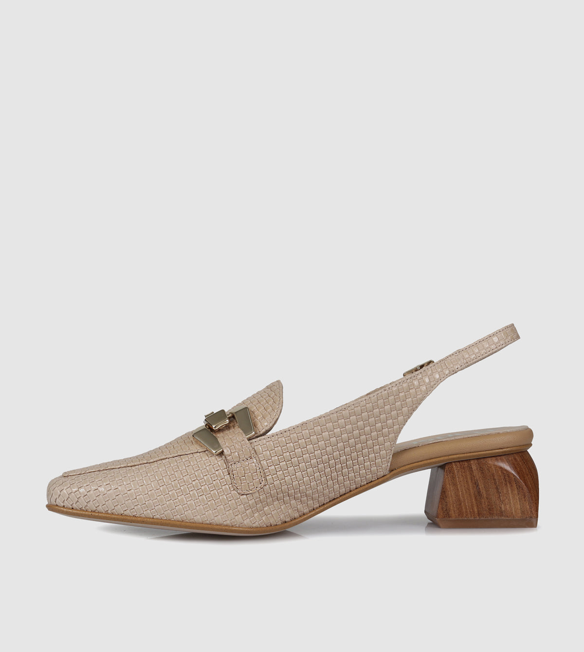 The Karyn Slingbacks by Dansi are crafted for the modern woman who values both style and comfort. Made in Spain, this shoe combines a woven texture with a sophisticated buckle detail, perfect for an elevated, everyday look. The 3cm wooden block heel provides subtle height, balancing elegance with stability. Available in taupe and dark blue, this versatile loafer complements a variety of outfits, adding a refined yet laid-back touch to your wardrobe.