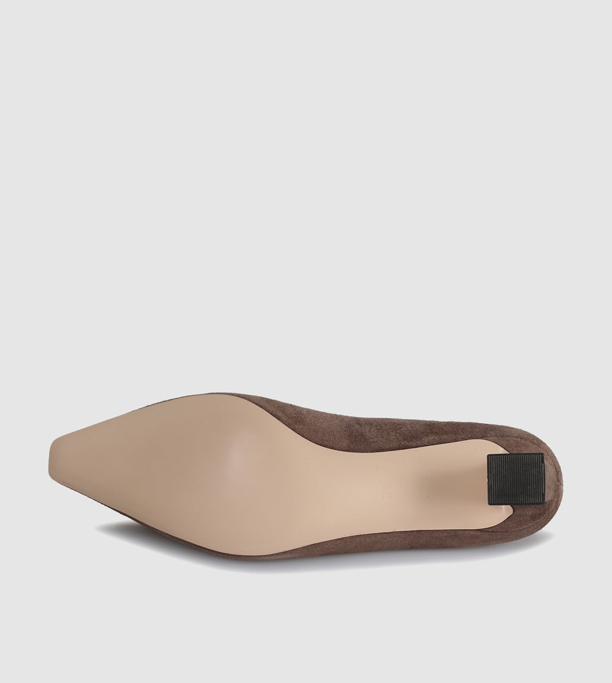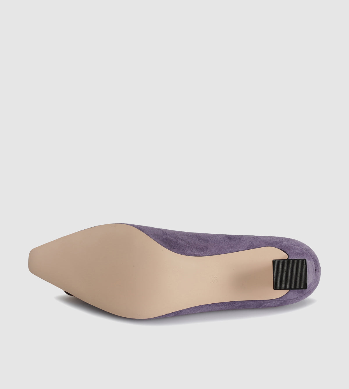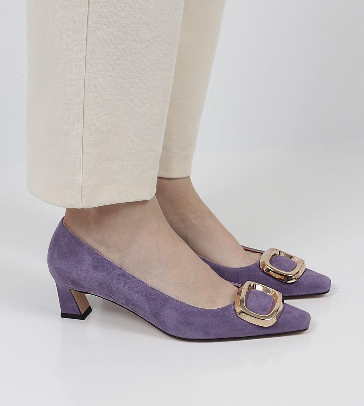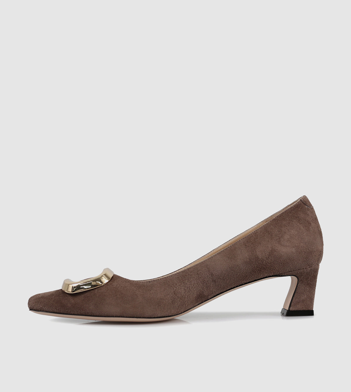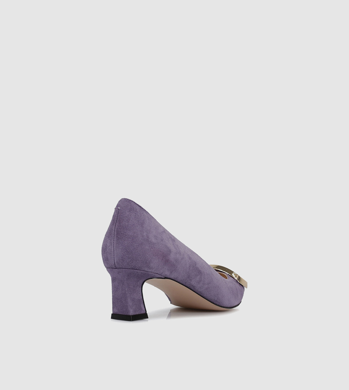 The Kiara Courtshoes by Sempre Di blend feminine charm with refined elegance. Featuring a soft suede finish and a metallic buckle detail on the toe, these mid-heeled court shoes are ideal for both office days and special occasions.
