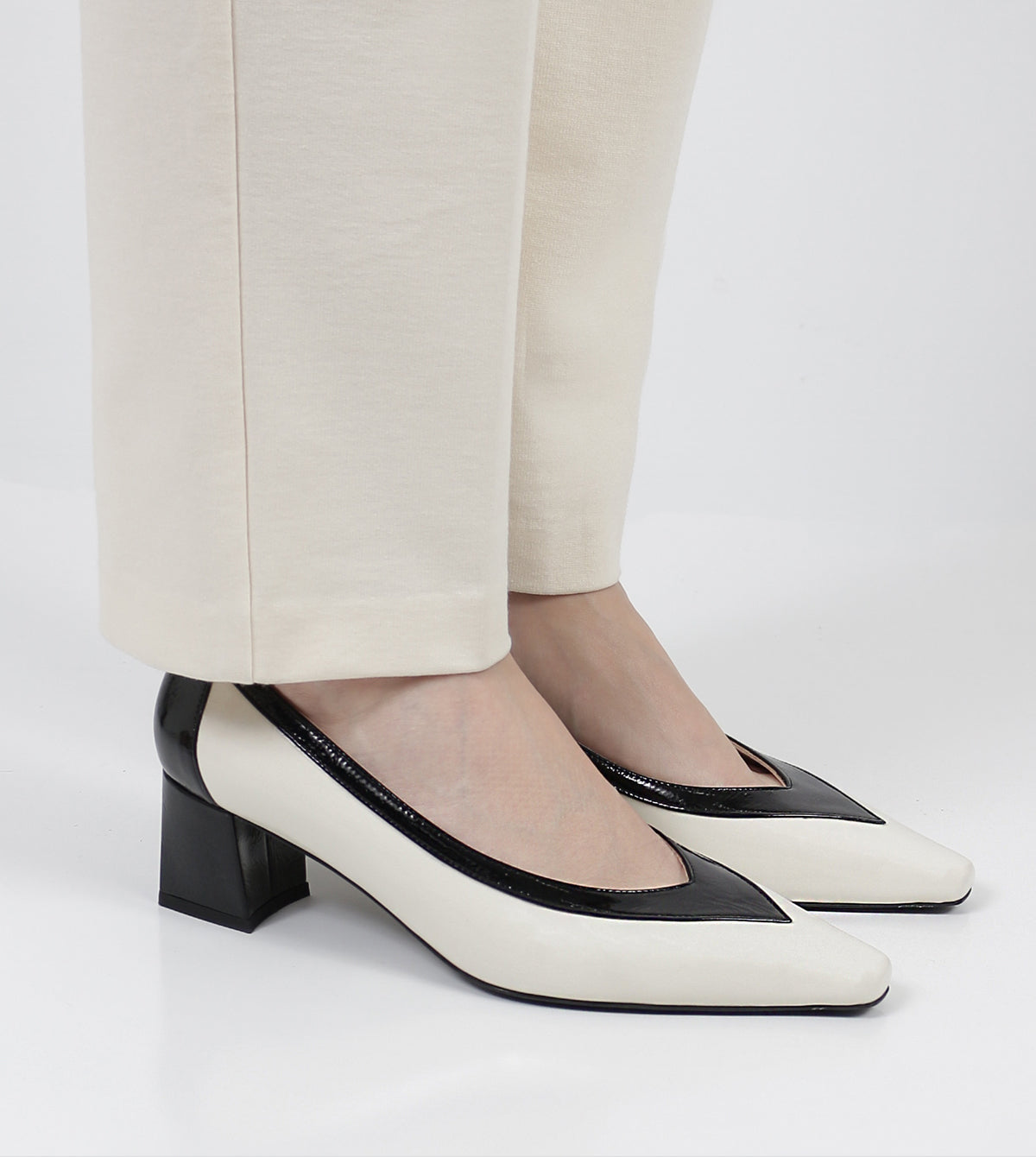 The Brynne Court Shoes by Sempre Di offer a striking blend of elegance and modern style. Crafted from premium leather, these two-tone heels feature a sleek pointed toe and a sturdy block heel for a refined yet comfortable look. The contrasting color design adds a bold statement, making them the perfect choice for both professional and evening wear.