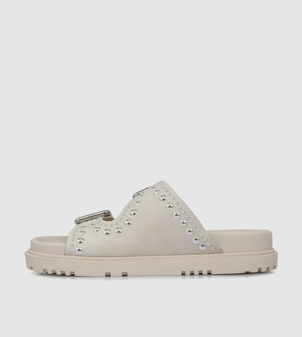 – Neutral leather upper with studded detailing