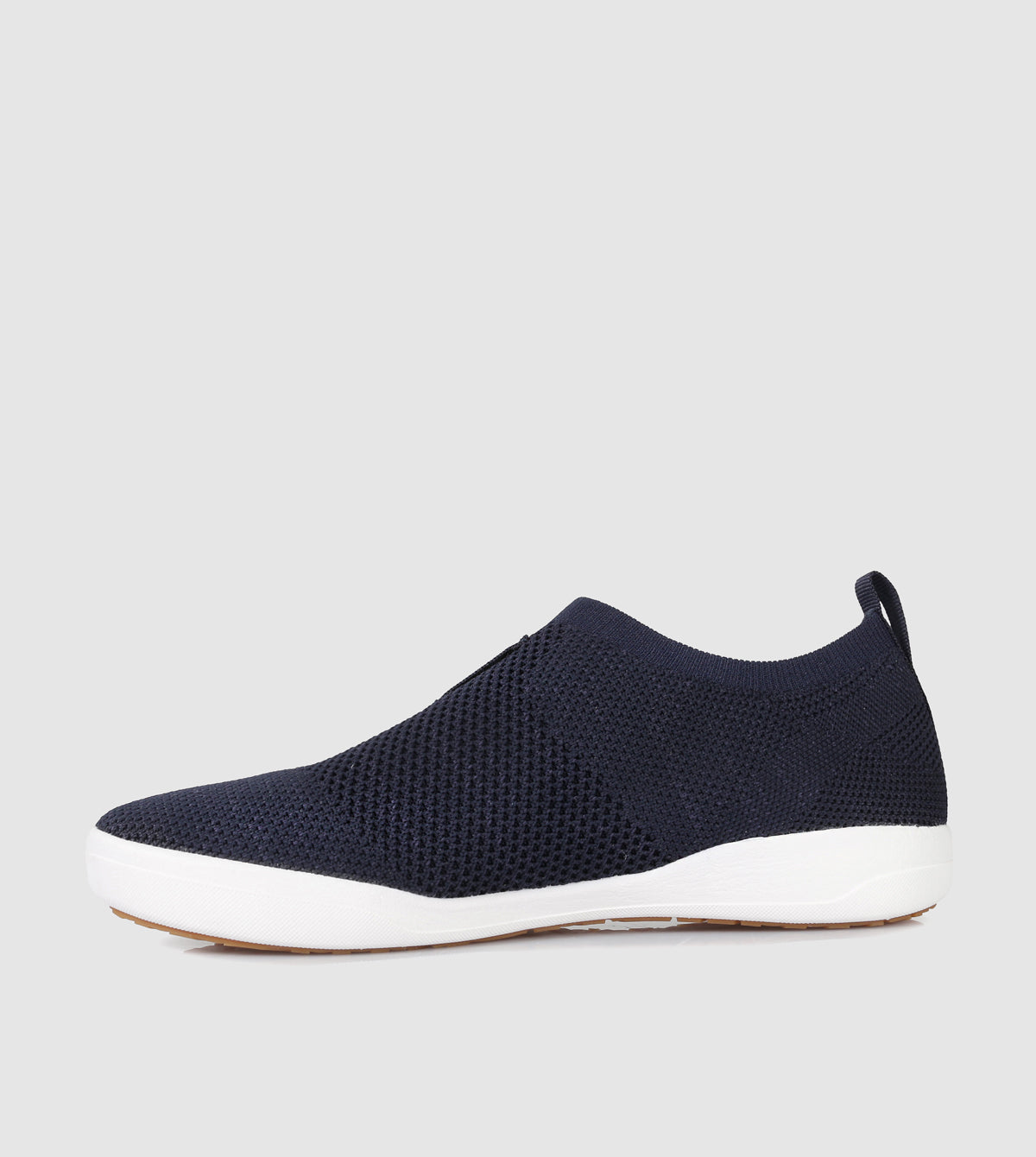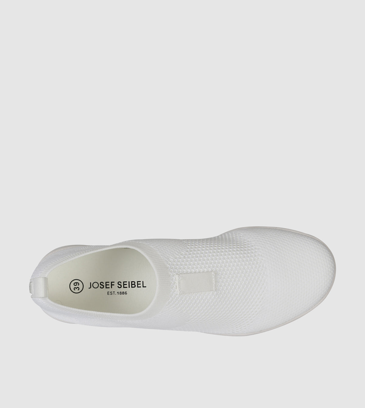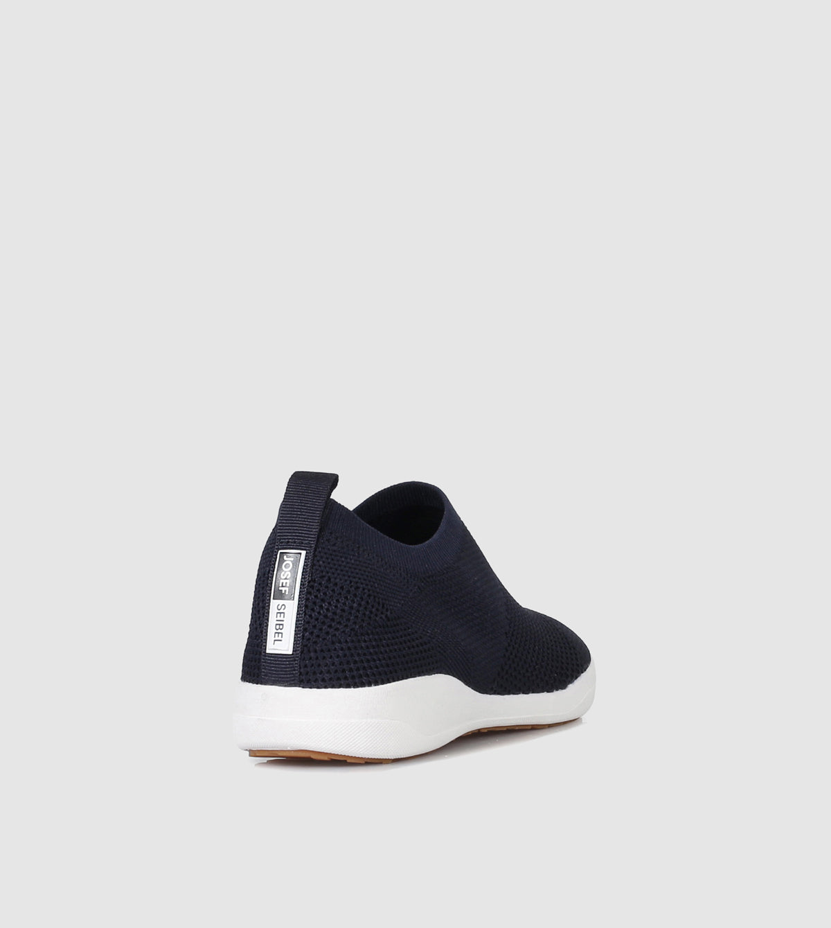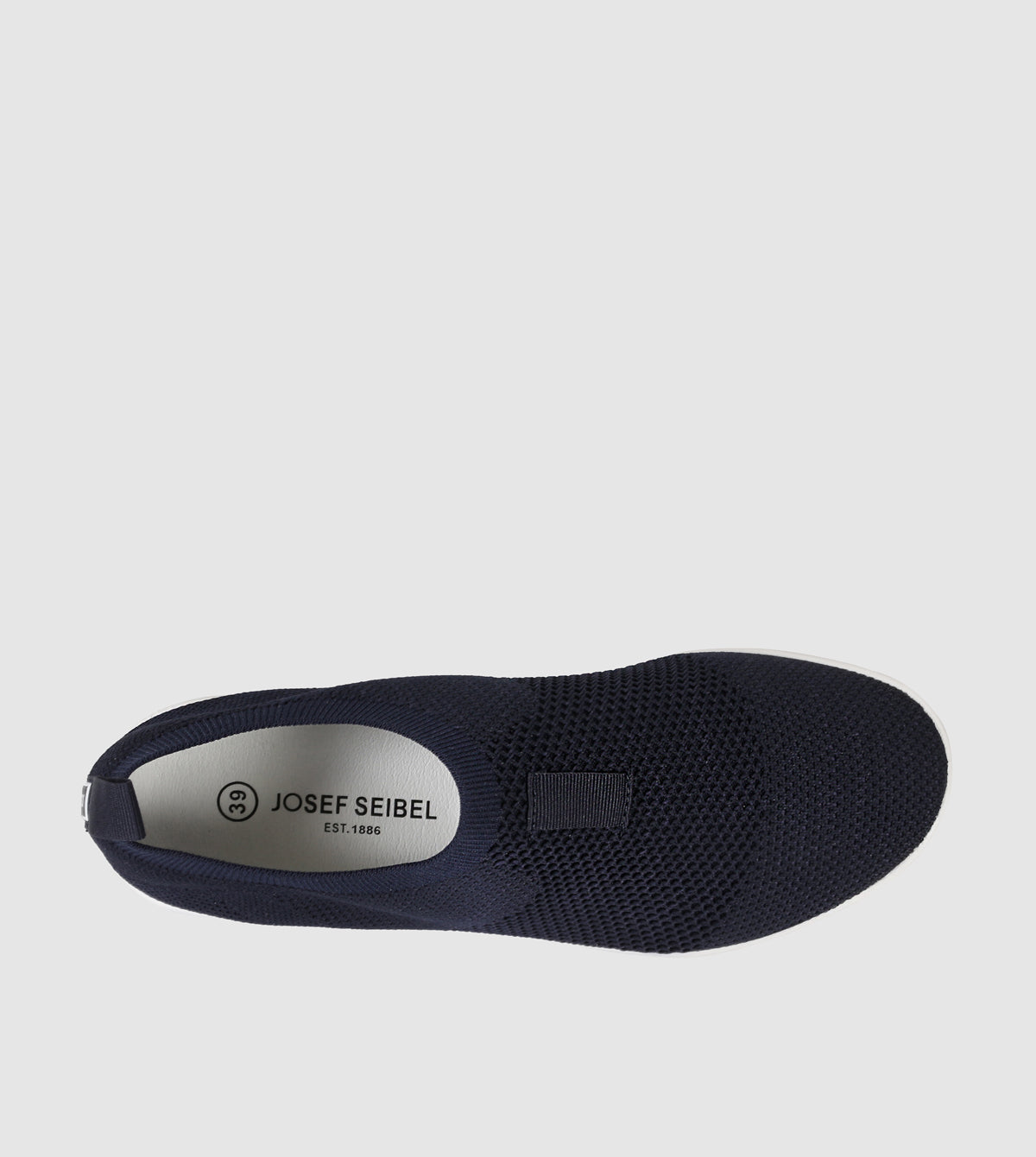 The Sina sneaker by Josef Seibel combines sleek design with comfort-focused features. Crafted in a breathable mesh material, this slip-on sneaker is lightweight and flexible, perfect for all-day wear. Available in blue, black, or white, it features a contrasting white sole for modern style and reliable grip. The pull tab at the heel allows for easy on and off, making the sneaker an ideal choice for both casual outings and everyday wear.