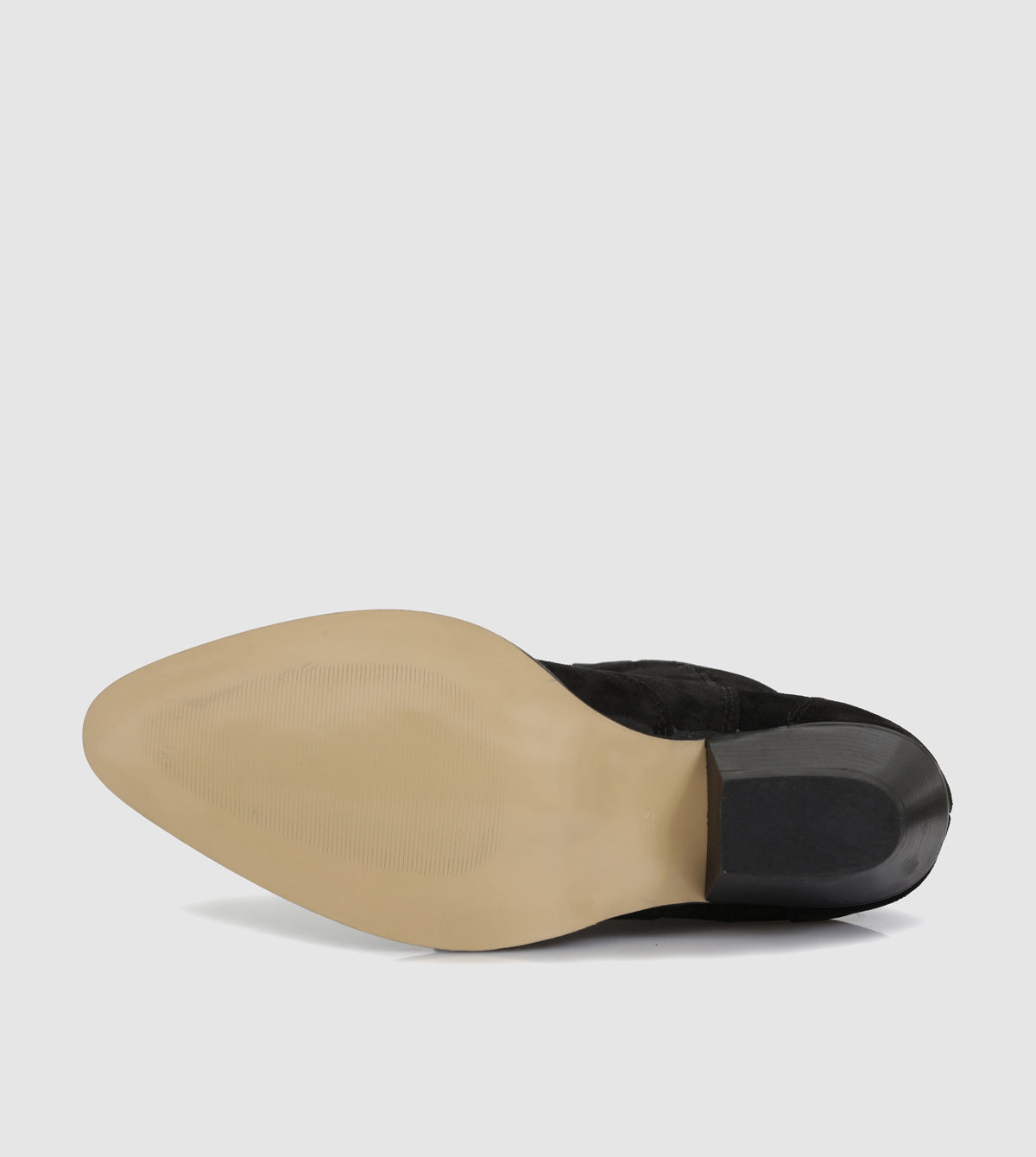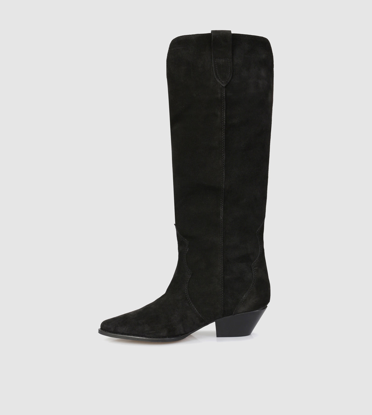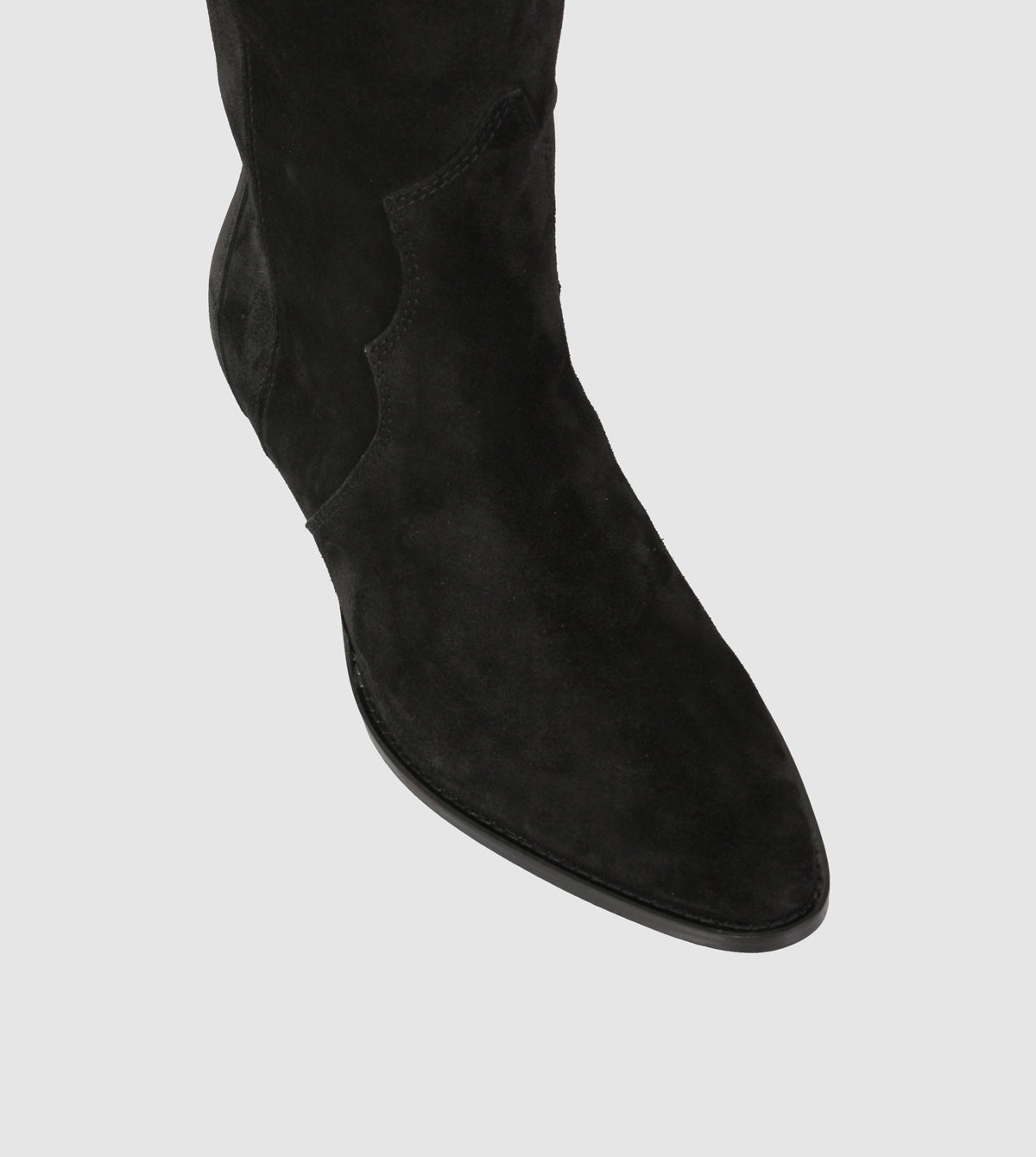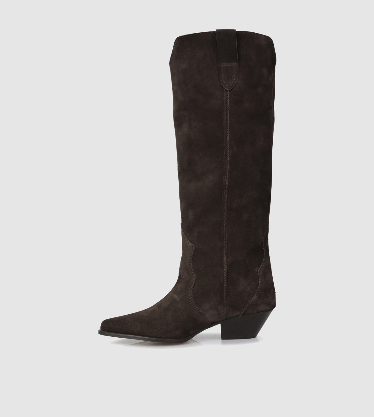 Step out in style with the Tully Knee-high Boots by Sempre Di. These western-inspired boots feature a slouchy shaft and Cuban heel for a chic look. The pointed toe and pull tabs add functionality and effortless style. Perfect for any outfit, these boots are a must-have for any fashion-forward wardrobe.