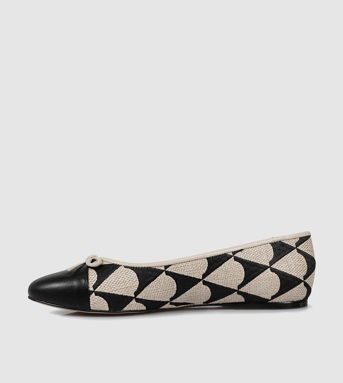 The Jodi Ballerinas by Sempre Di bring a playful update to the classic ballet flat. Featuring a black and cream geometric textile design with a smooth leather toe cap, this style balances everyday comfort with distinctive detail. A dainty bow at the front adds a feminine touch, while the slim sole keeps the profile sleek and versatile for work, travel, or weekend wear. Available in black or cream.