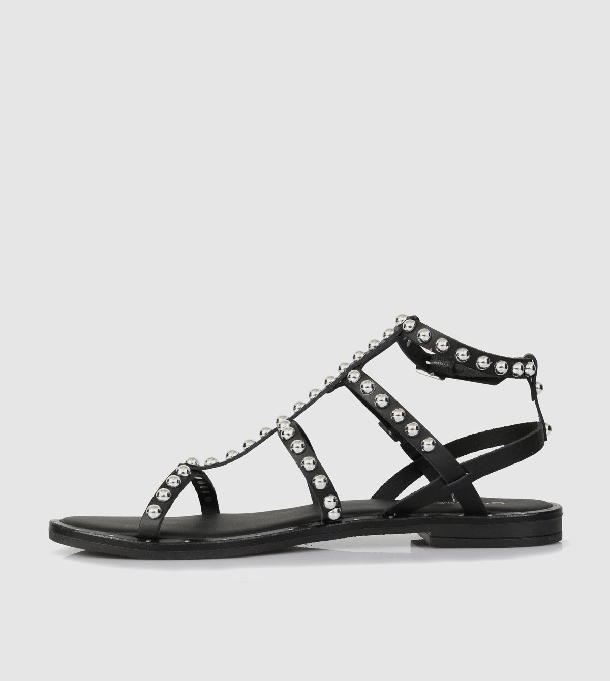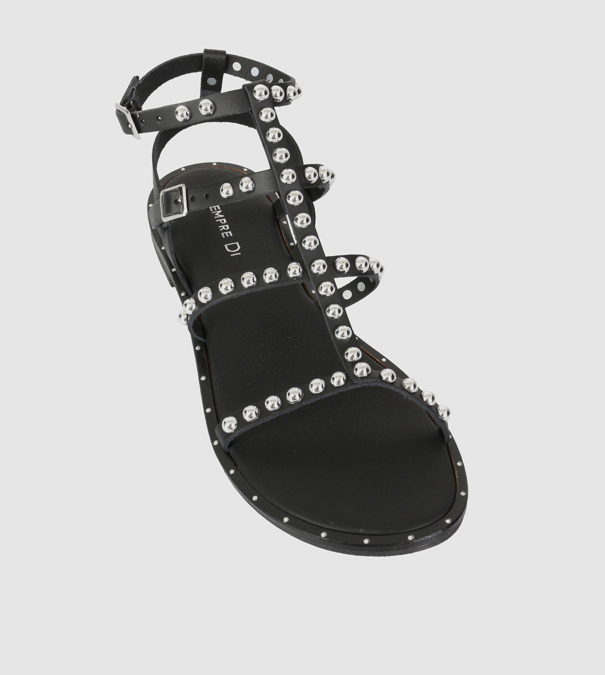 Experience the ultimate coolness with the Serein Flat Sandals by Sempre Di. Made in Italy using veg tan leather, its caged design and metal studs add character. The padded insole delivers instant comfort for long summer days and nights.