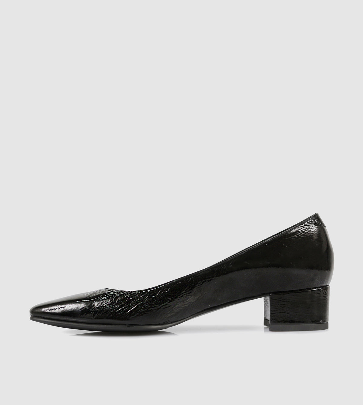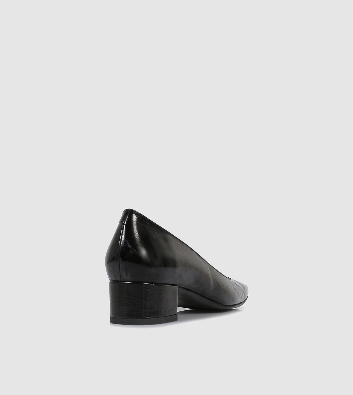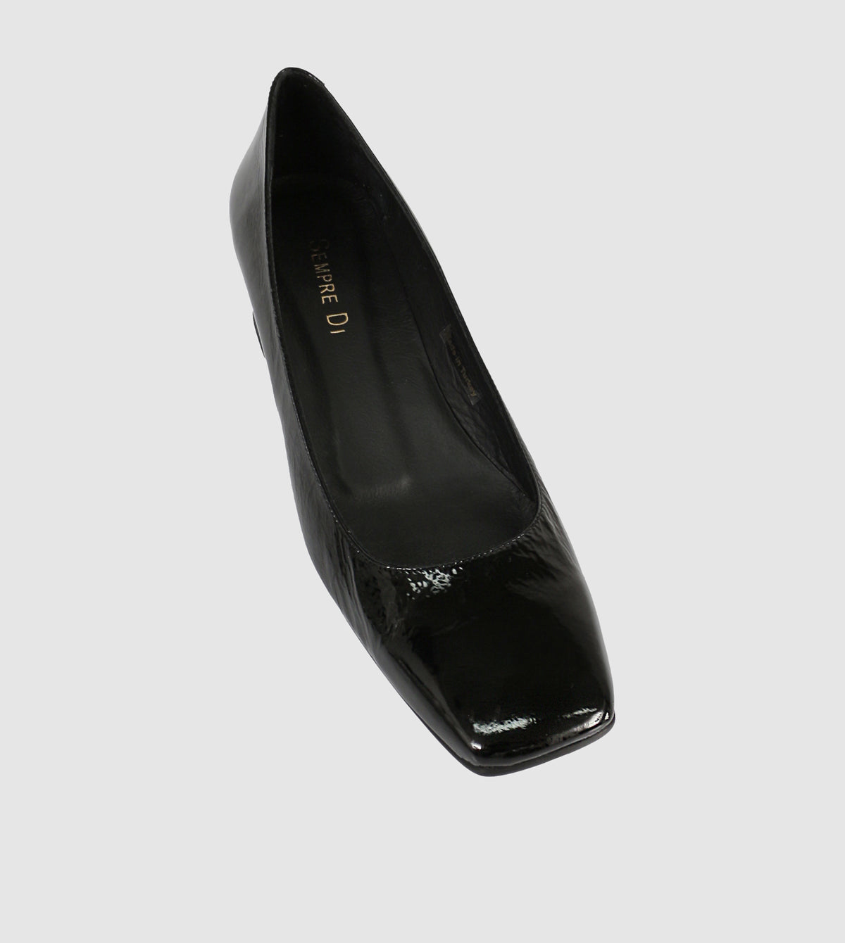 The Daija Court Shoes by Sempre Di combine classic elegance with everyday comfort. Crafted from high-shine patent leather, these shoes feature a softly pointed toe and a low block heel for a timeless silhouette. Subtle stitching details enhance the refined design, making them perfect for workwear or special occasions.