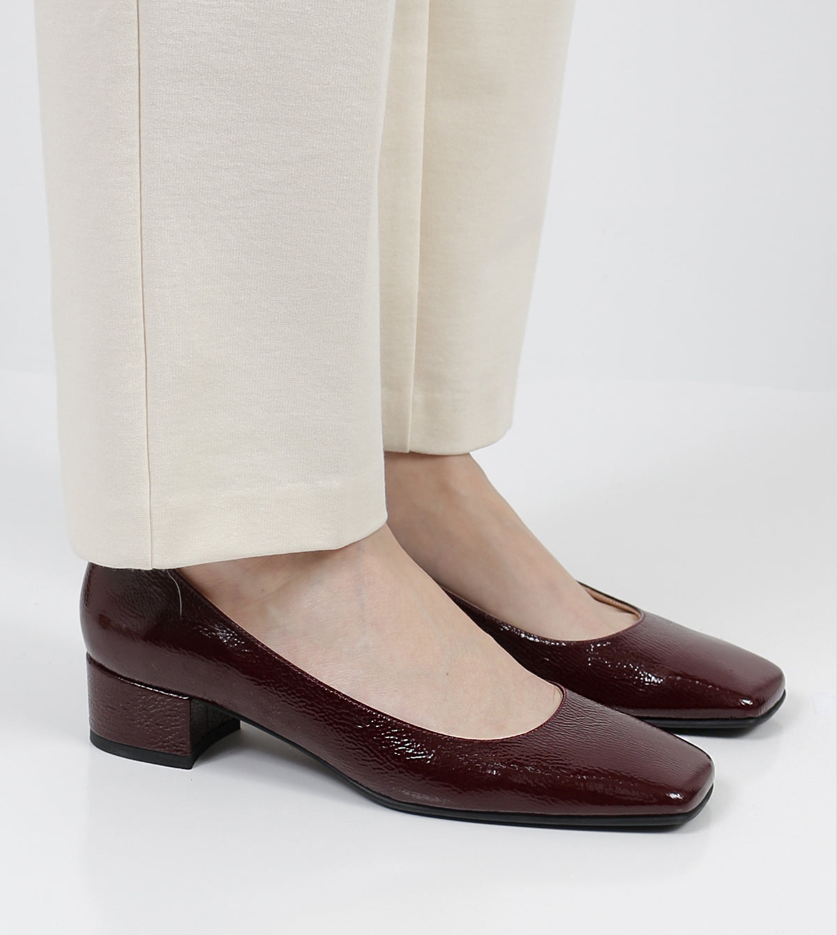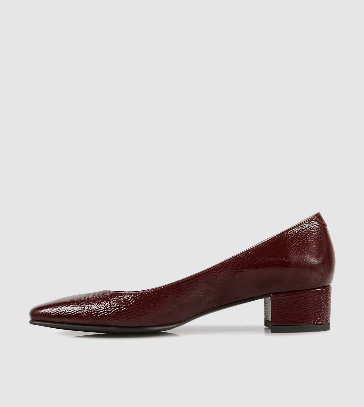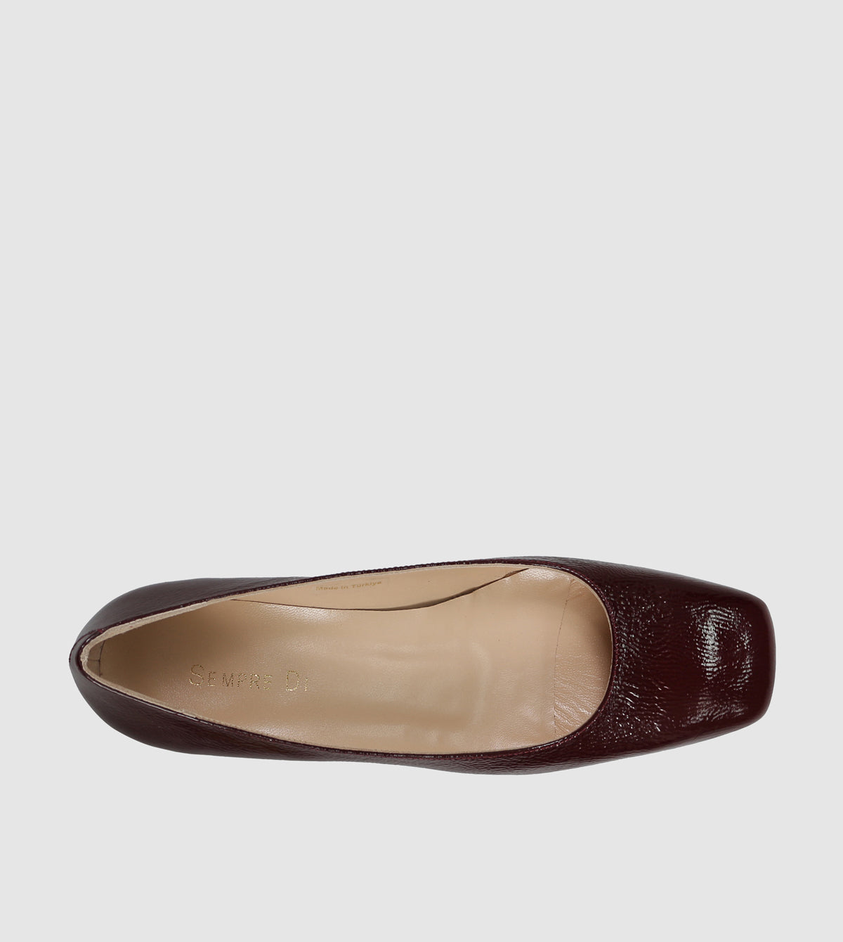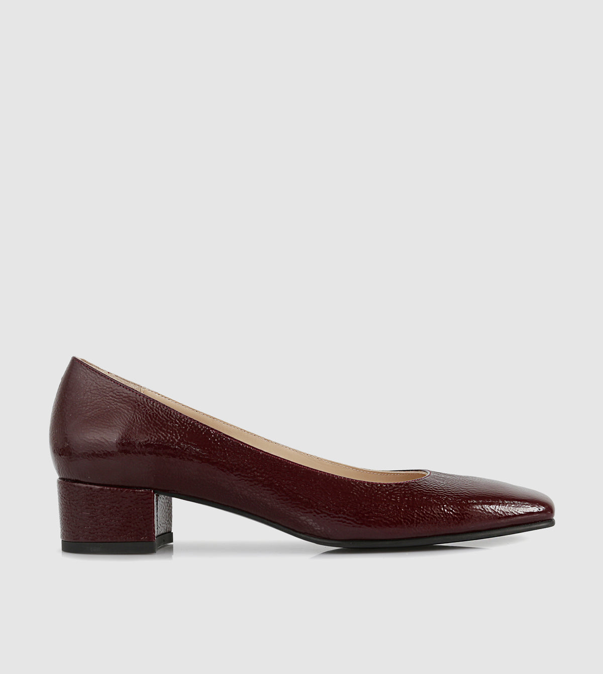 The Daija Court Shoes by Sempre Di combine classic elegance with everyday comfort. Crafted from high-shine patent leather, these shoes feature a softly pointed toe and a low block heel for a timeless silhouette. Subtle stitching details enhance the refined design, making them perfect for workwear or special occasions.