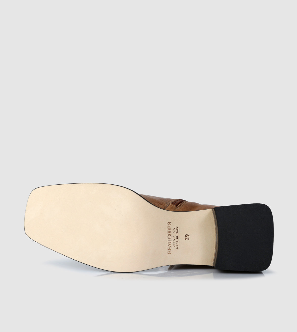 Sleek, sophisticated and comfortable, the Abanka Ankle boot by Beau Coops is elegance reinvented. The eye-catching Square toe and the Cube block heel truly enhance the beauty of the vegetable-tanned leather upper in caramel brown and Black tones. Paired with a leather outsole and expertly crafted in Italy, these boots will have you walking in true style with your best jeans, smart trousers or even cool office attire, no matter what the day has in store for you.