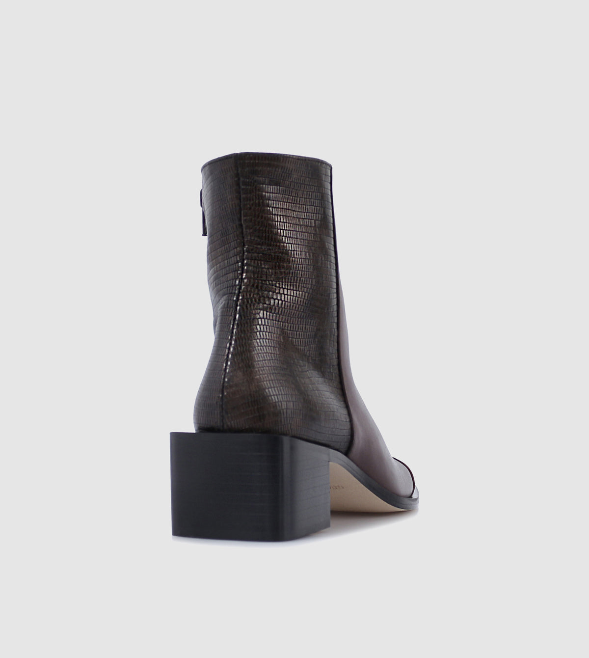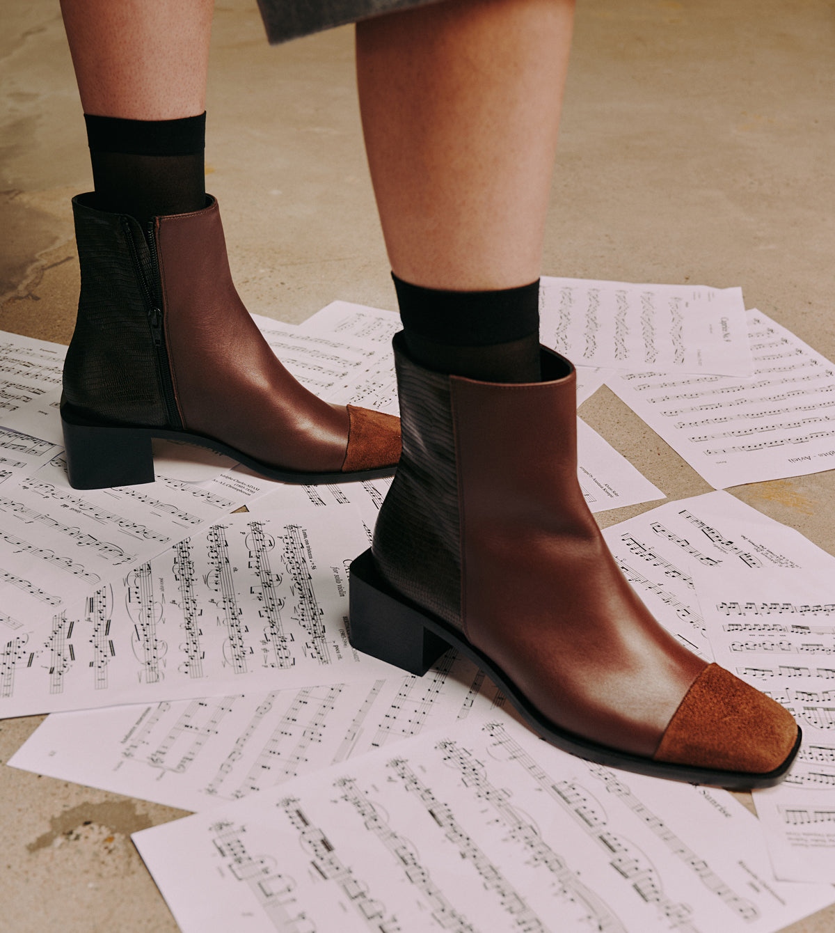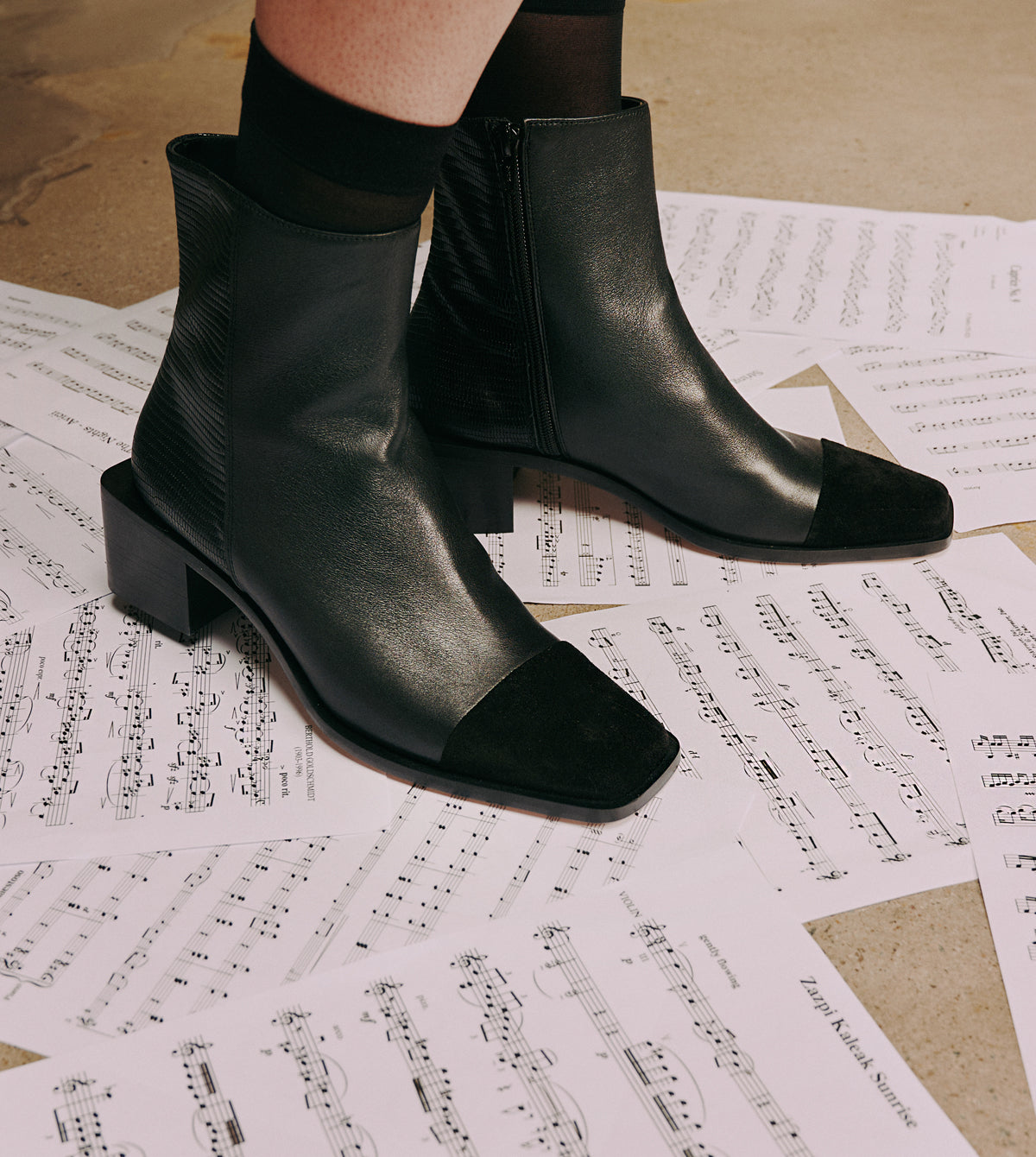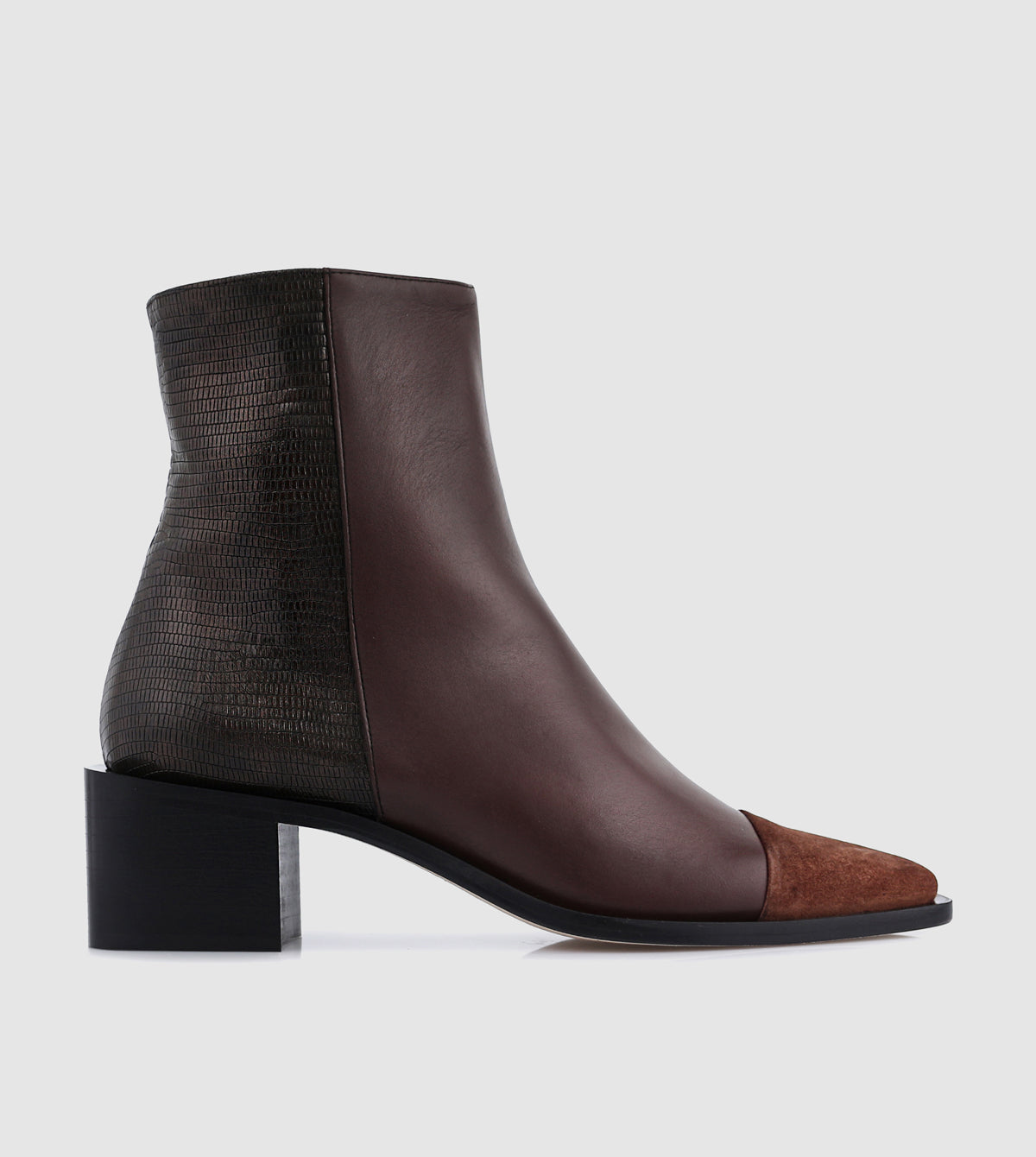 The Abia Ankle Boots by Beau Coops are a sophisticated blend of modern elegance and timeless craftsmanship. Made in Italy, these boots feature a sleek leather upper with a distinctive contrast suede toe cap, adding a contemporary twist to a classic silhouette. The structured square toe and block heel create a bold yet refined look, making them the perfect addition to any wardrobe. Designed for style and comfort, these boots are ideal for pairing with tailored trousers, midi skirts, or your favourite denim for a chic and polished ensemble.