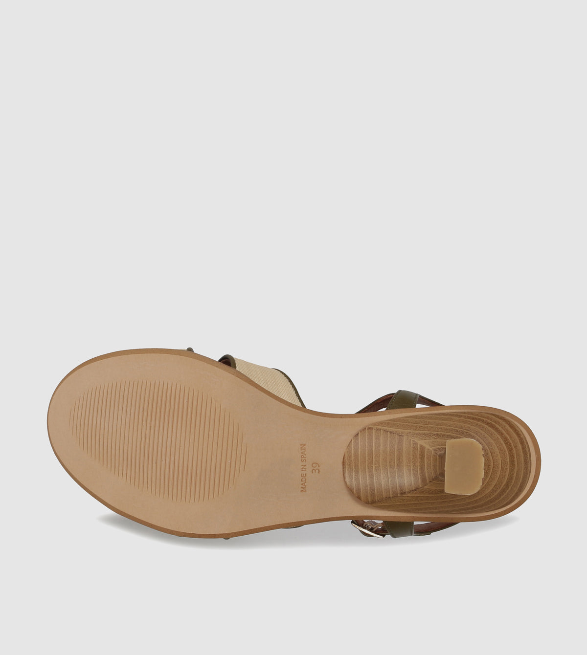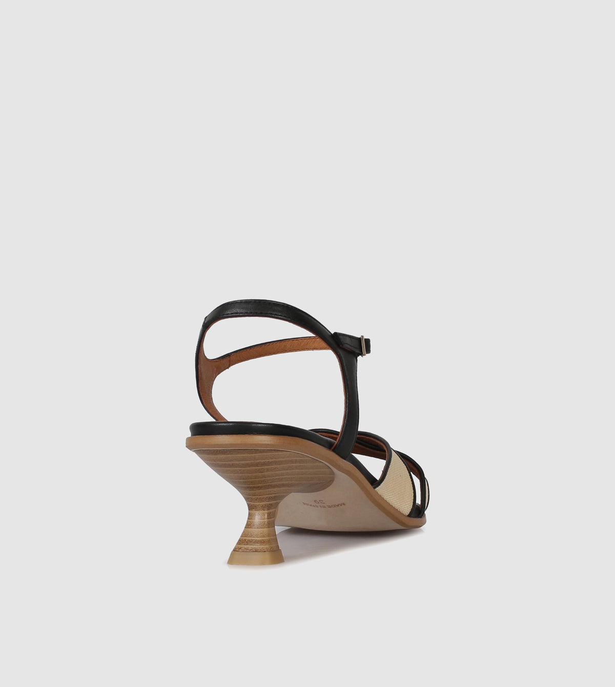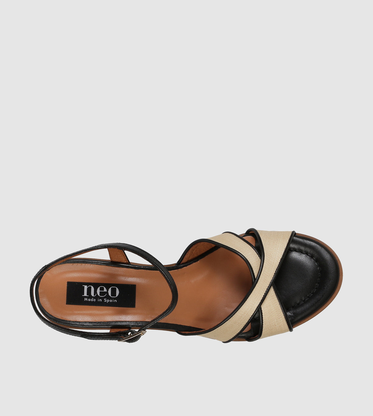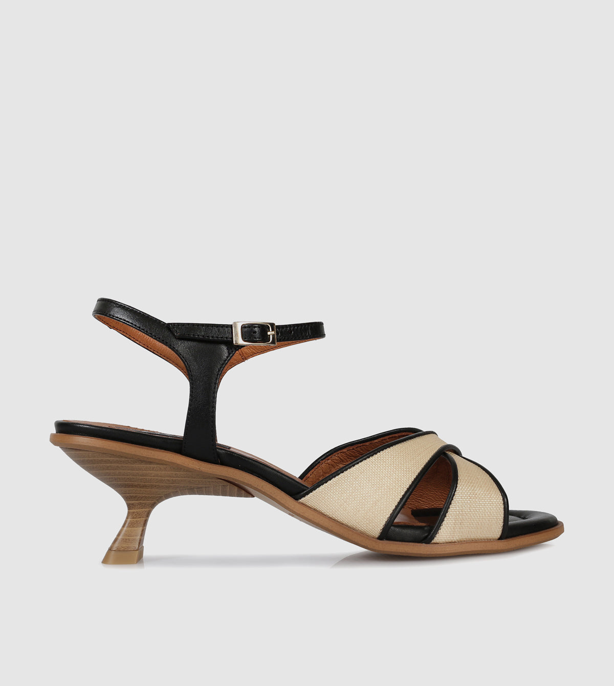 Meet the Kamry Heeled Sandals by Neo, featuring a stylish kitten heel, blending comfort with elegance. Available with either black or khaki accents, the design combines leather with beige cross-over straps, offering a refined, earthy aesthetic. With an adjustable ankle strap for a secure fit, this versatile sandal is perfect for day-to-night wear, adding a touch of sophistication to both casual and dressy outfits.