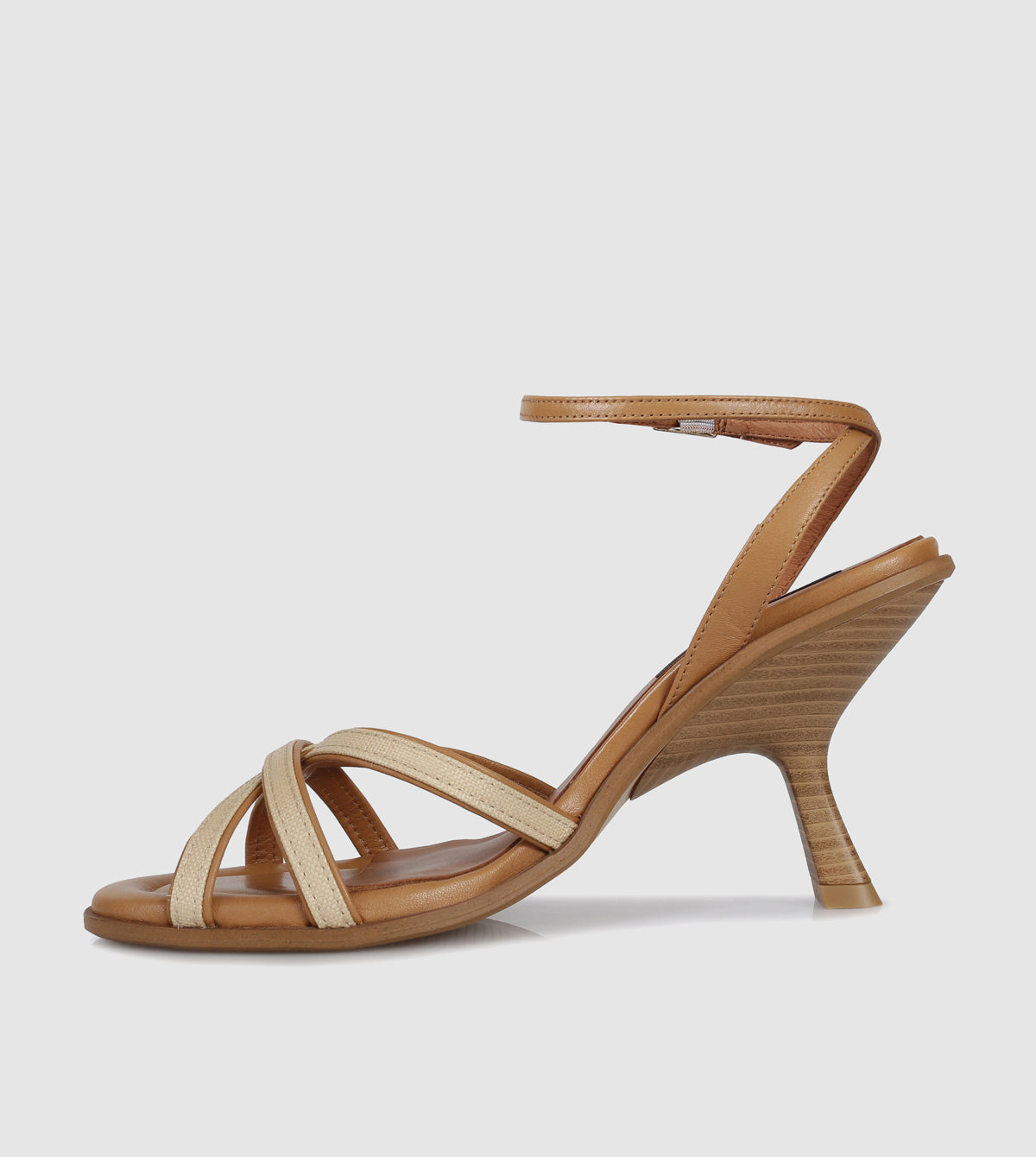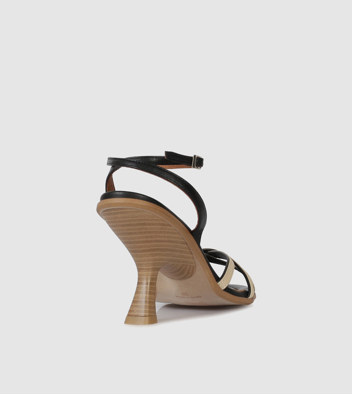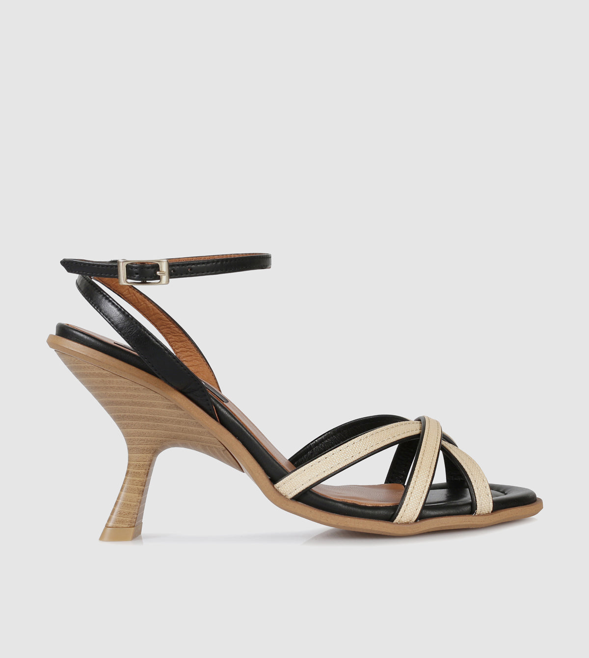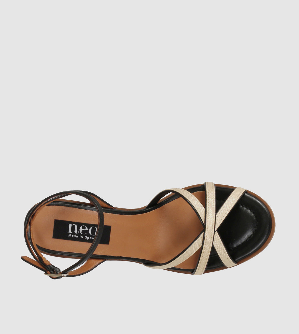 Meet the Mirren Heeled sandals by Neo, available in black or tan, features a chic kitten heel and a strappy design that wraps gracefully around the foot. Perfect for elevating summer outfits, this versatile sandal is ideal for both daytime and evening occasions, offering a refined touch to any look.