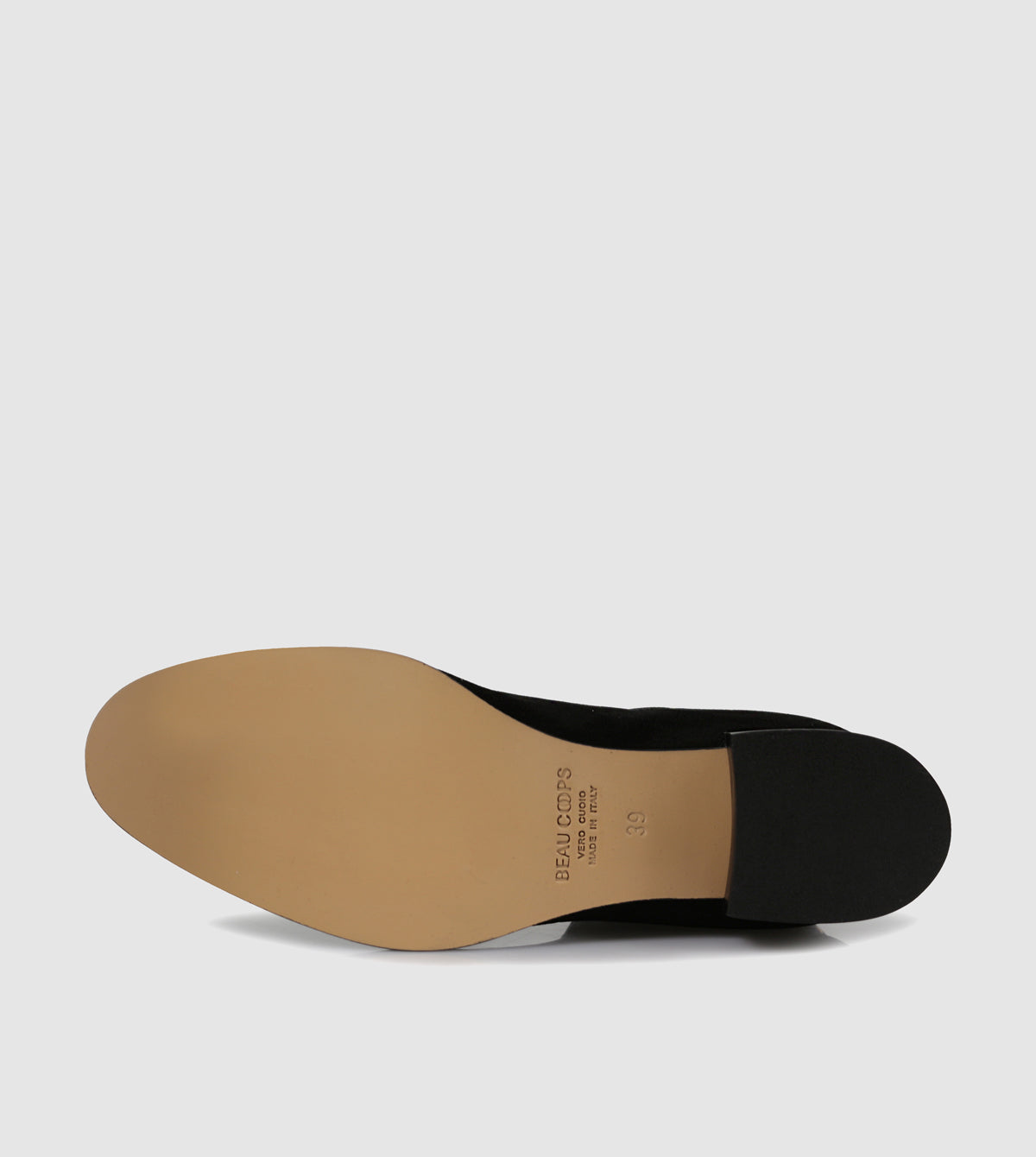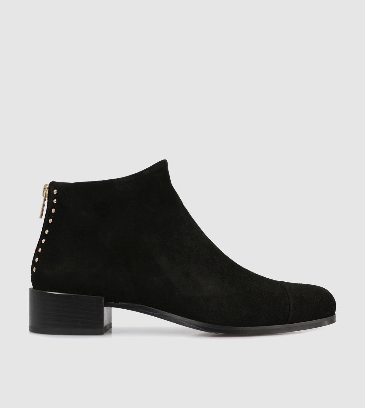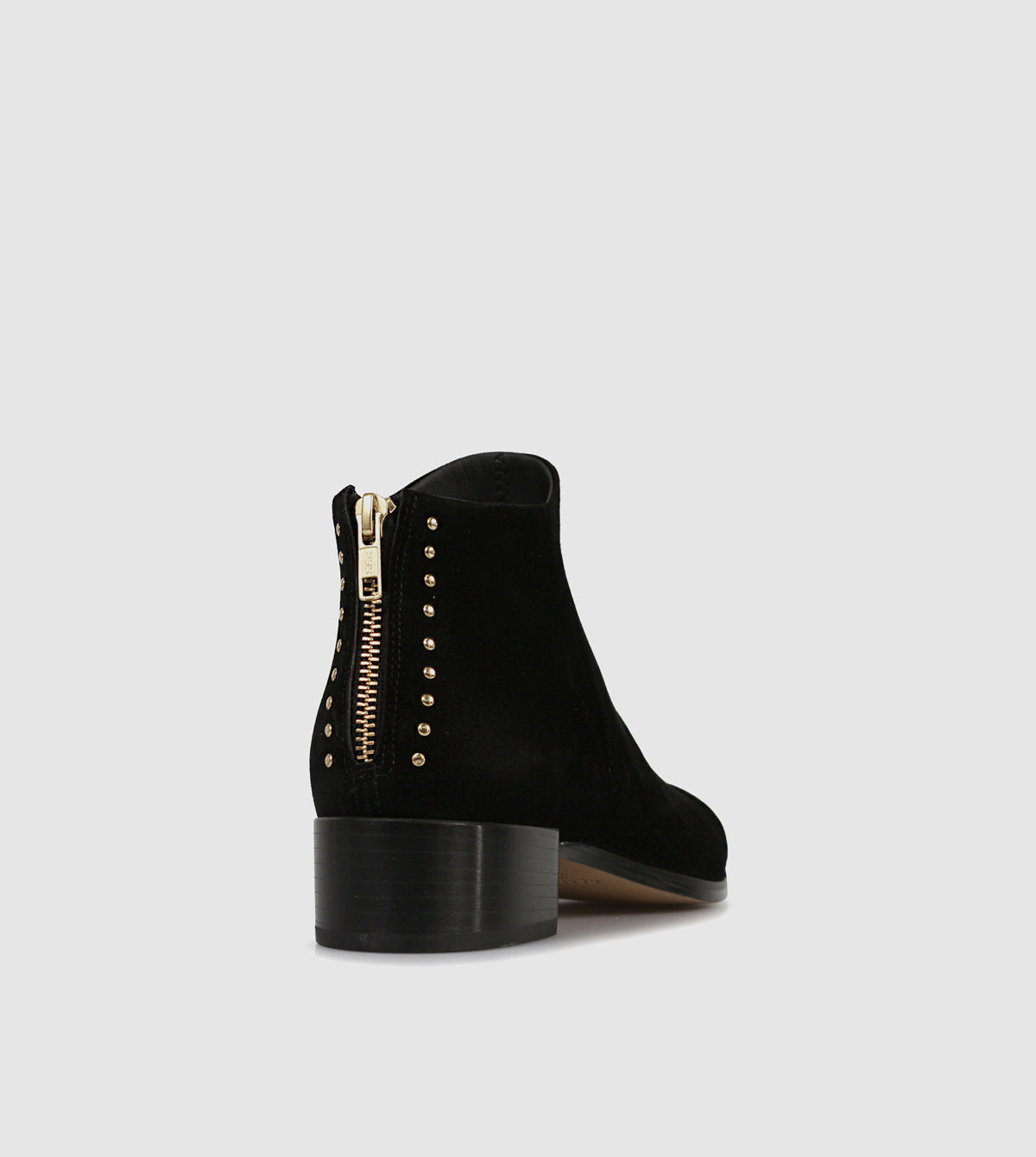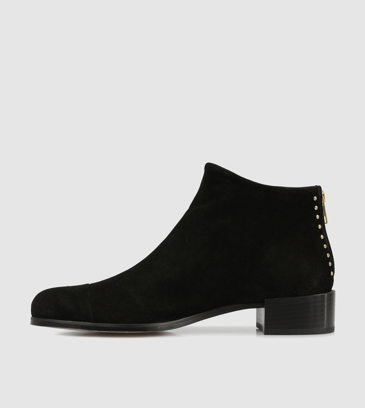 The Beau5-b_loss Ankle Boots by Beau Coops offer understated elegance with a contemporary twist. Crafted from premium suede, these boots feature subtle gold stud detailing at the back and a clean silhouette, making them a versatile choice for everyday chic.