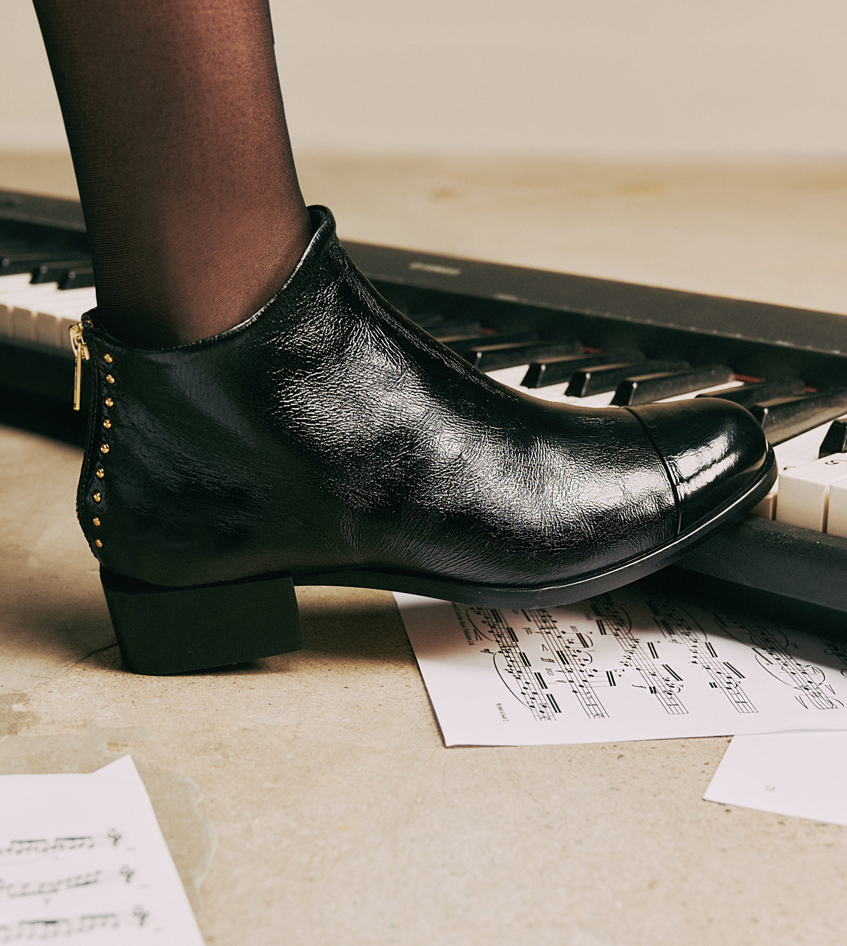 An everyday favourite, the new Beau5 Square Ankle Boots by Beau Coops are crafted in Italy from premium calf leather and set on a square leather stacked heel. Perfect for long days on our feet, they have a chic round toe and accented with gold studs and back zip for optimum comfort. Wear them every day to accentuate a pared back, relaxed ensemble.