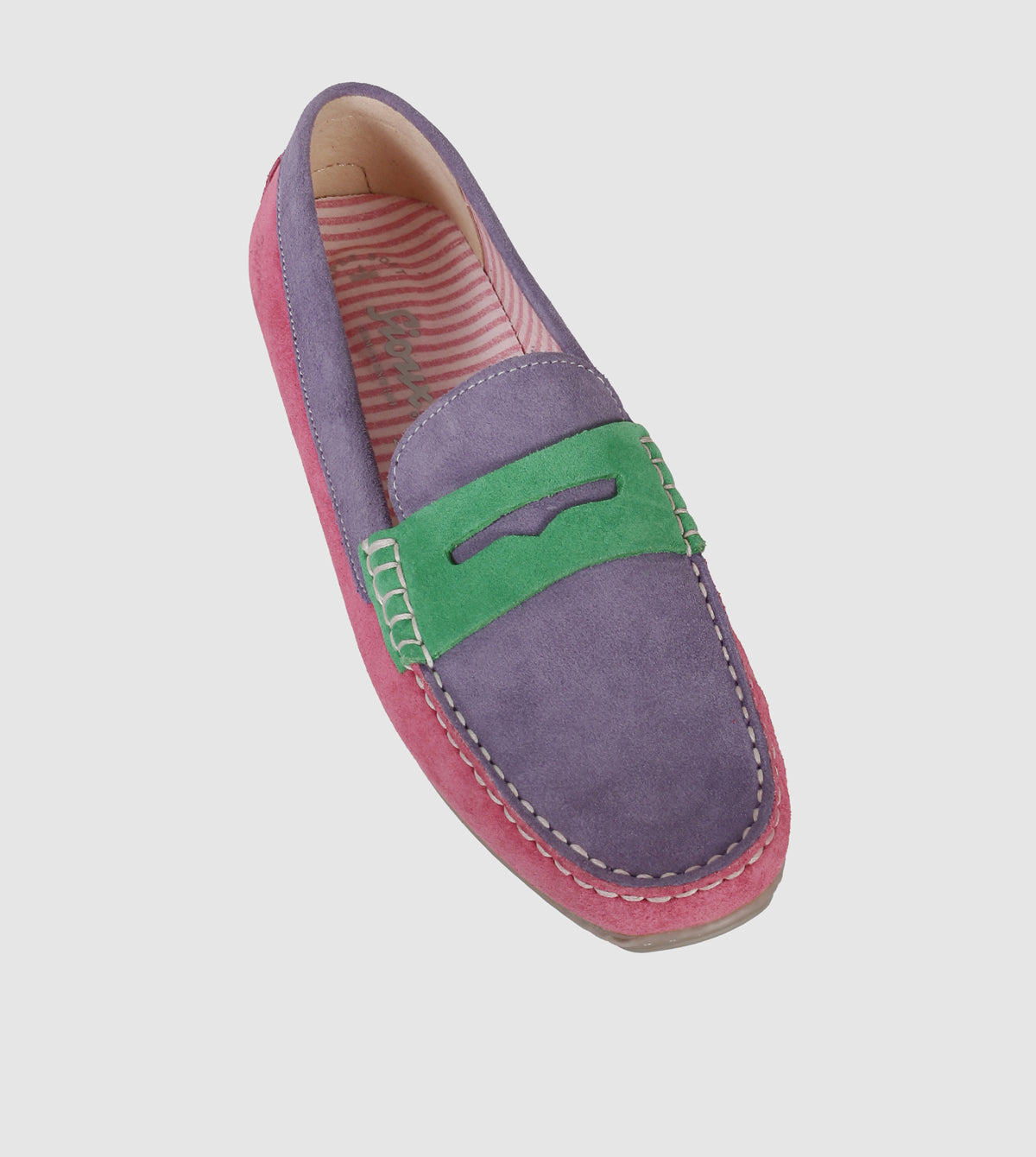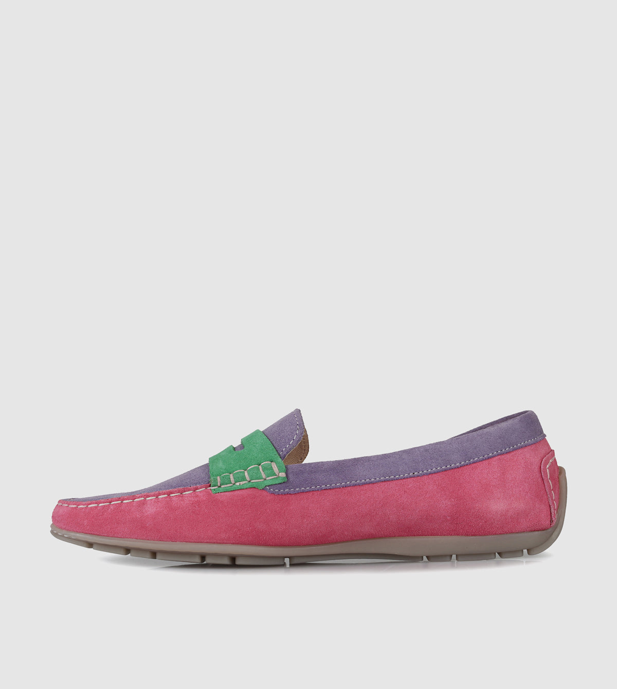 Handcrafted in Germany, the Carmona driving shoes by Sioux combine vibrant colors with premium craftsmanship. Made from soft calfskin suede sourced from the Oehler tannery, located just 20km from Sioux's headquarters in Marbach, Baden-Württemberg, each pair features a classic penny-loafer design with modern color-blocking accents. The hydrophobic suede ensures long-lasting water repellency without additional waterproofing.