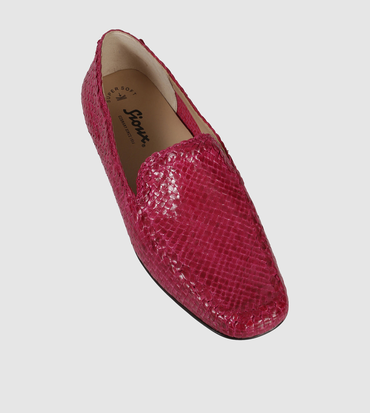 The Cordera Casual Loafers by Sioux, crafted from braided leather, is an ideal choice for warm summer evenings with friends. Designed with a 2cm heel, it provides all-day comfort that seamlessly transitions into nighttime wear. Featuring a summery woven texture and available in classic black or vibrant pink, Cordera offers a stylish yet versatile option for contemporary women. For the best fit, we recommend going half a size down from your usual size. Perfect for those seeking a refined moccasin with a modern touch.