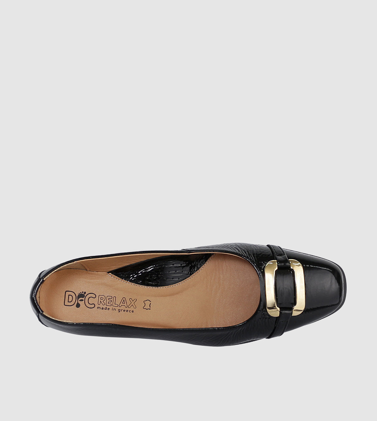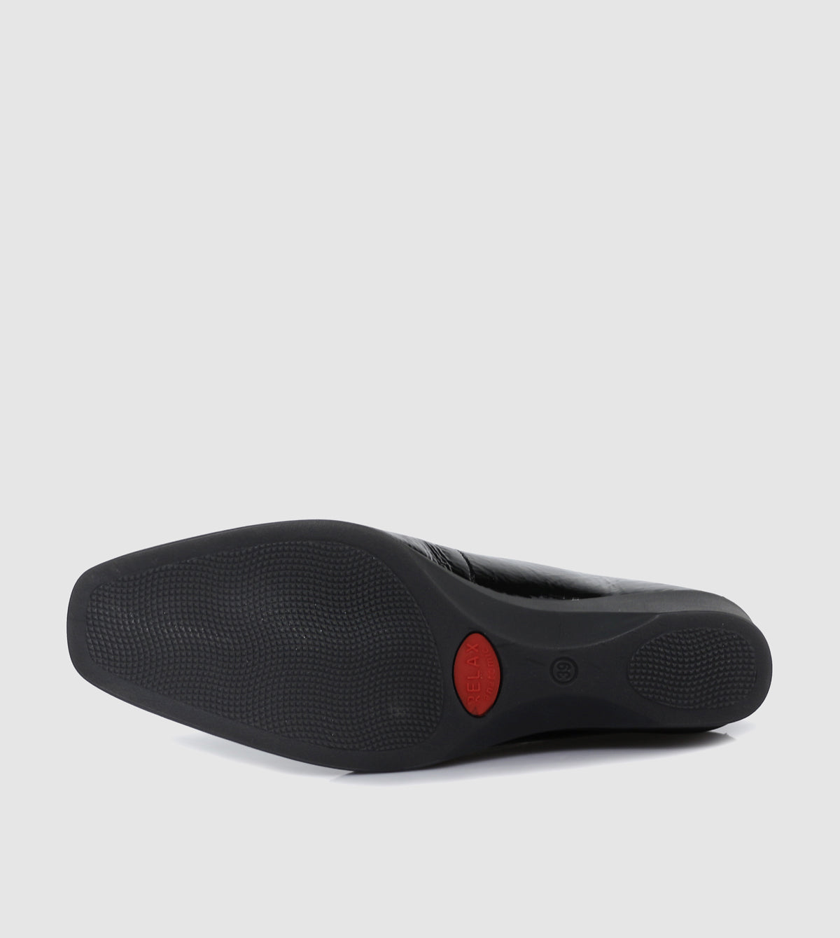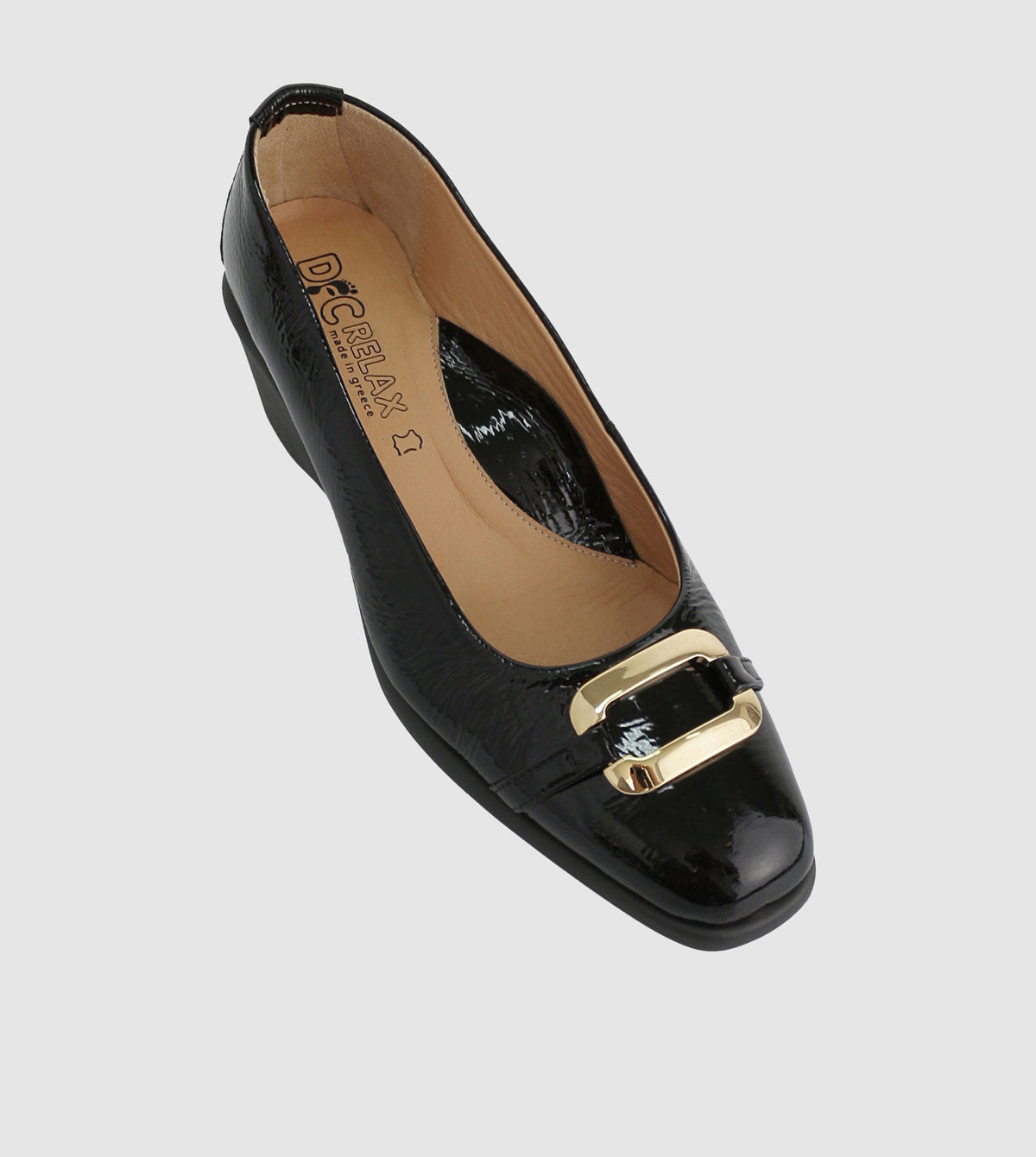 The Seraphina Courtshoes by Relax deliver a polished look with everyday practicality. Featuring a sleek patent finish and chic chain detail, these wedge court shoes offer stylish elevation and exceptional comfort.