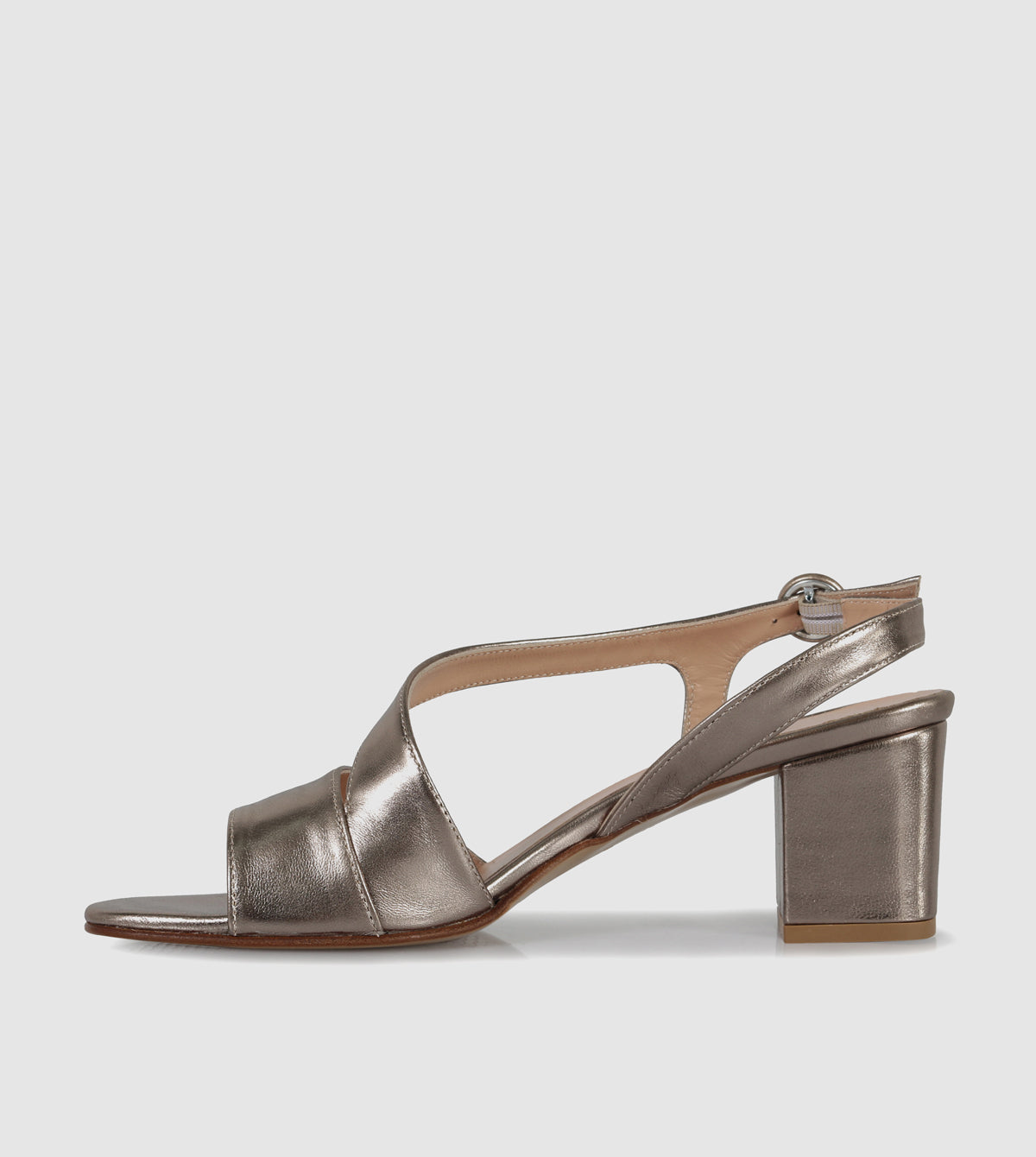 The Sabina Block Heels by Piazza Grande embody refined Italian craftsmanship in a timeless silhouette. Crafted in metallic leather, the sandal features softly contoured crossover straps that frame the foot with ease, balanced by a supportive slingback strap and rounded buckle detail. Set on a mid block heel, Sabina delivers comfort and stability with a touch of understated shine — an elegant option for both everyday wear and special occasions.