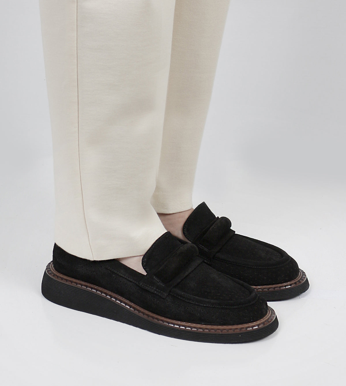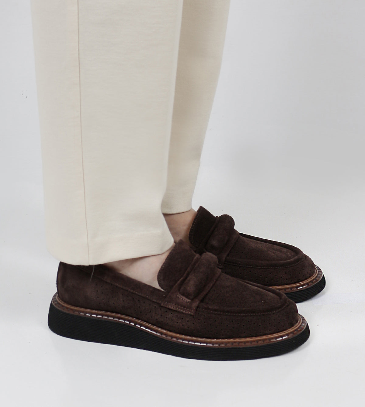 The Quimby Casual Loafers by Sempre Di blend comfort and effortless style in a timeless silhouette. Crafted from premium suede, these loafers feature a soft, textured finish with a classic penny strap detail. A cushioned footbed and lightweight sole ensure all-day comfort, while the contrast stitching adds a refined touch. Perfect for casual outings or smart-casual styling, these loafers offer versatility and elegance.