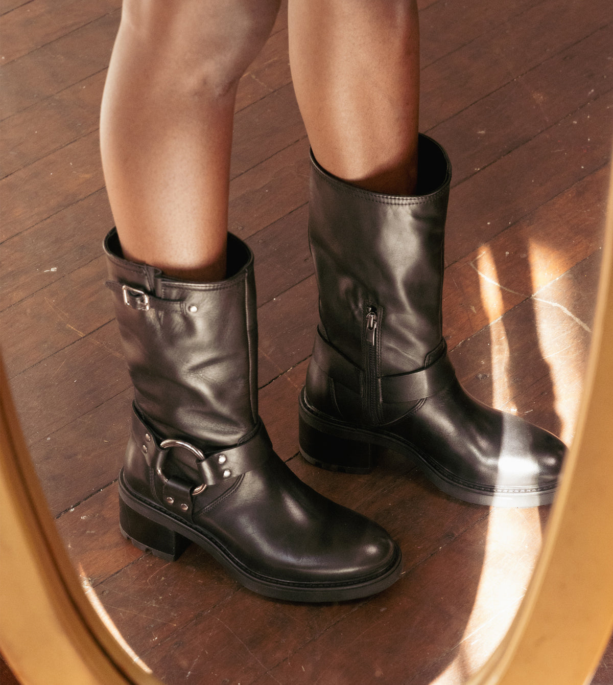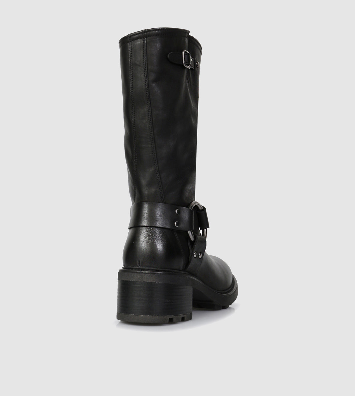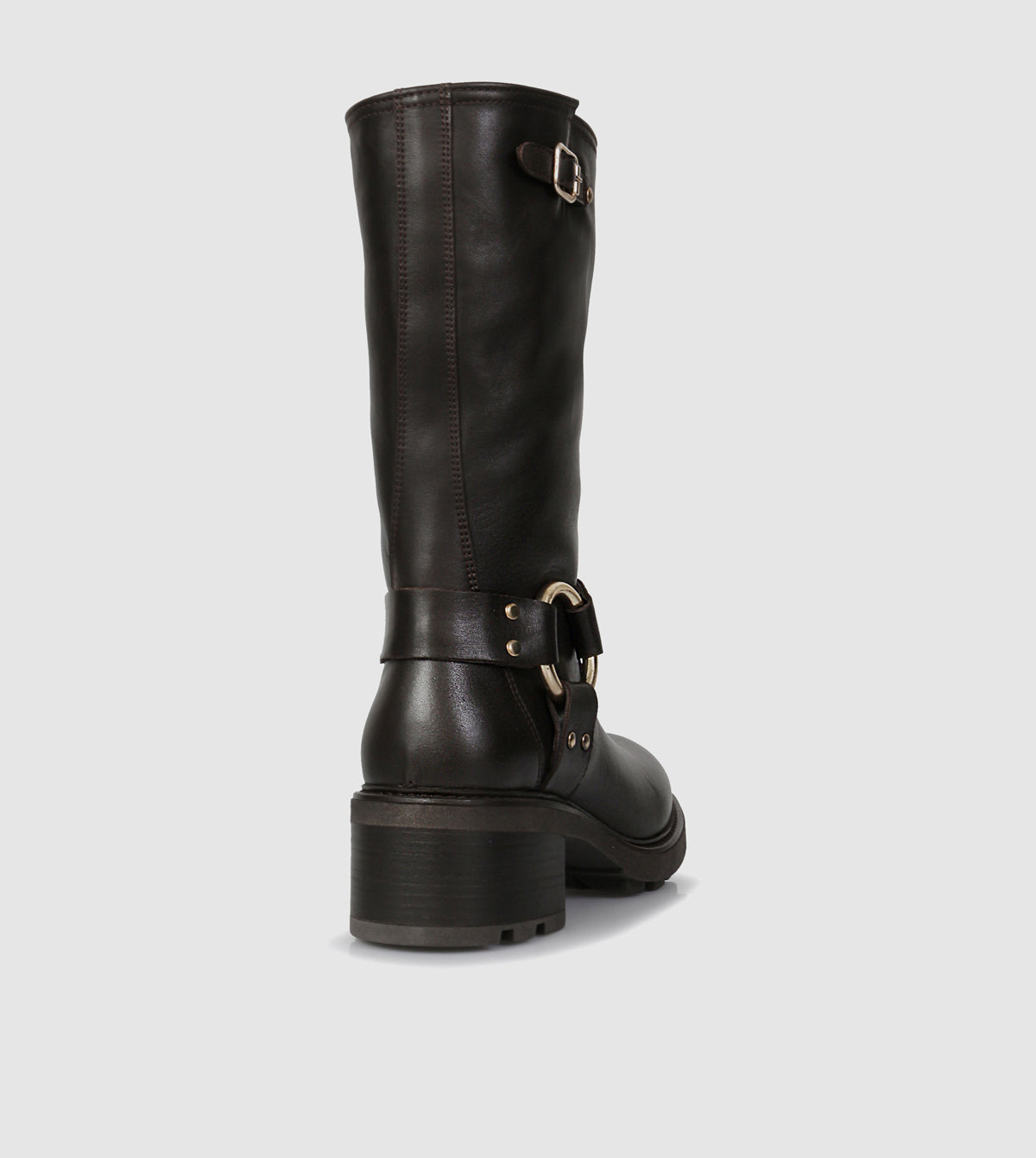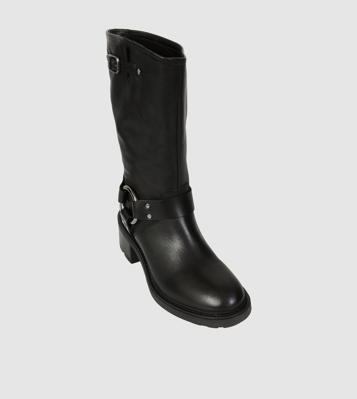 Expertly crafted with polished leather, the Rylee Mid Calf Boots by Sempre di feature a bold rounded toe and a cleated rubber sole for added traction. The sturdy block heel provides comfort and style, while the internal zip allows for easy on and off. The iconic metal ring and strap ankle feature complete these versatile biker boots.