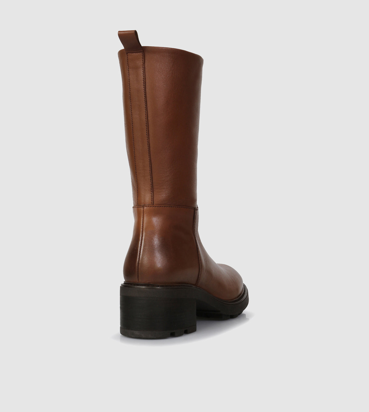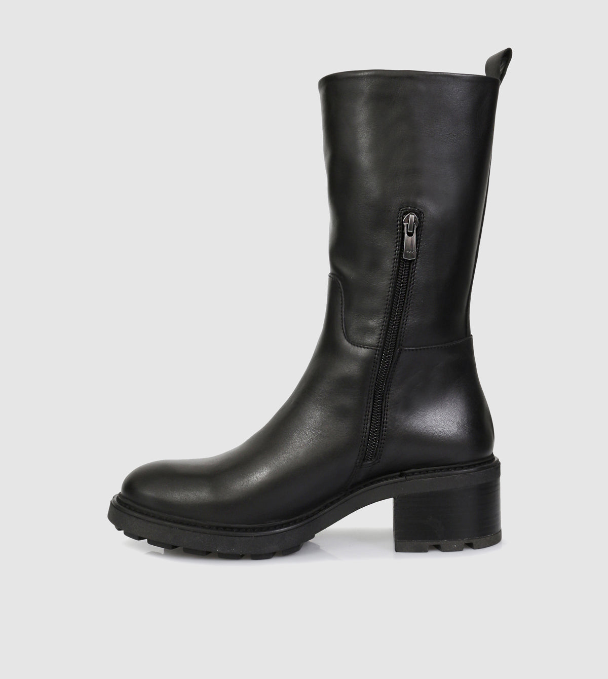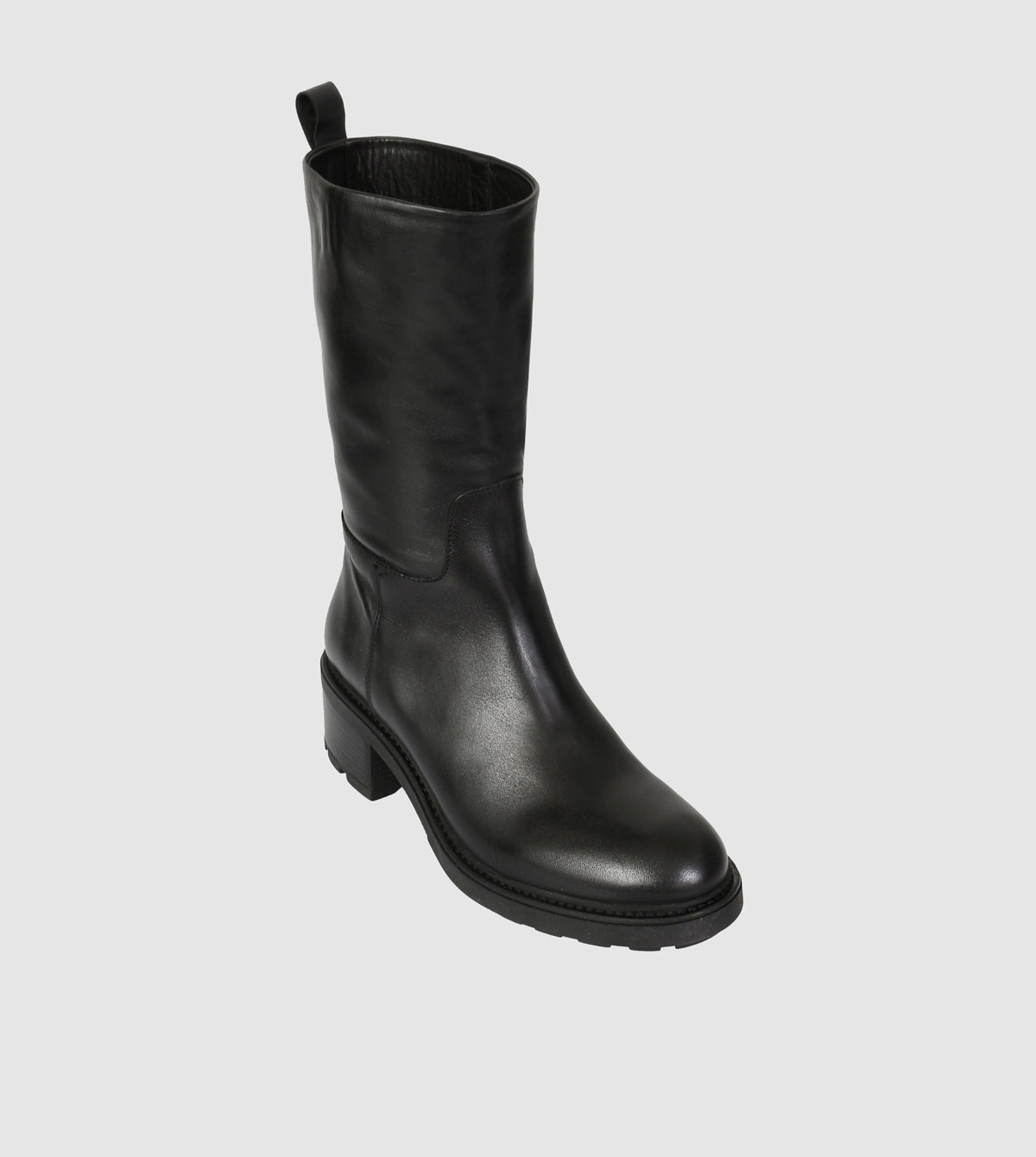 Expertly crafted with polished leather, the Yula Mid Calf Boots by Sempre di feature a bold rounded toe and a cleated rubber sole for added traction. The sturdy block heel provides comfort and style, while the internal zip allows for easy on and off. Elevate any outfit with these versatile biker boots.